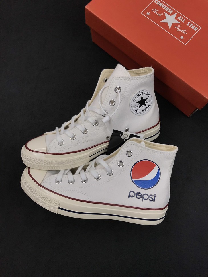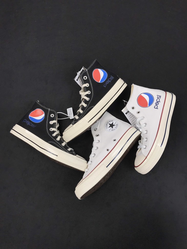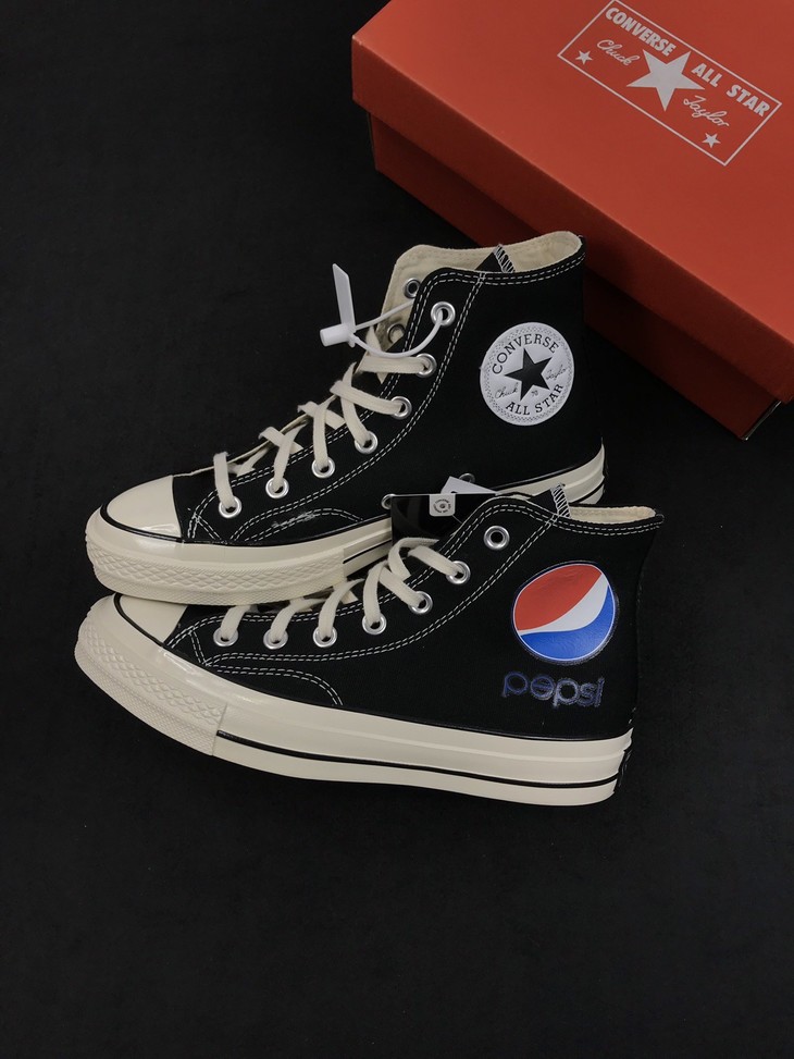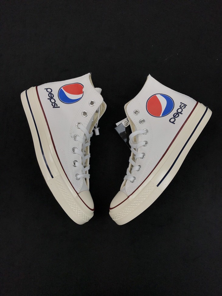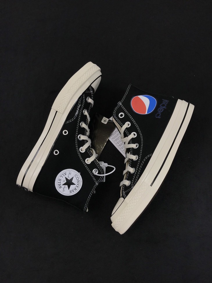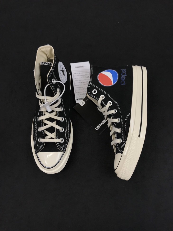 匡威百事可乐 Converse x Pepsi重磅联名 Chuck Taylor 1970S标志字母印花帆布鞋男女情侣板鞋,黑色 白色 高帮百搭真标硫化帆布板鞋。