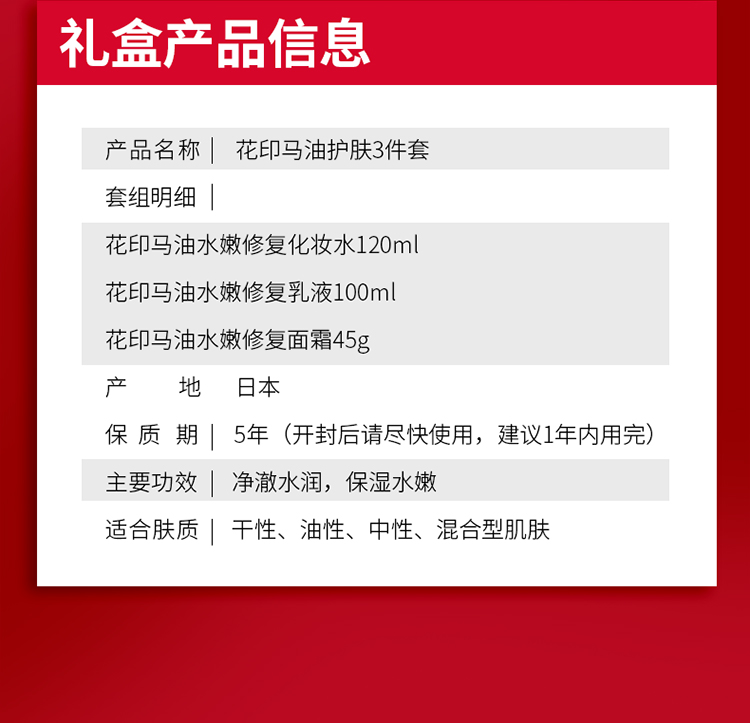 马油护肤礼盒装线下款(化妆水120ml+乳液100ml+面霜45g)效期26年9月左右
