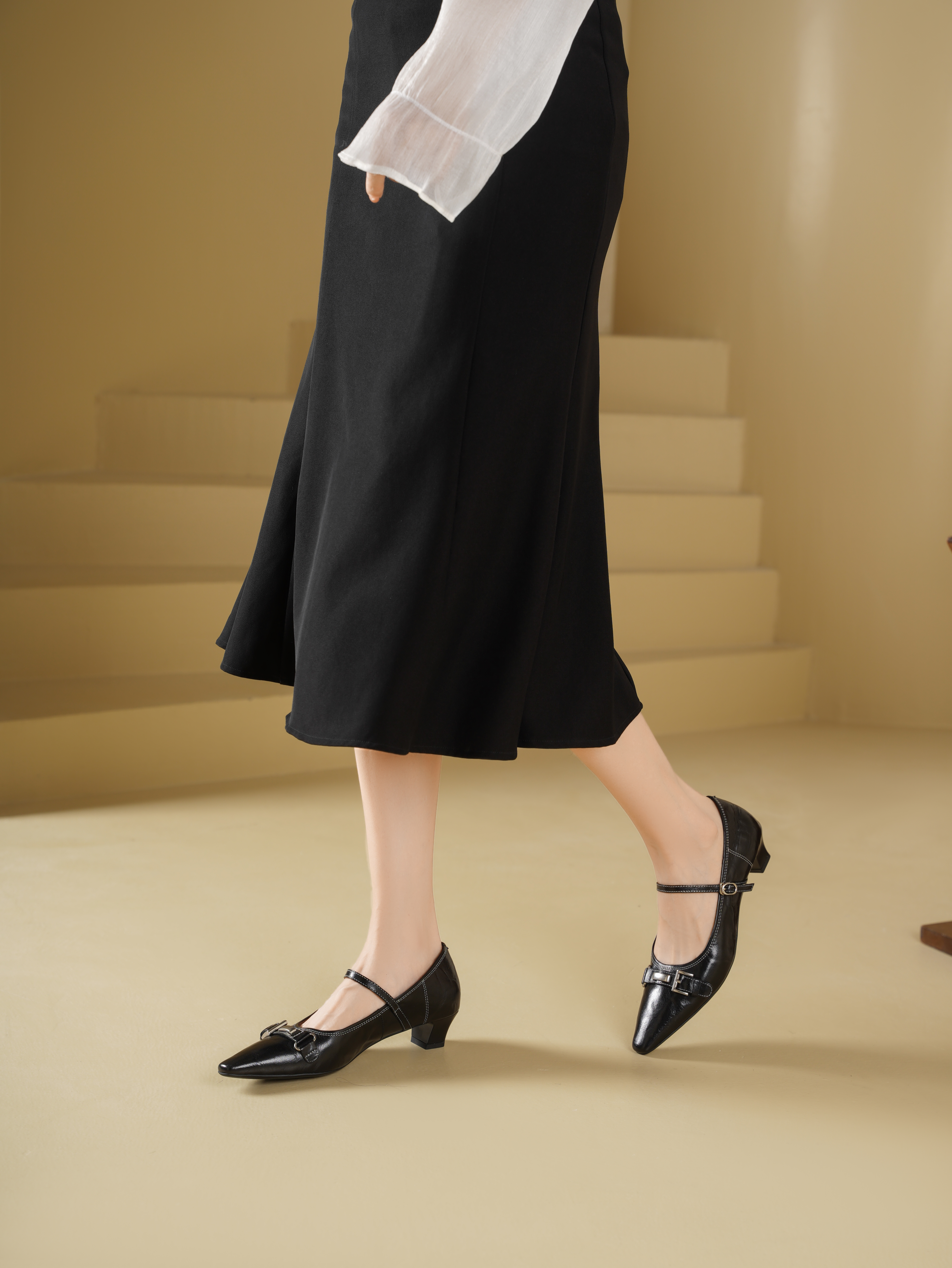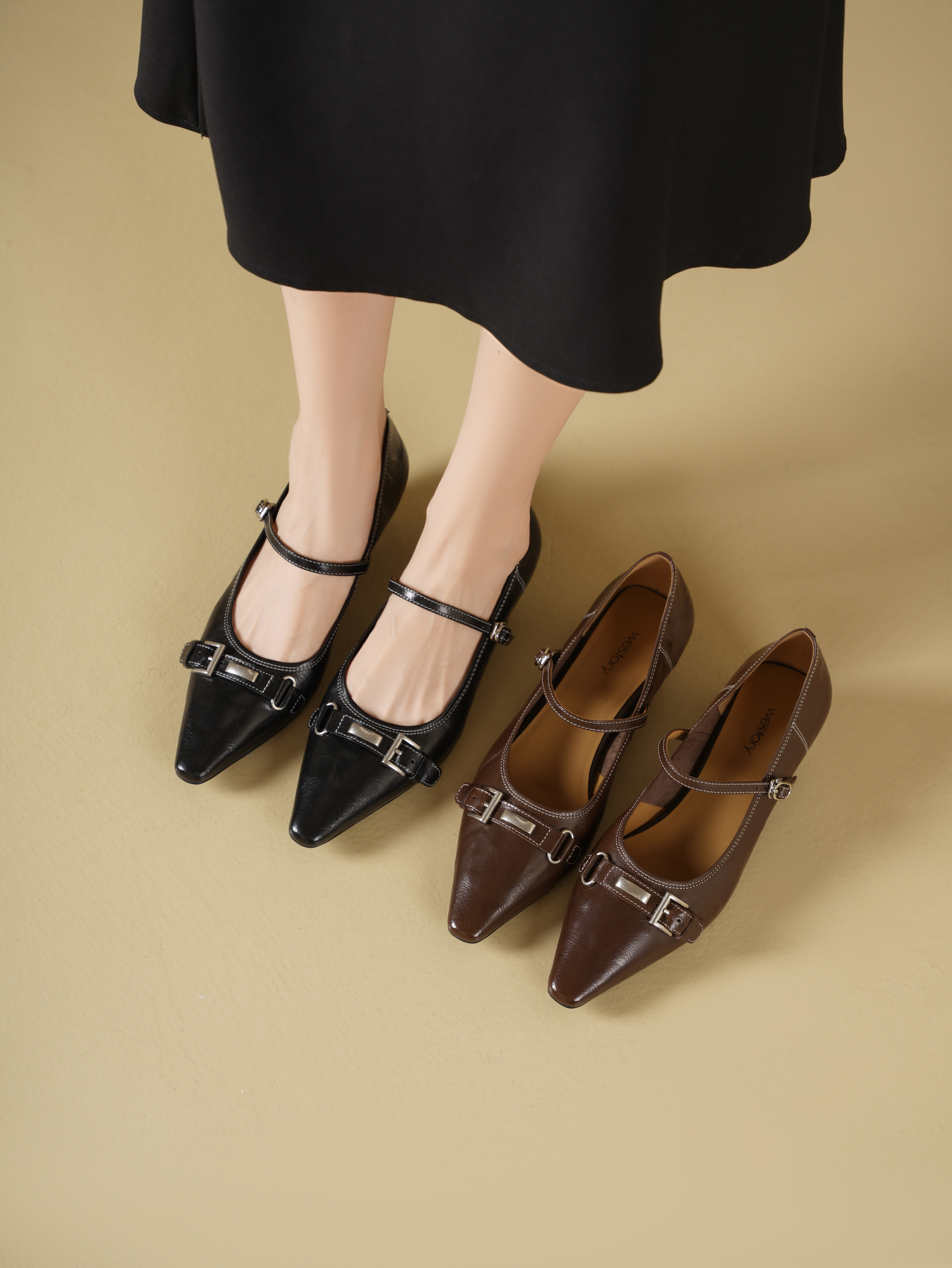 Westory2025年秋季圆头低跟复古老钱风玛丽珍休闲通勤浅口单鞋W25CE75781