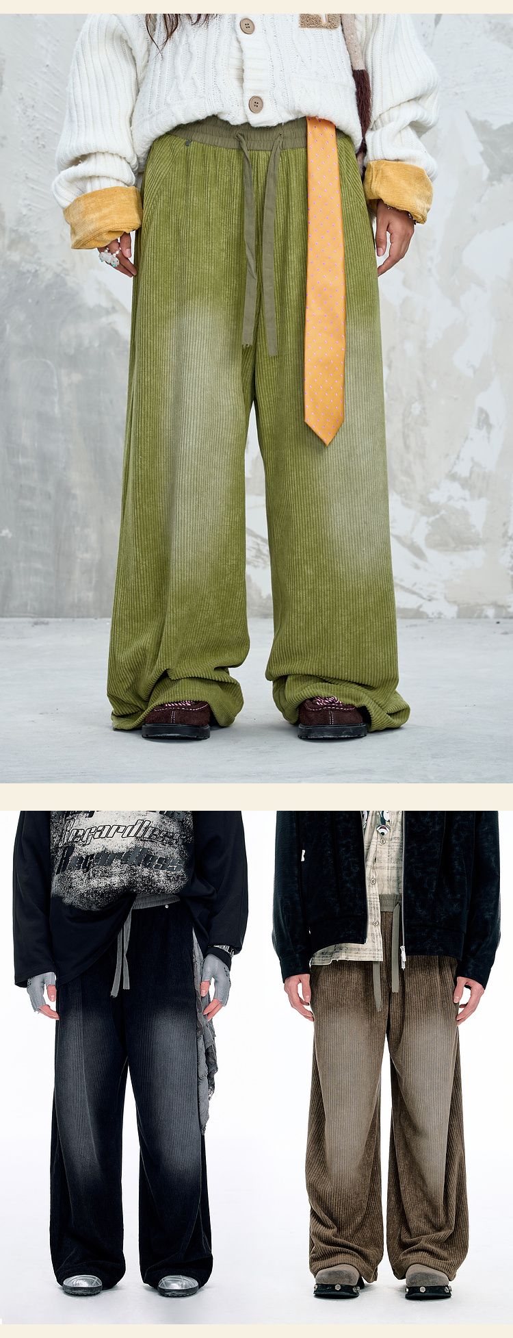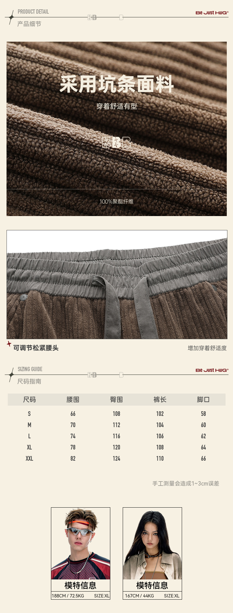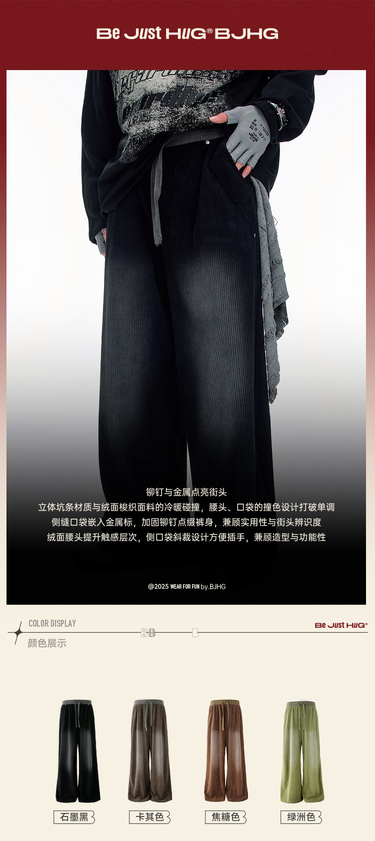 BJHG不计后果灯芯绒休闲裤子男款秋季2025新款潮牌复古直筒长裤女