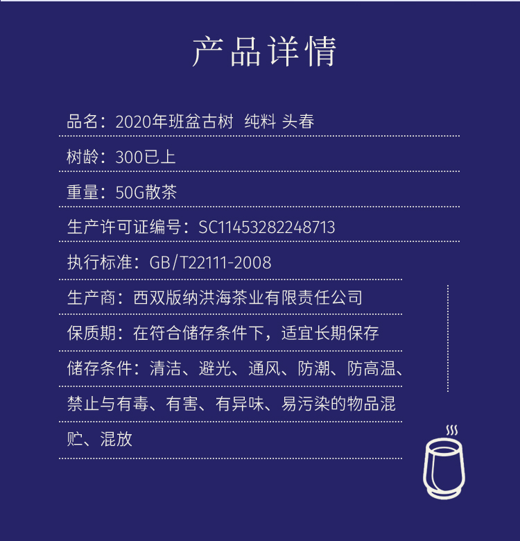 生普 | 洪海古树 2020年班盆 300年已上古树 头春散茶 50g/罐