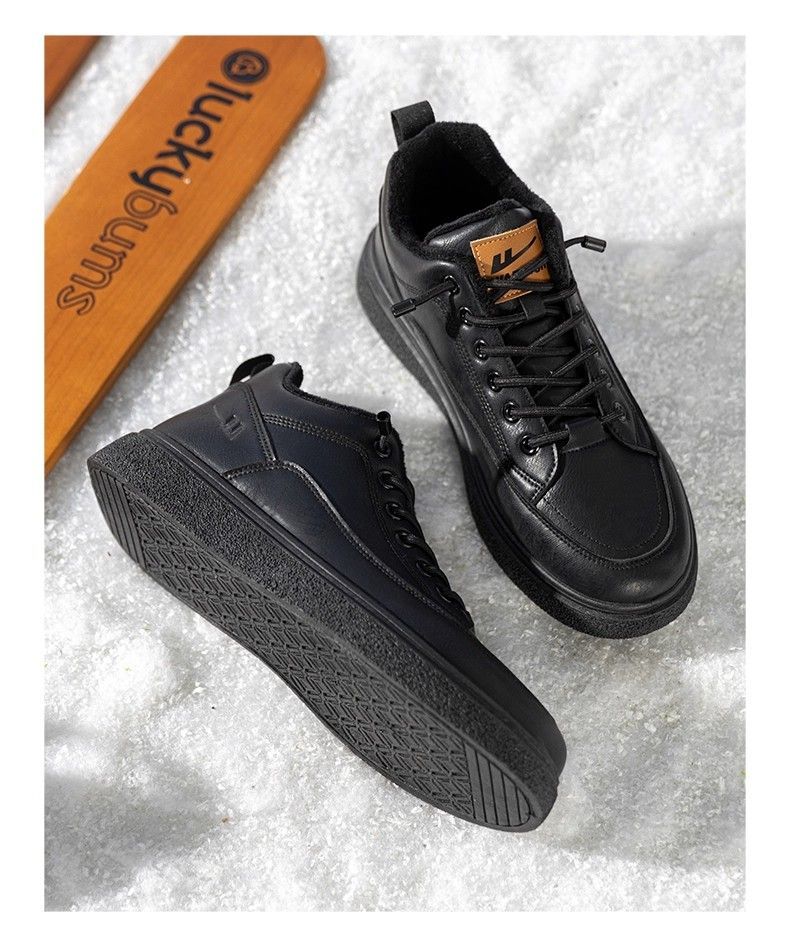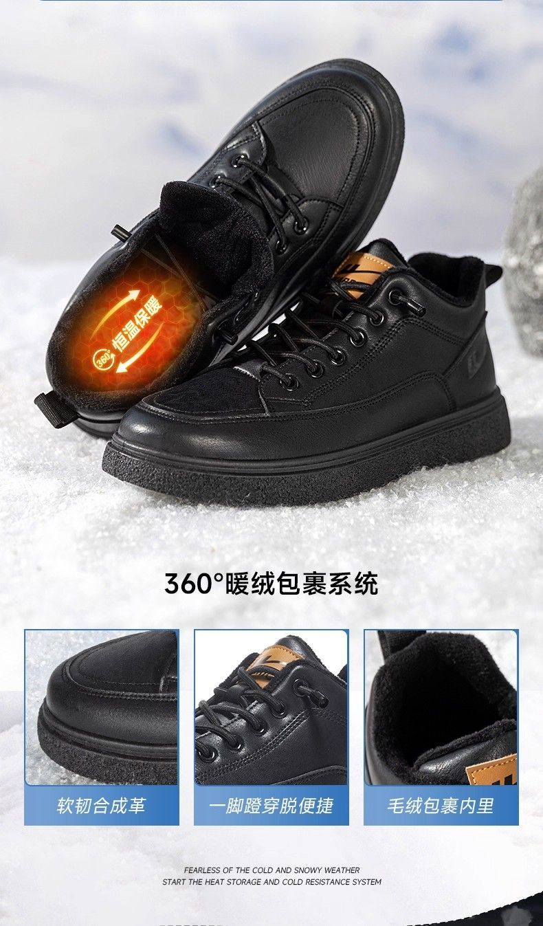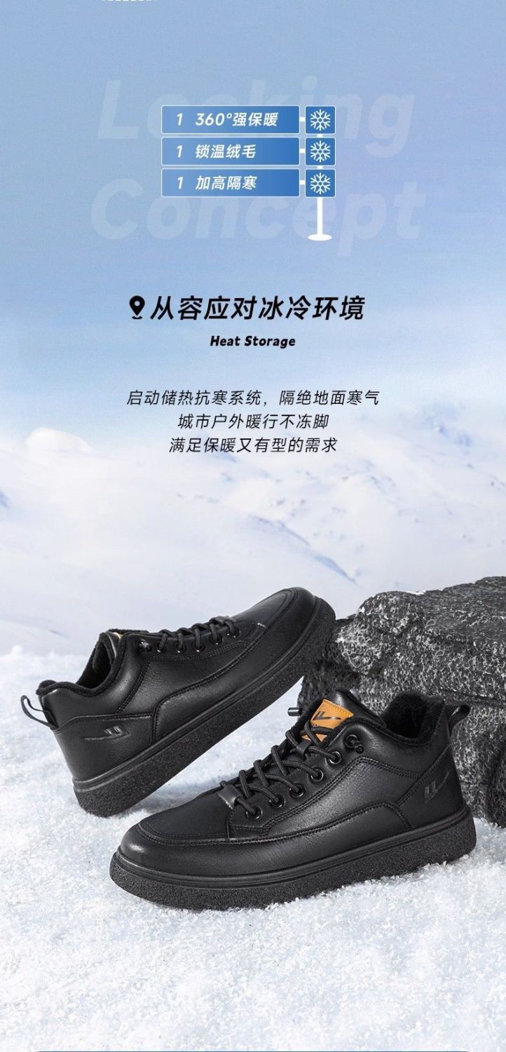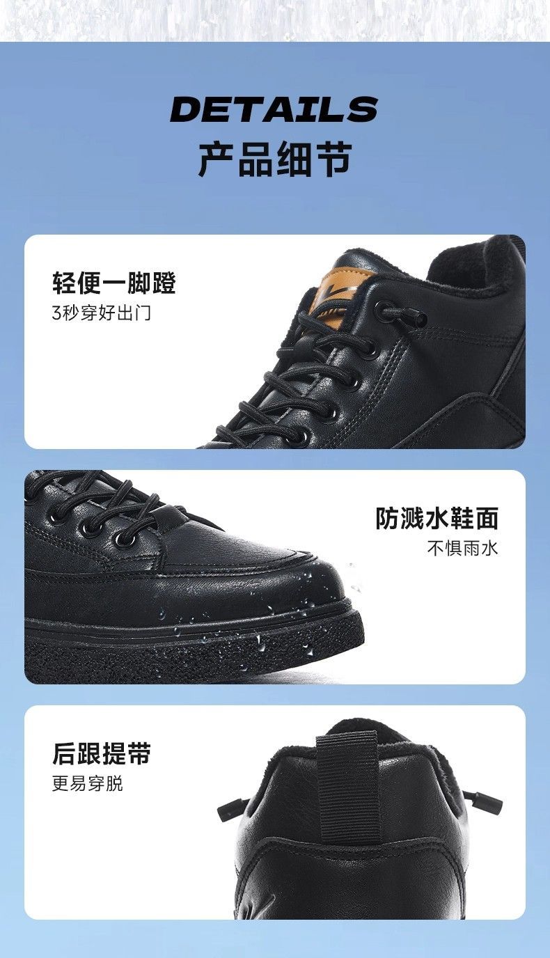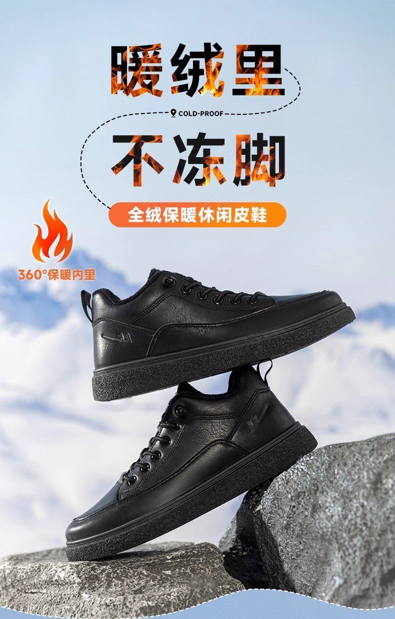 回力男鞋2025新款冬季加绒黑色软底运动板鞋男士通勤商务休闲皮鞋