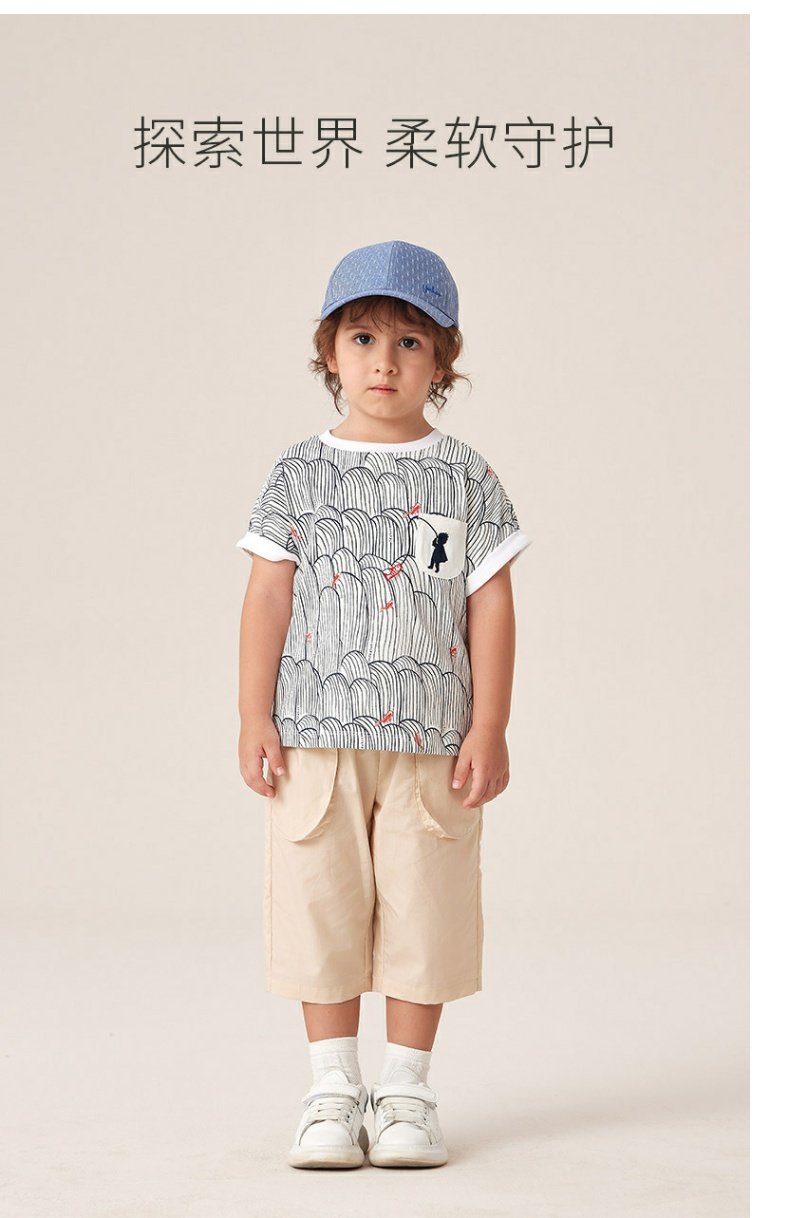 英氏男童七分裤2023新款夏季薄款休闲时尚儿童裤子YRKZJ2P350A