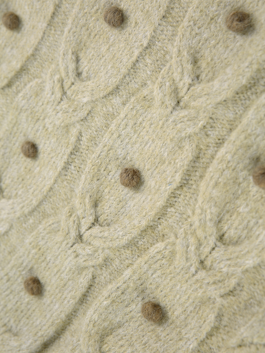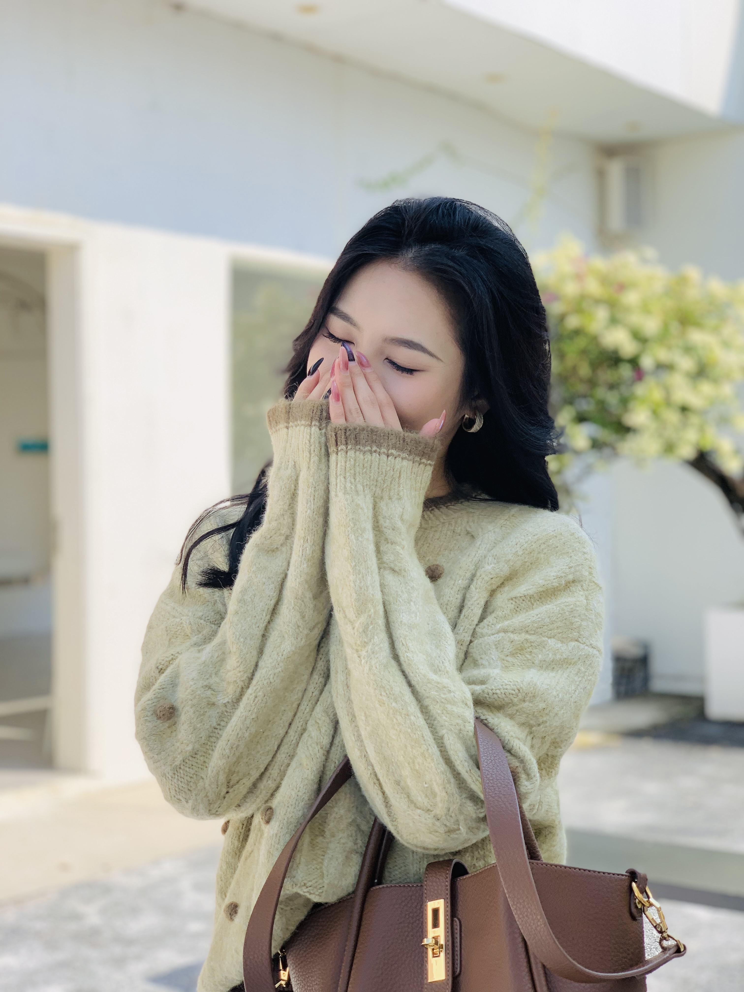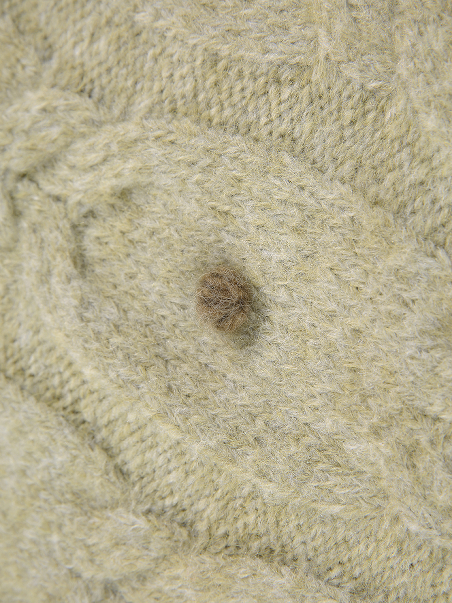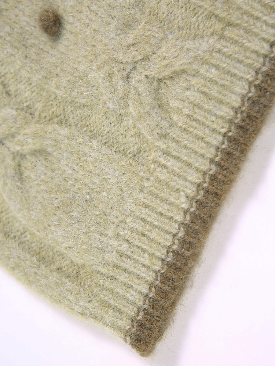 咖色和豆绿色纱线混纺,有着一种浑然天成的清新感,也比普通单色纱线更有复古的味道。