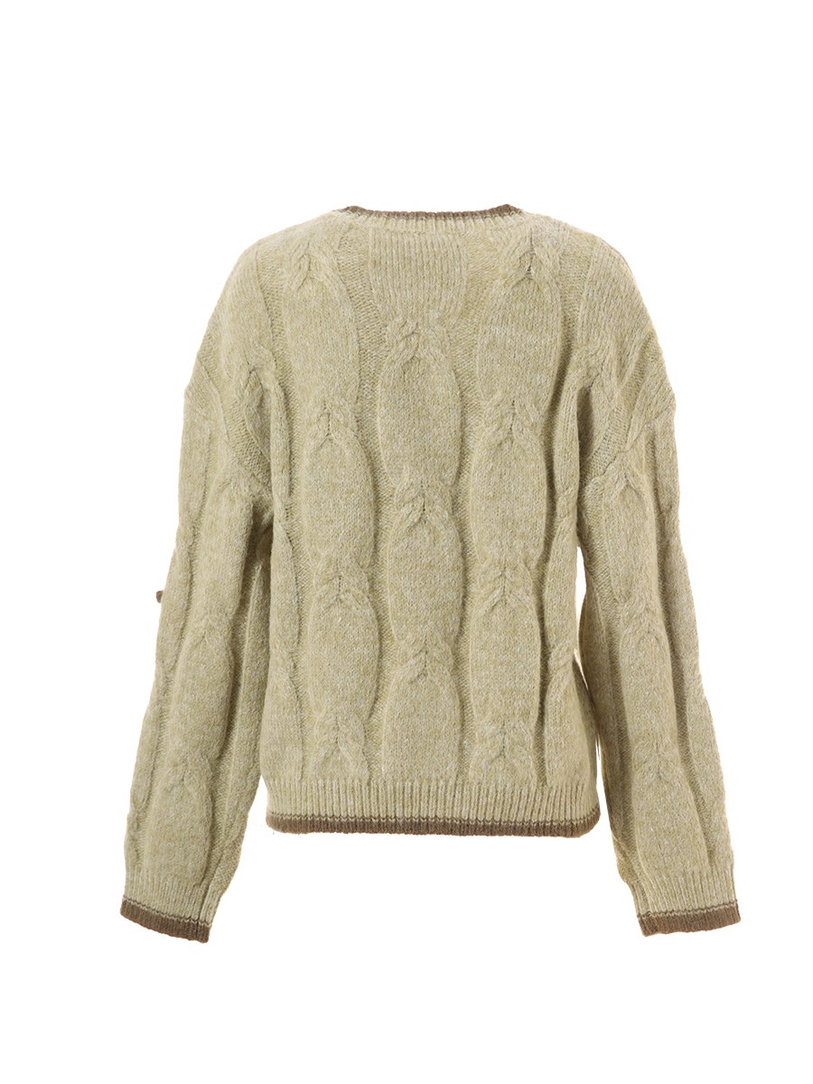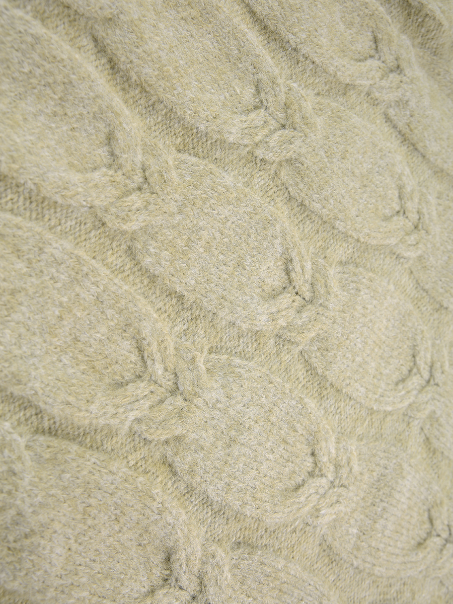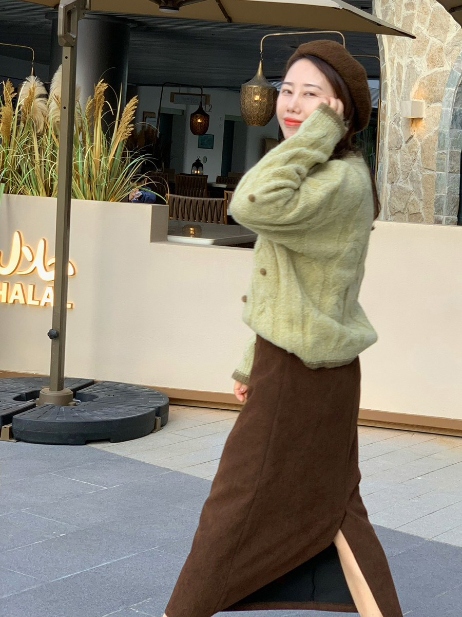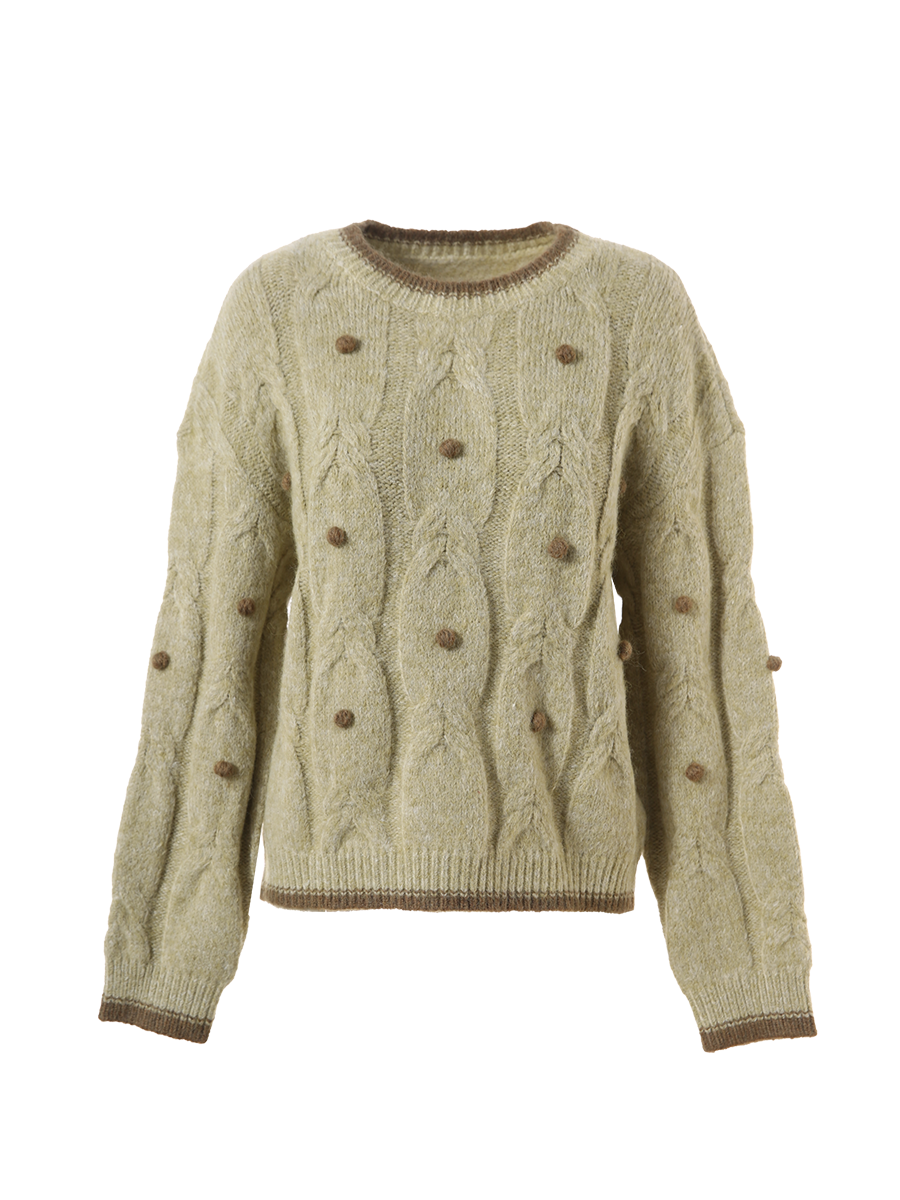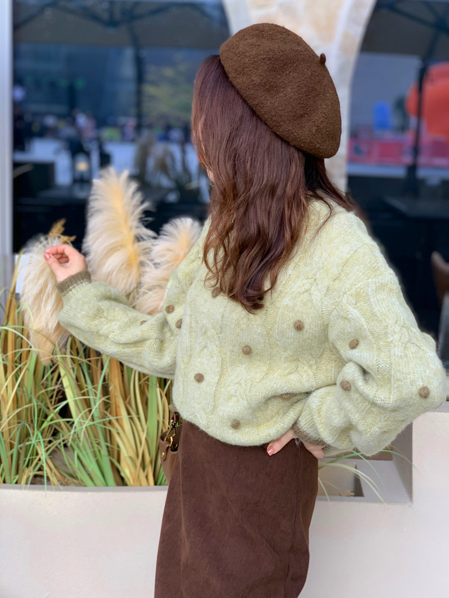 咖色和豆绿色纱线混纺,有着一种浑然天成的清新感,也比普通单色纱线更有复古的味道。