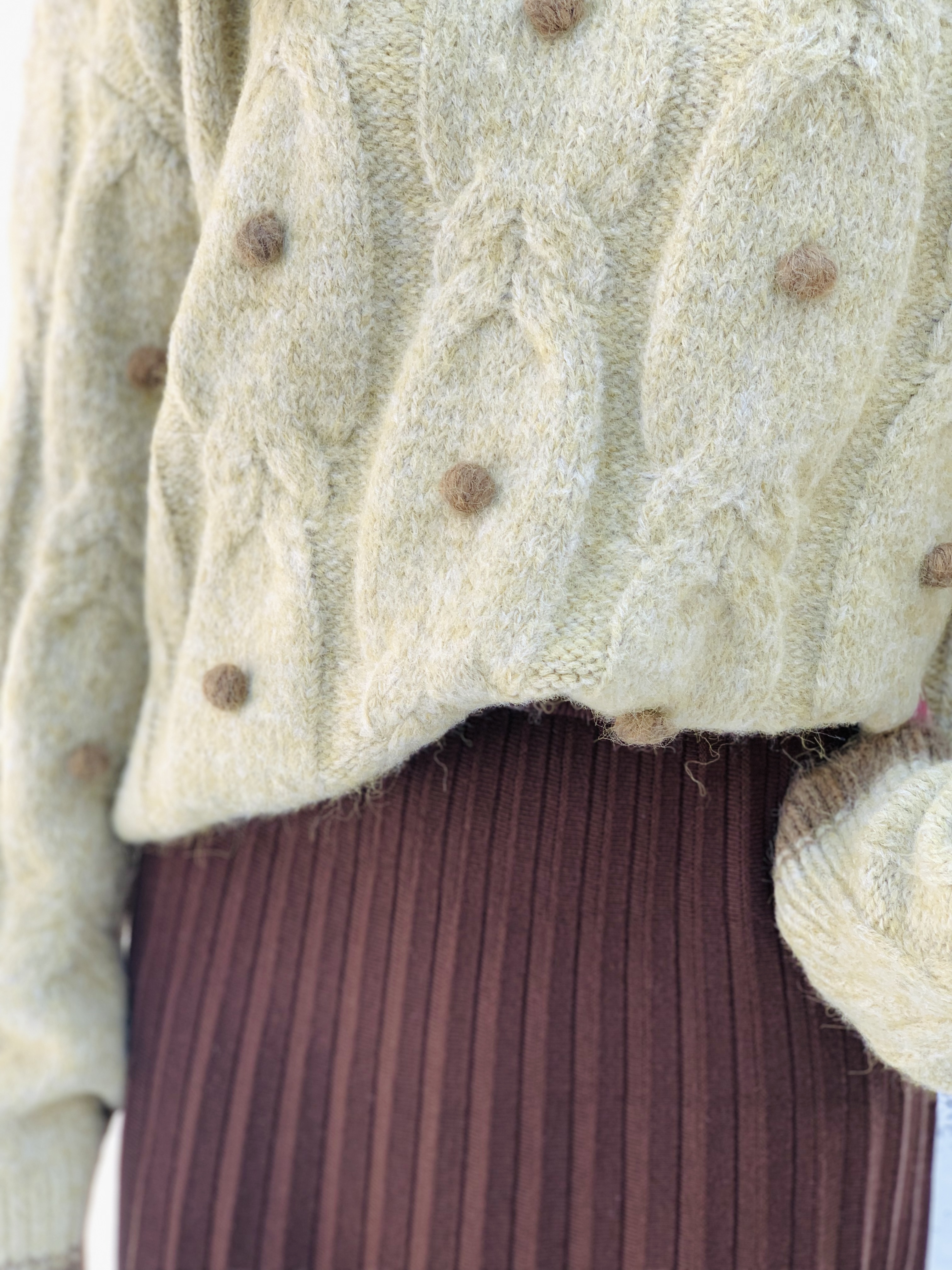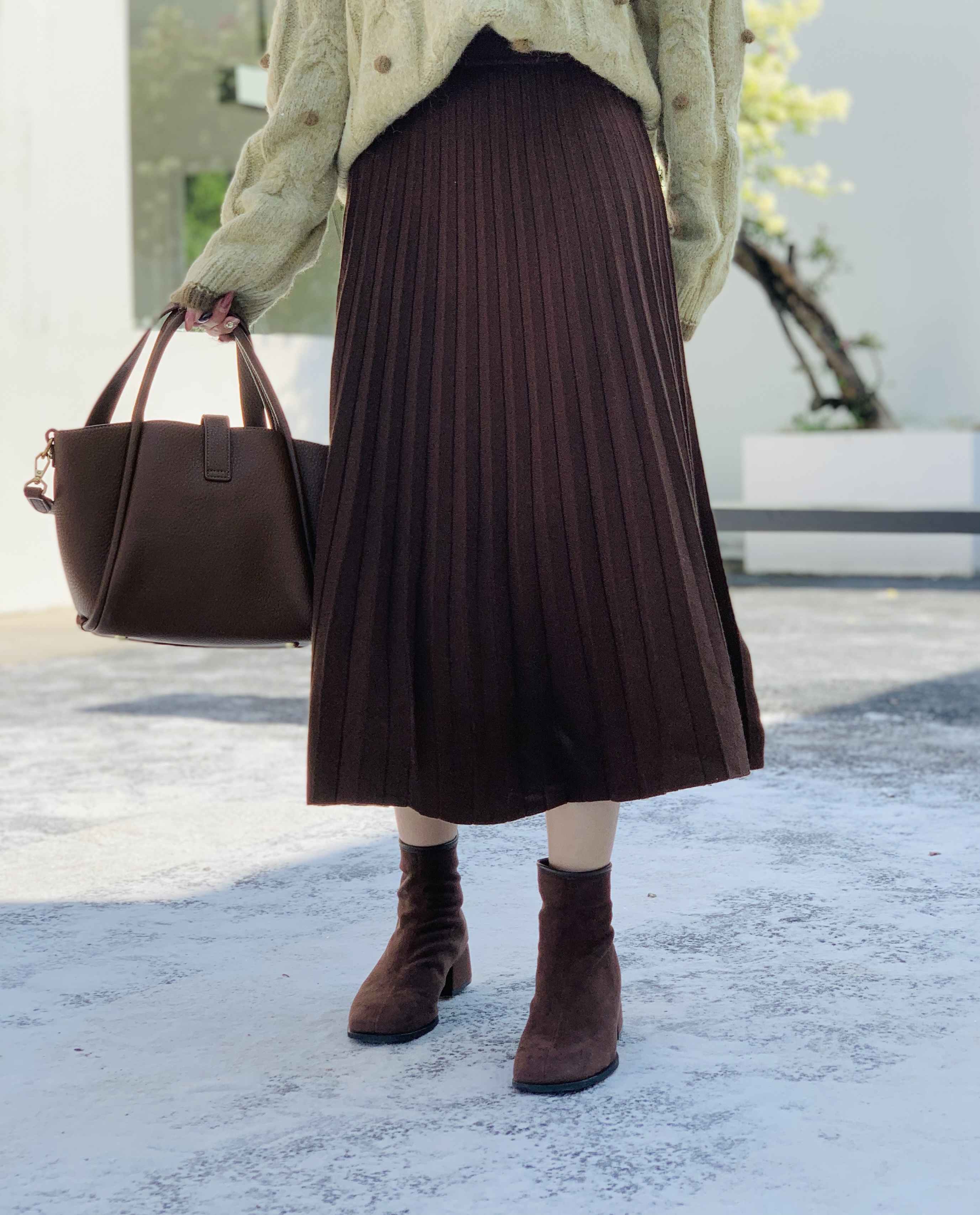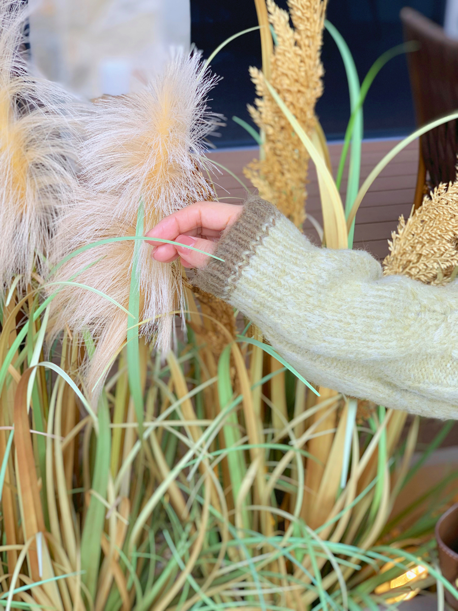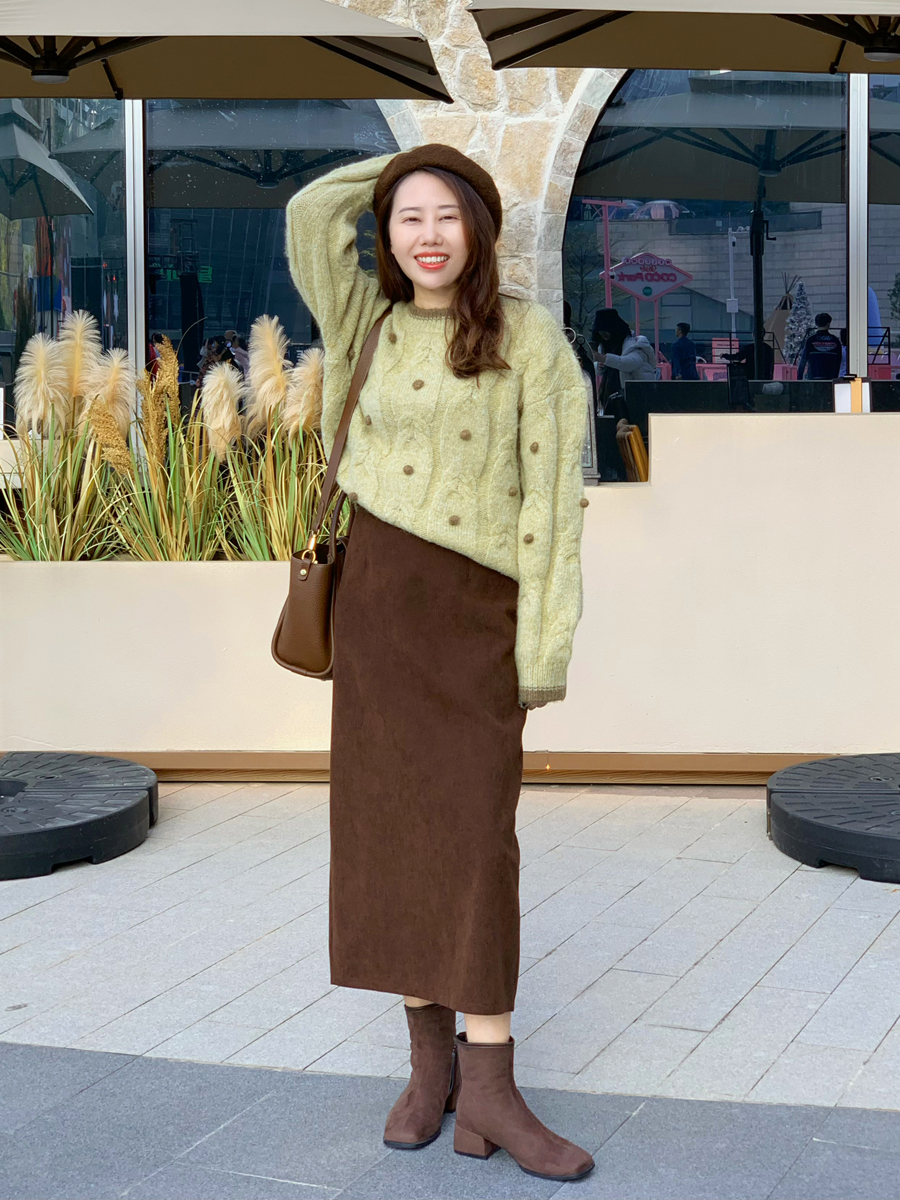 咖色和豆绿色纱线混纺,有着一种浑然天成的清新感,也比普通单色纱线更有复古的味道。