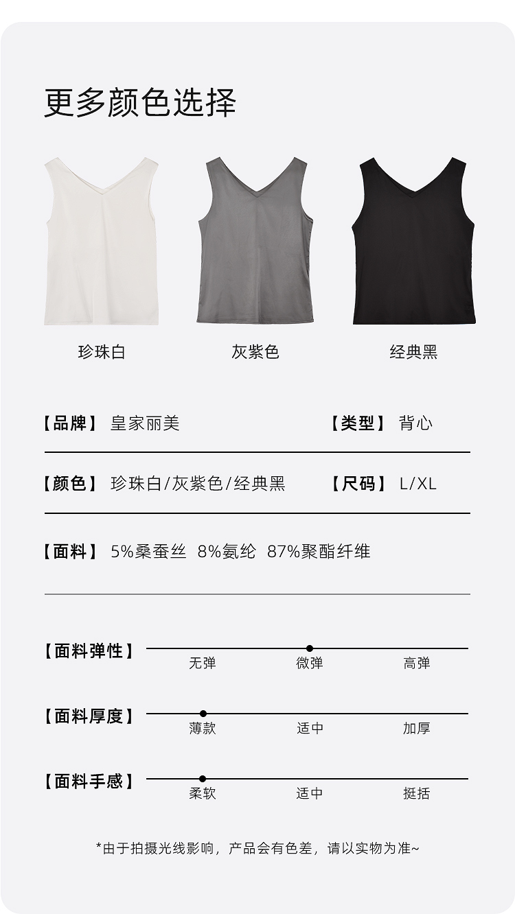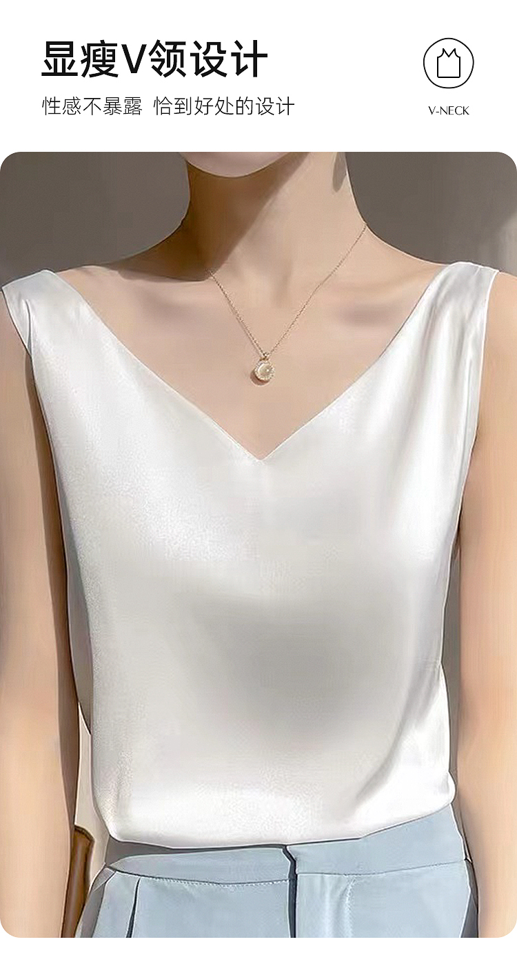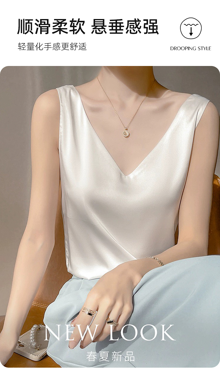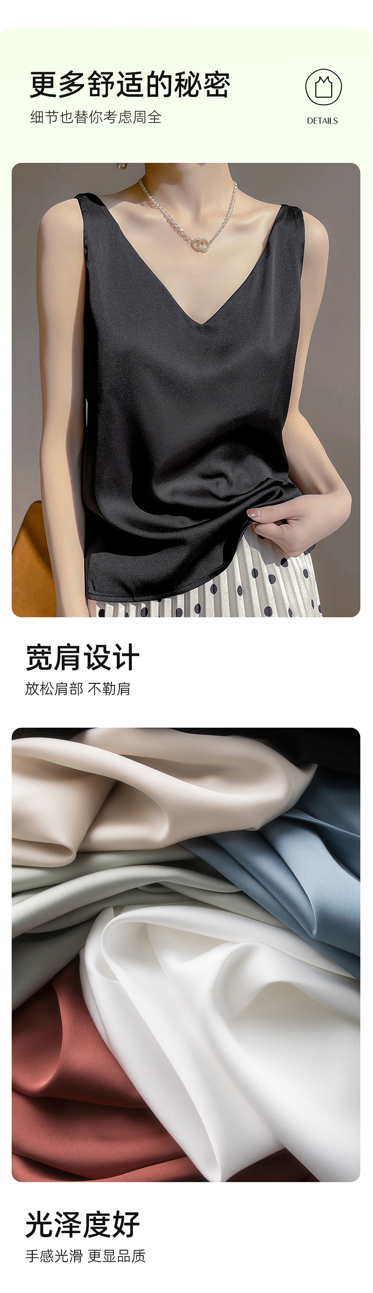 新款轻奢柔垂顺绸面背心女外穿纯色V领桑蚕丝打底内搭绸缎上衣BXD5058