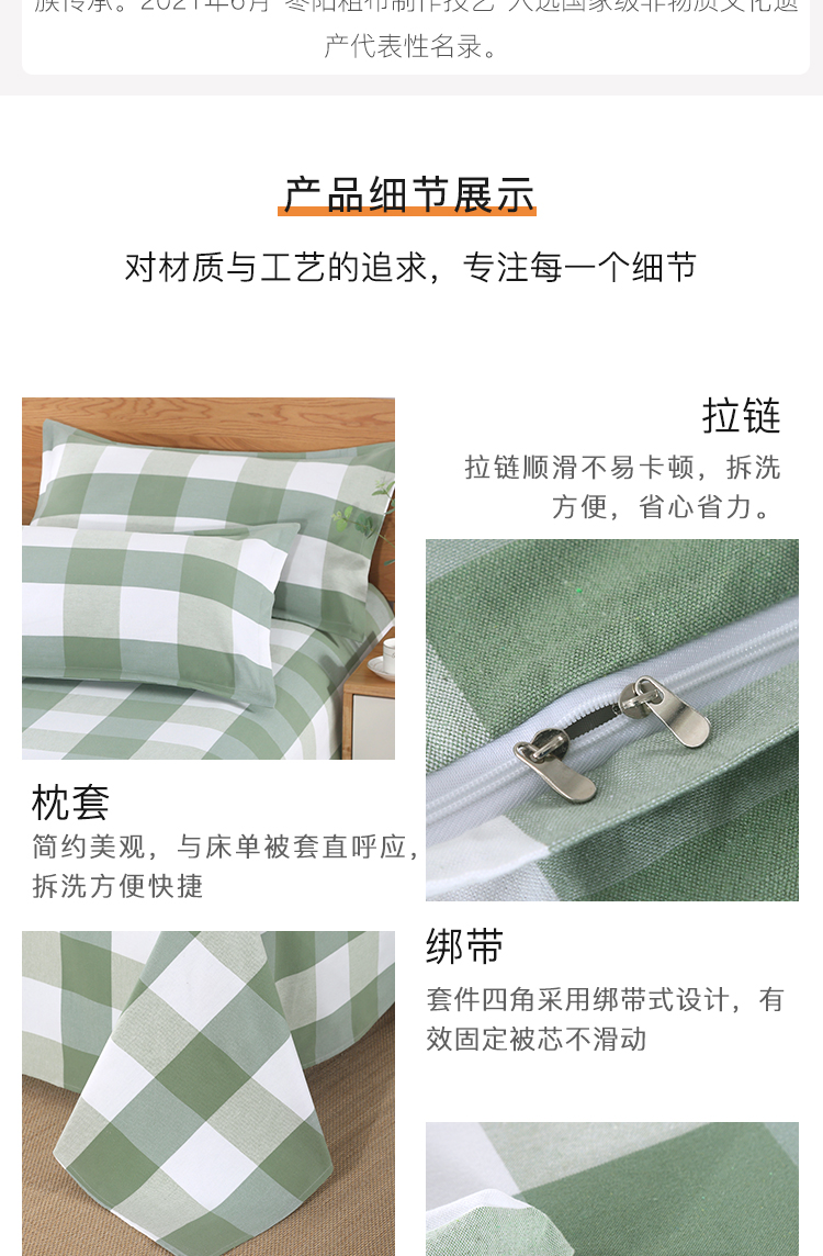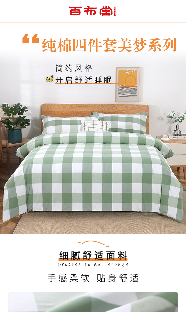 (乡村振兴商品)百布堂纯棉四件套美梦X3-绿格 商品图4