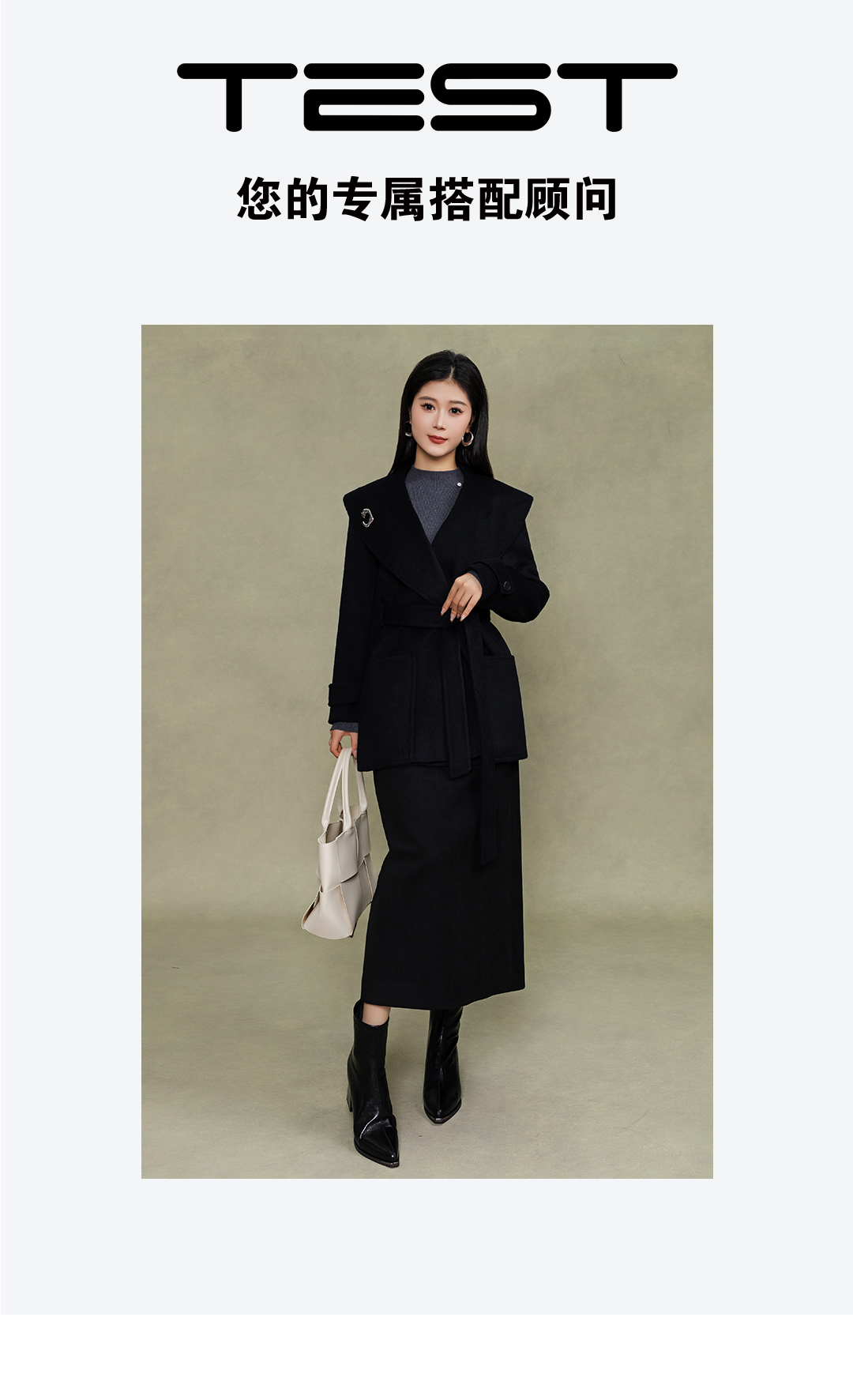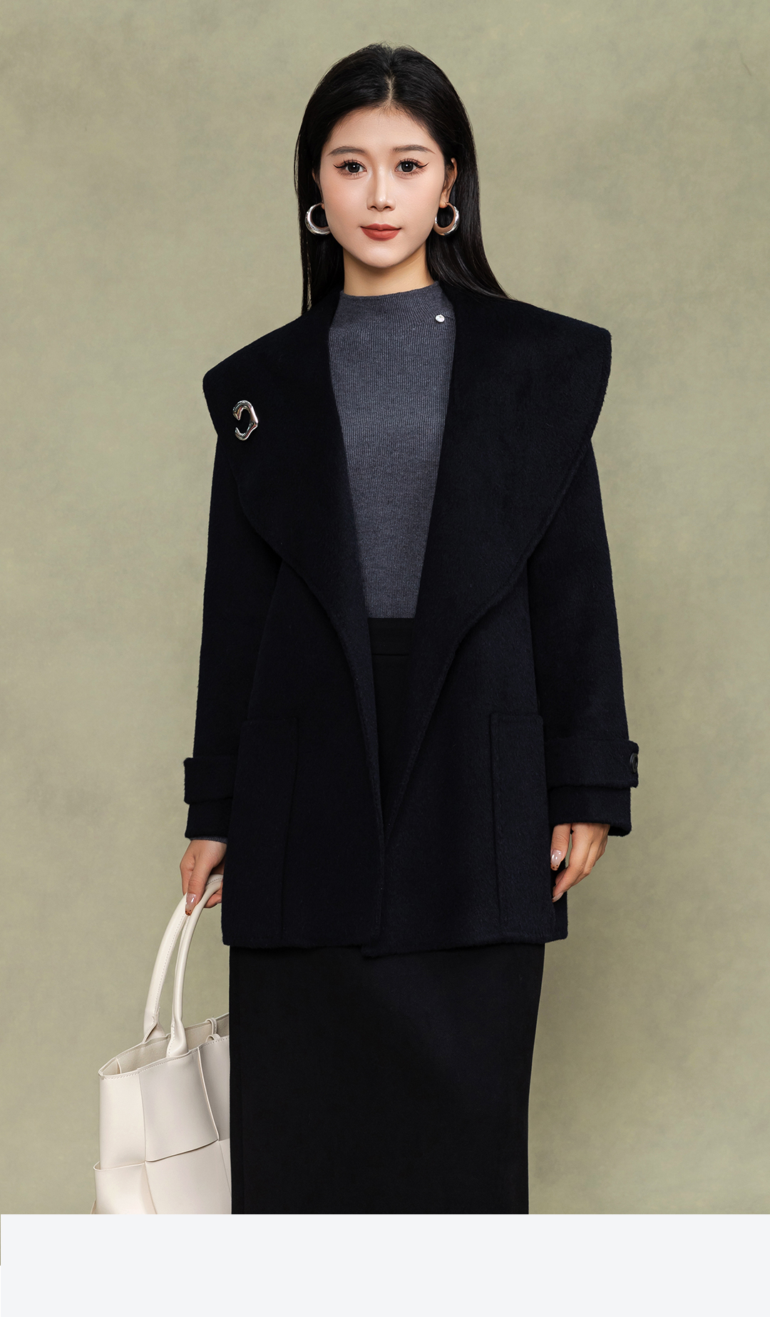 冬上新黑色大翻领显瘦又显高级感双面呢短外套2254063