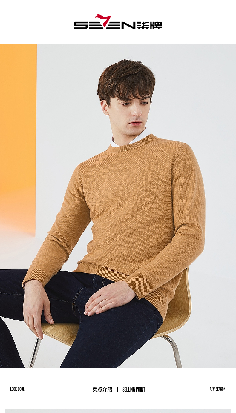 【限时秒杀】含羊毛柒牌毛衫男秋冬季圆领可机洗针织衫123Y70140