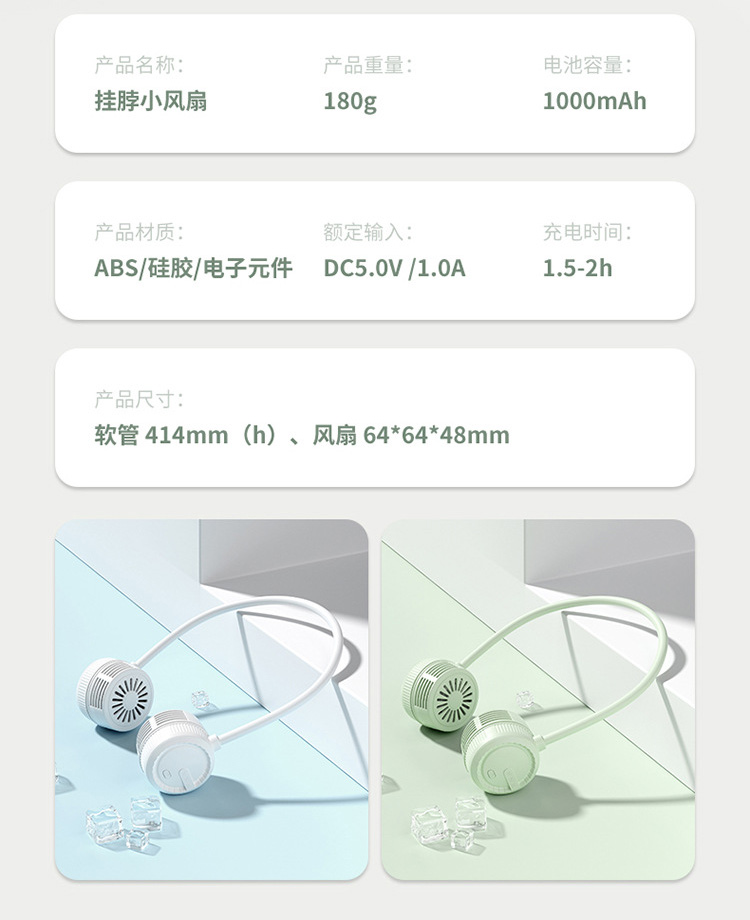 【无叶凉风挂脖风扇】2024新款折叠挂脖风扇懒人静音 便携式数显迷你折叠小风扇
