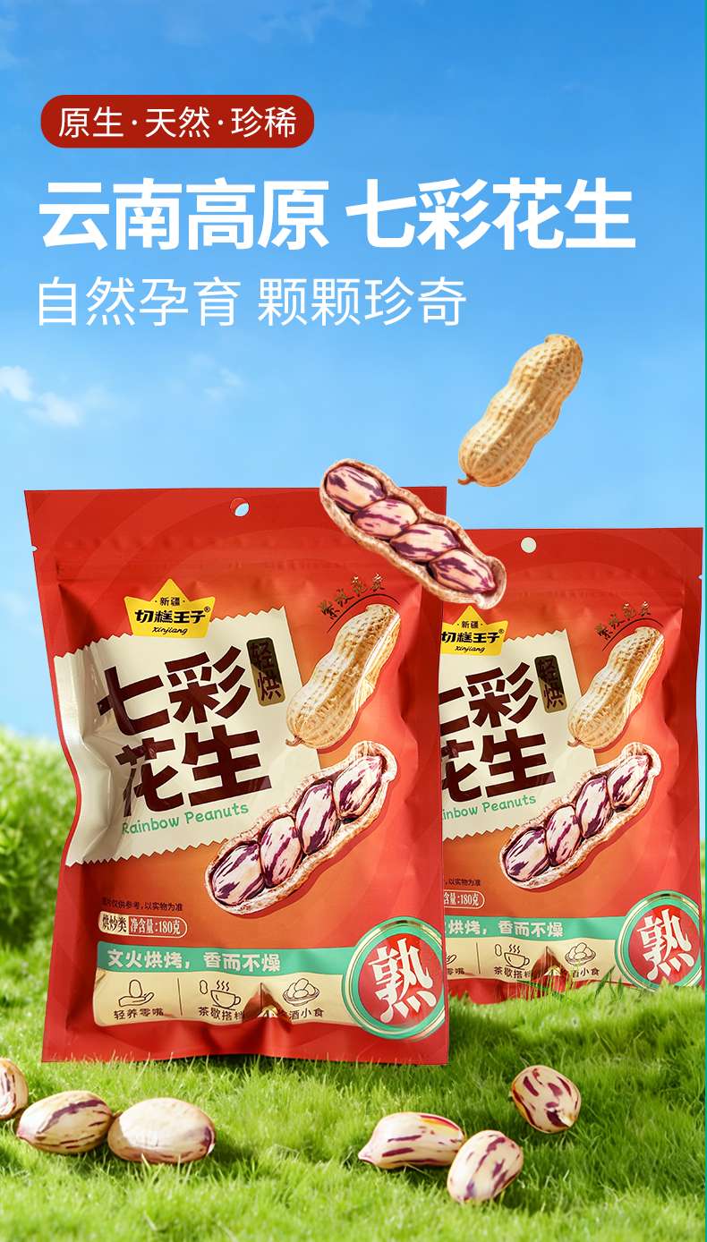 【切糕王子七彩花生】 粒大饱满咸香酥脆 低温烘炒不糊不燥 花青素爆表!比普通花生高好几倍,抗氧化实力派