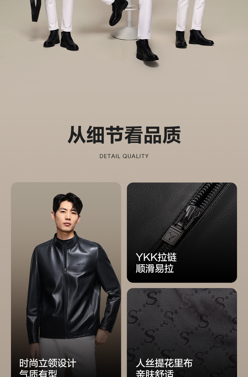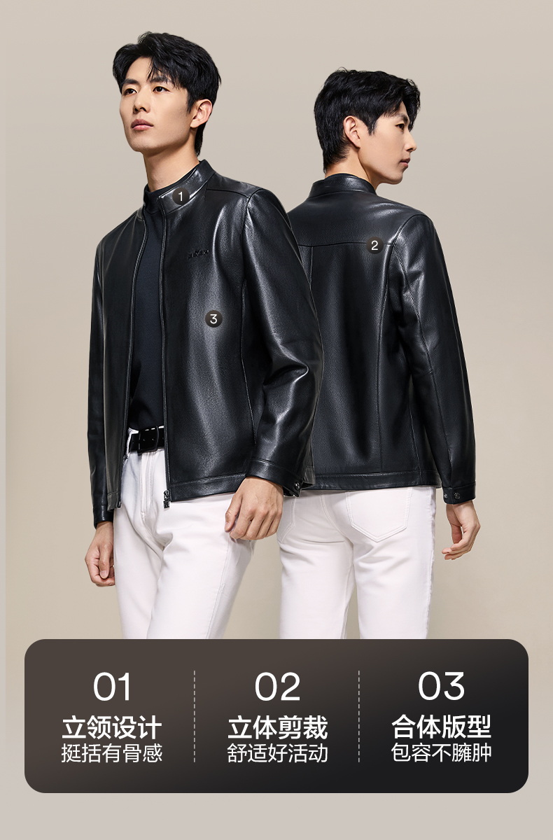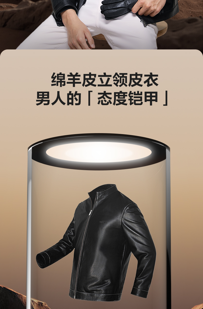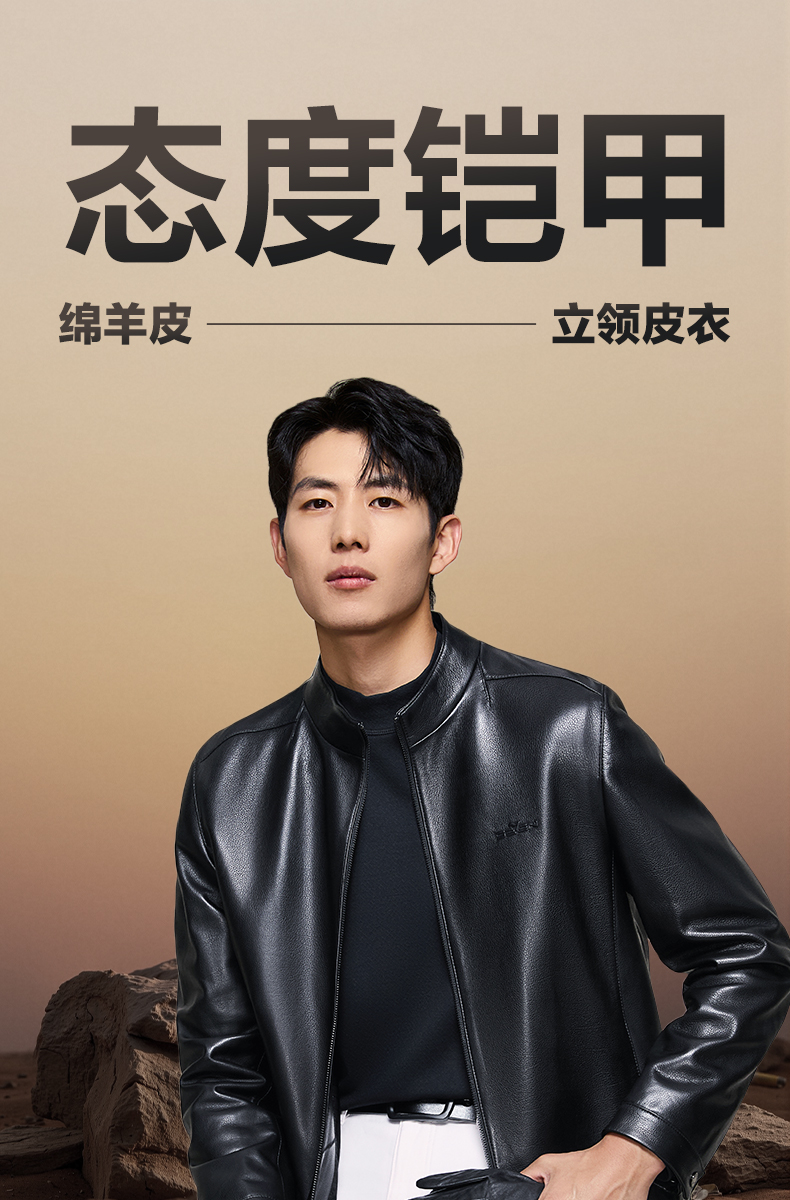 【绵羊皮】柒牌男装真皮皮衣2025新款立领拉链商务朋克防风外套男129J70360