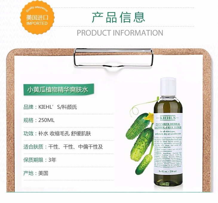 【香港直邮】Kiehl's-科颜氏 黄瓜水爽肤水 250ml