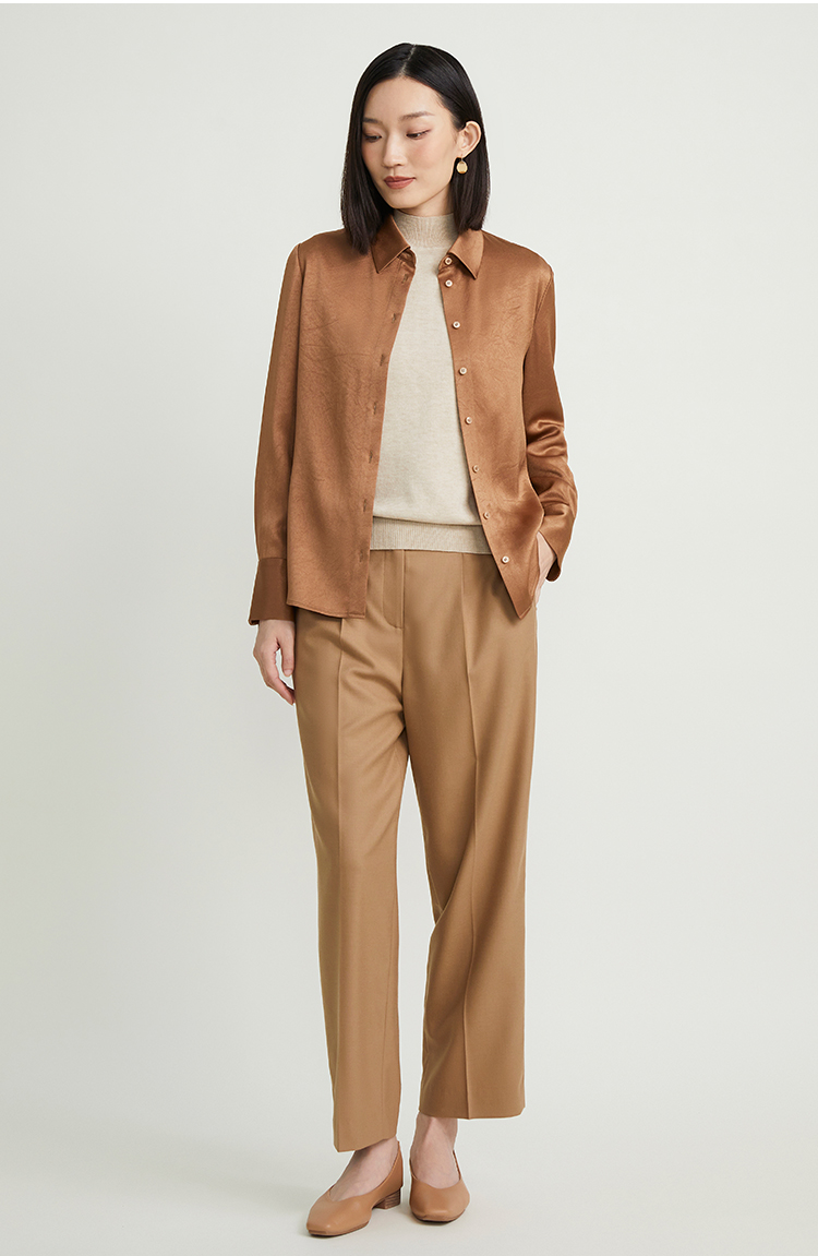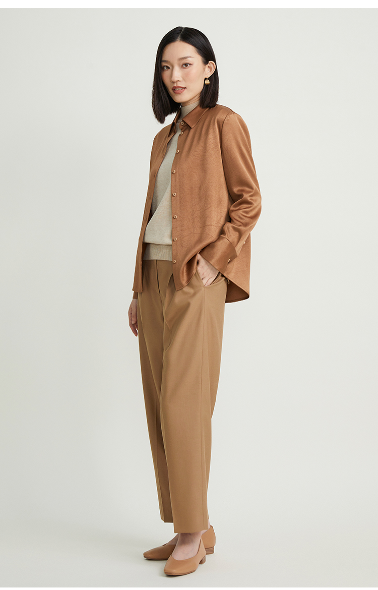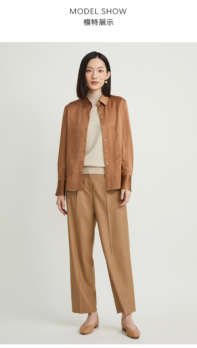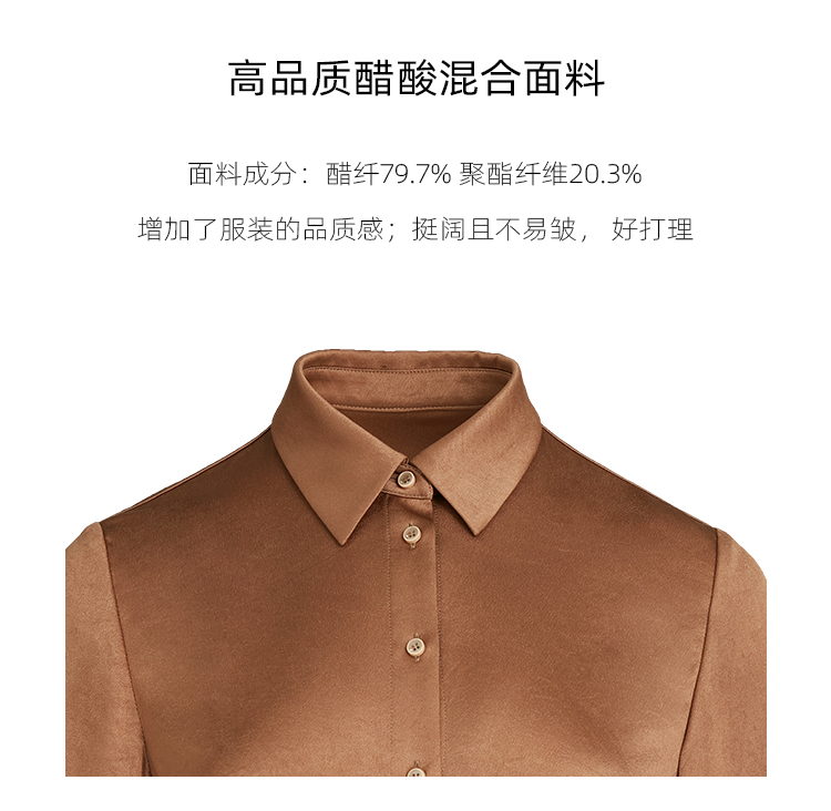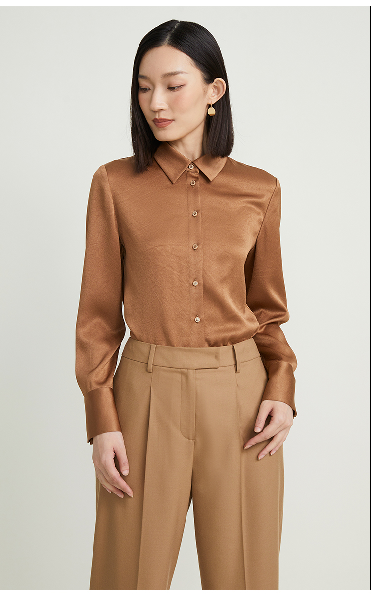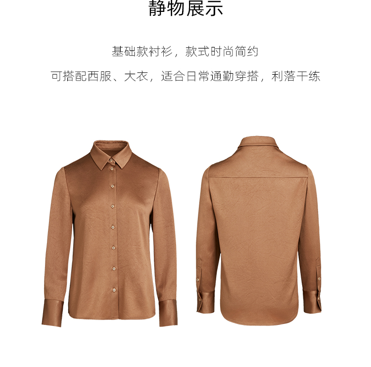 pure touch女士衬衫醋酸流沙色宽松百搭秋季上衣叠穿通勤外套