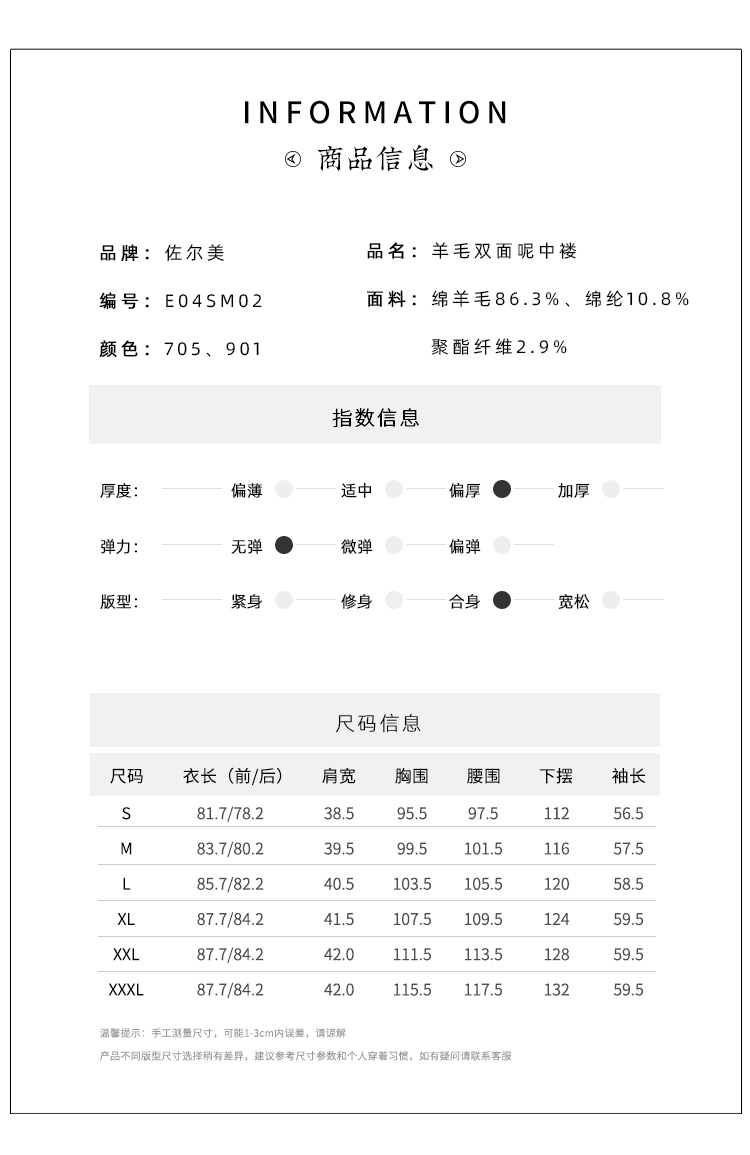 佐尔美2021冬季新品上市 羊毛双面呢中褛女E04SM02