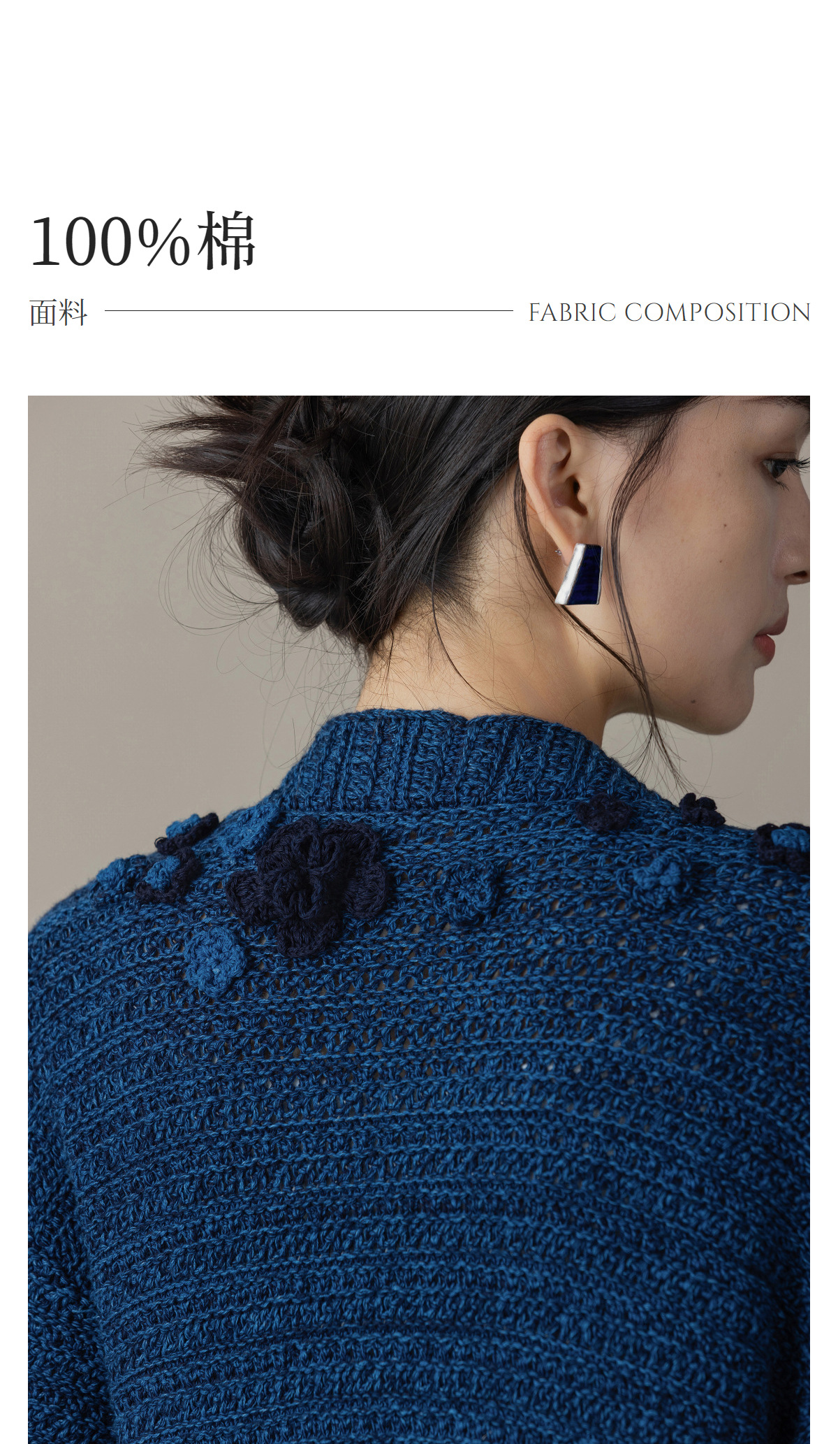 【林栖设计小店】【手工钩花】纯棉毛织外套优雅花边2025秋冬新款毛衣女1954077
