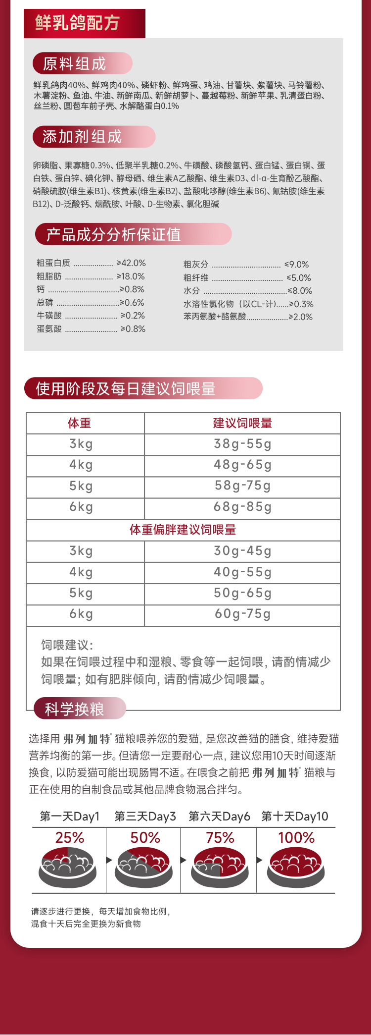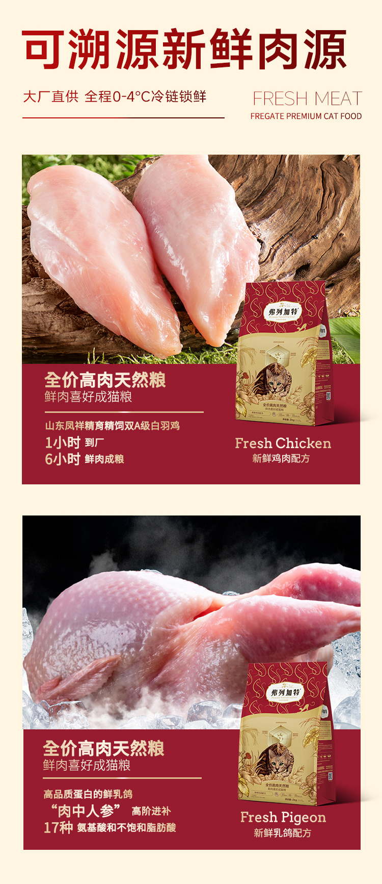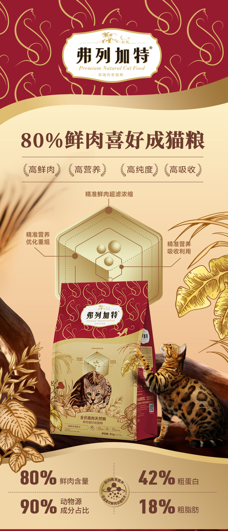 弗列加特80%鲜肉膨化猫粮 高蛋白 鸡肉乳鸽成猫高鲜猫粮 2kg/袋