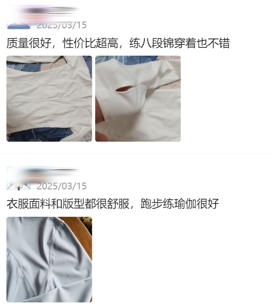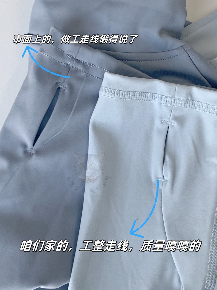 面料采用锦纶➕氨纶,可不是那些便宜的聚酯纤维能比的, 这性价比,闭眼冲就完事儿啦💥 ! 特意买了一件市面上的其它产品,给大家看看对比