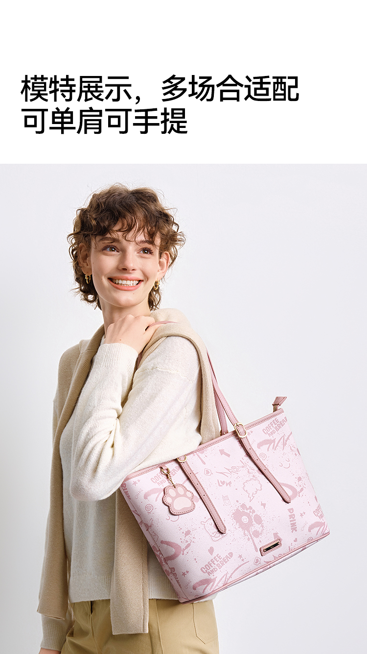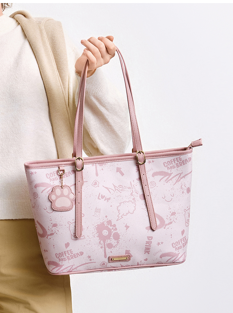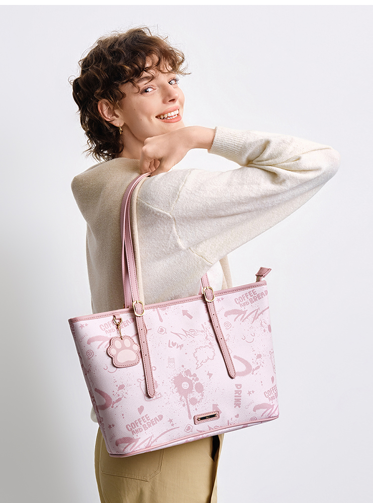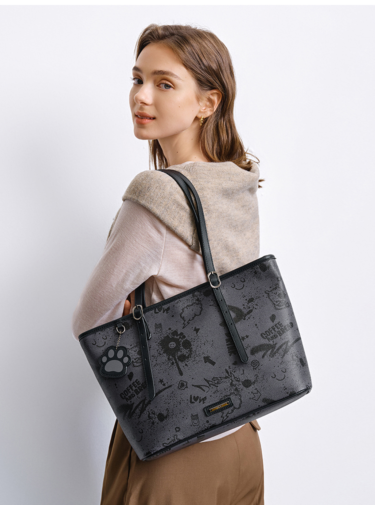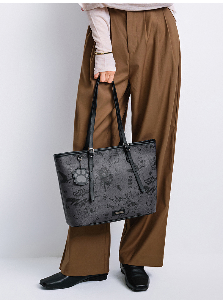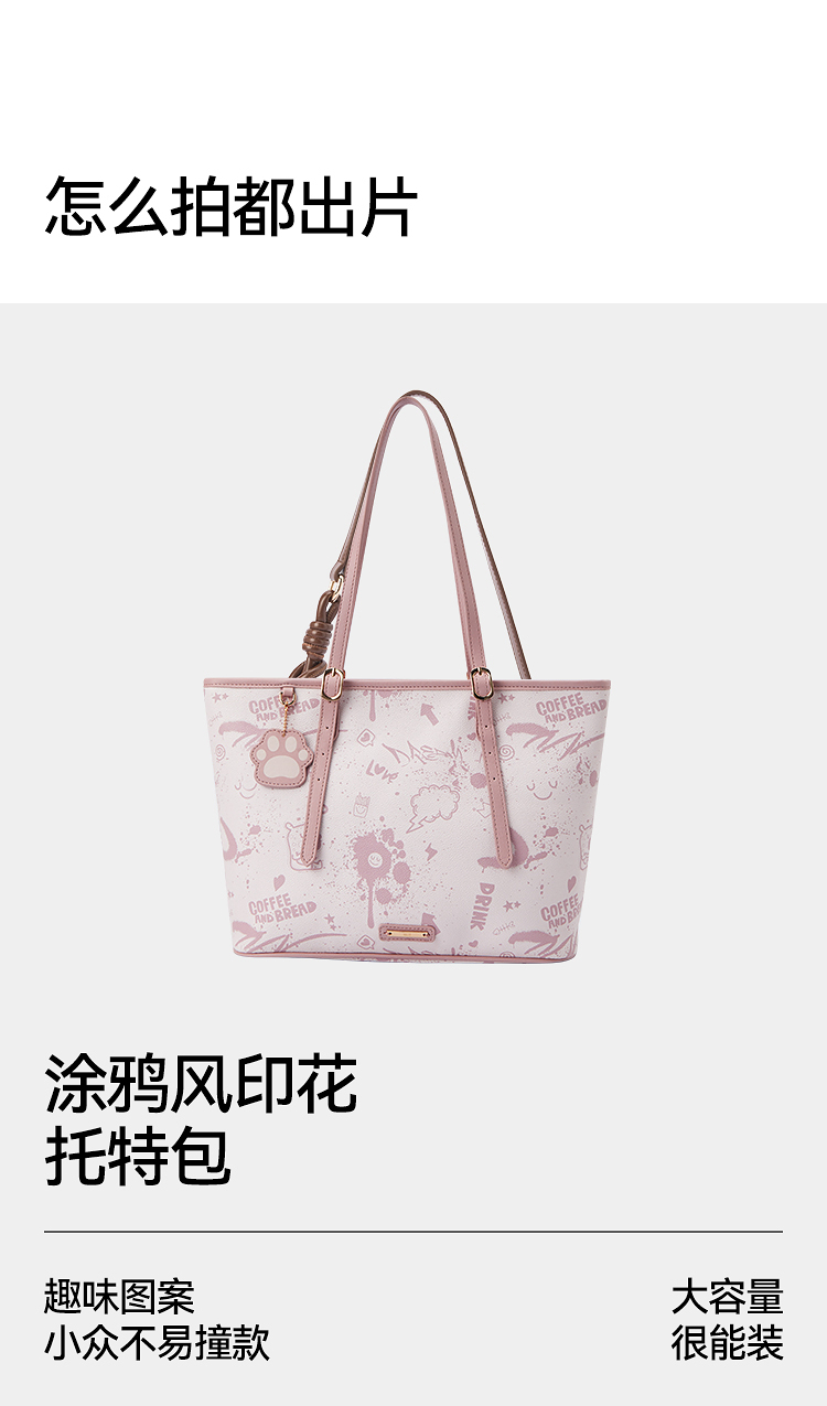 森马包包女托特包艺术感涂鸦印花手提包2025新款单肩包大容量小众