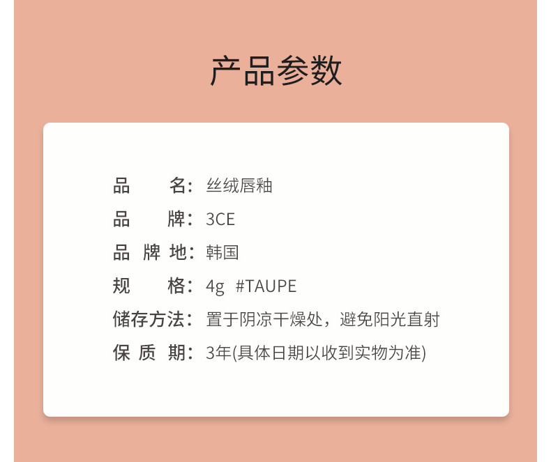 3CE 雾面哑光唇釉 TAUPE