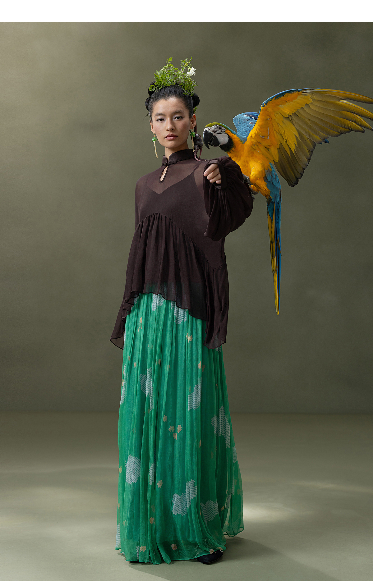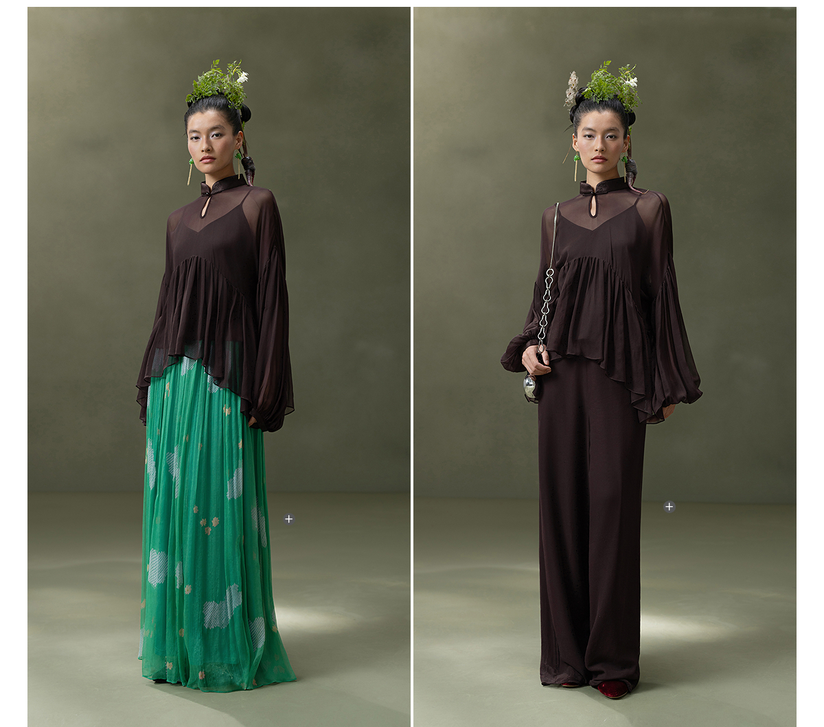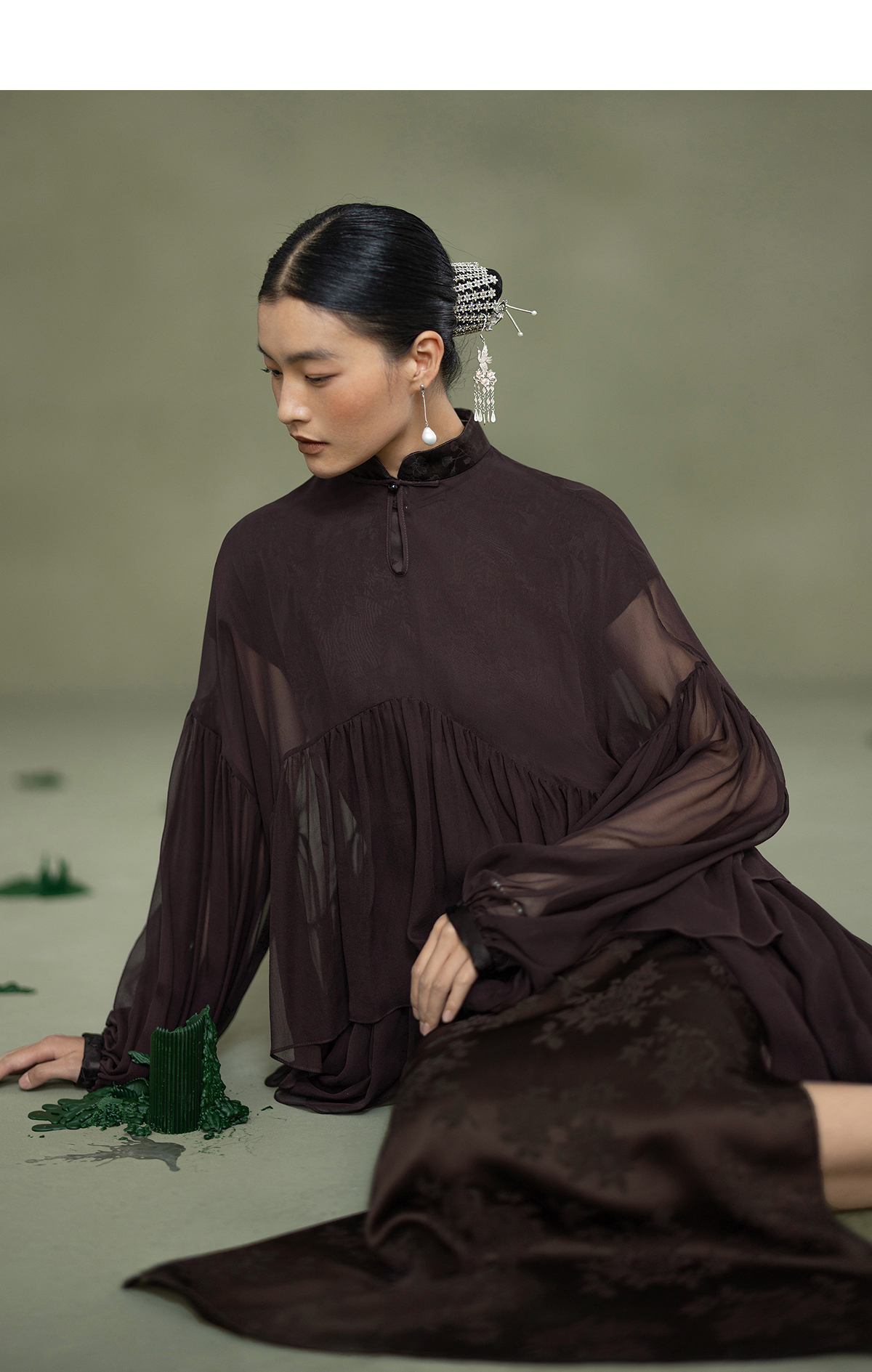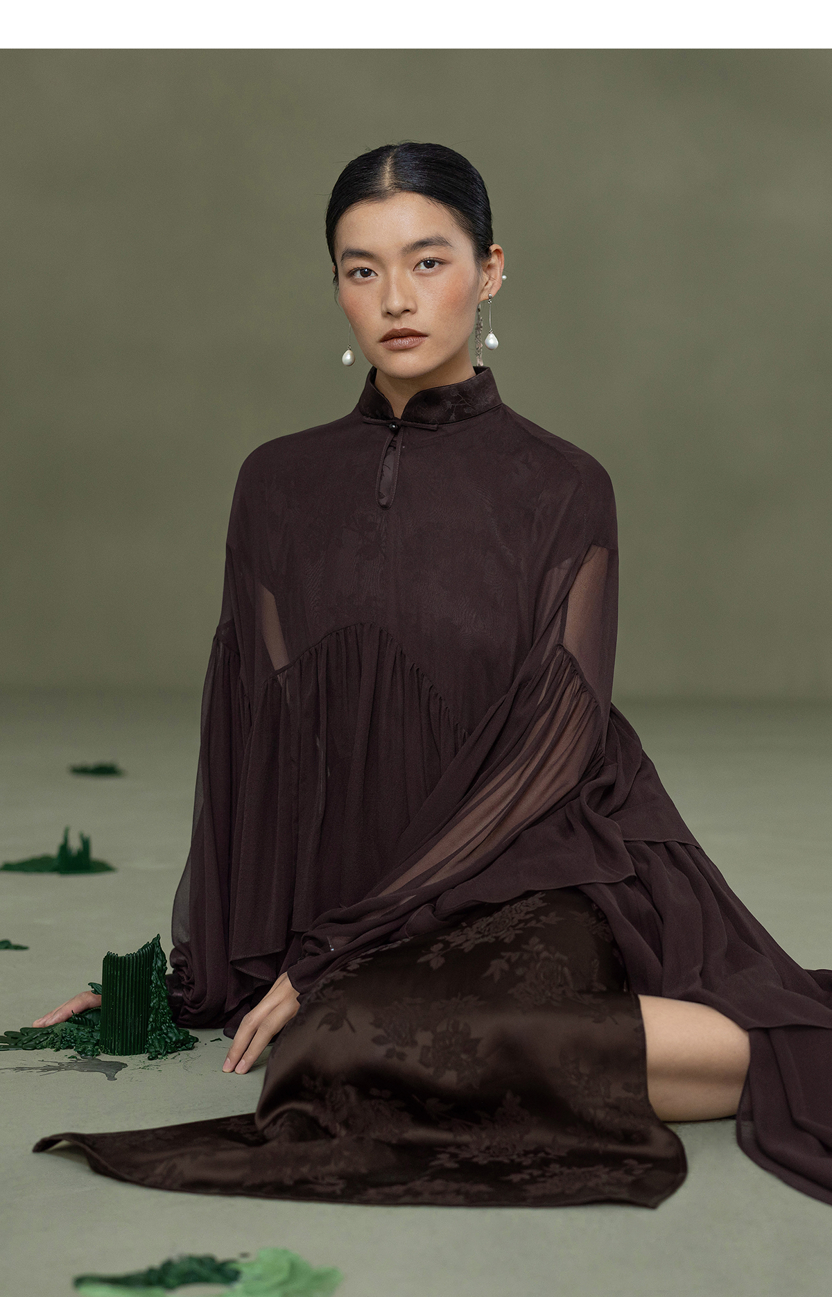 【林栖设计小店】鎏光溯影|提花密褶层次感2026春新款国风真丝罩衫两件套1961171