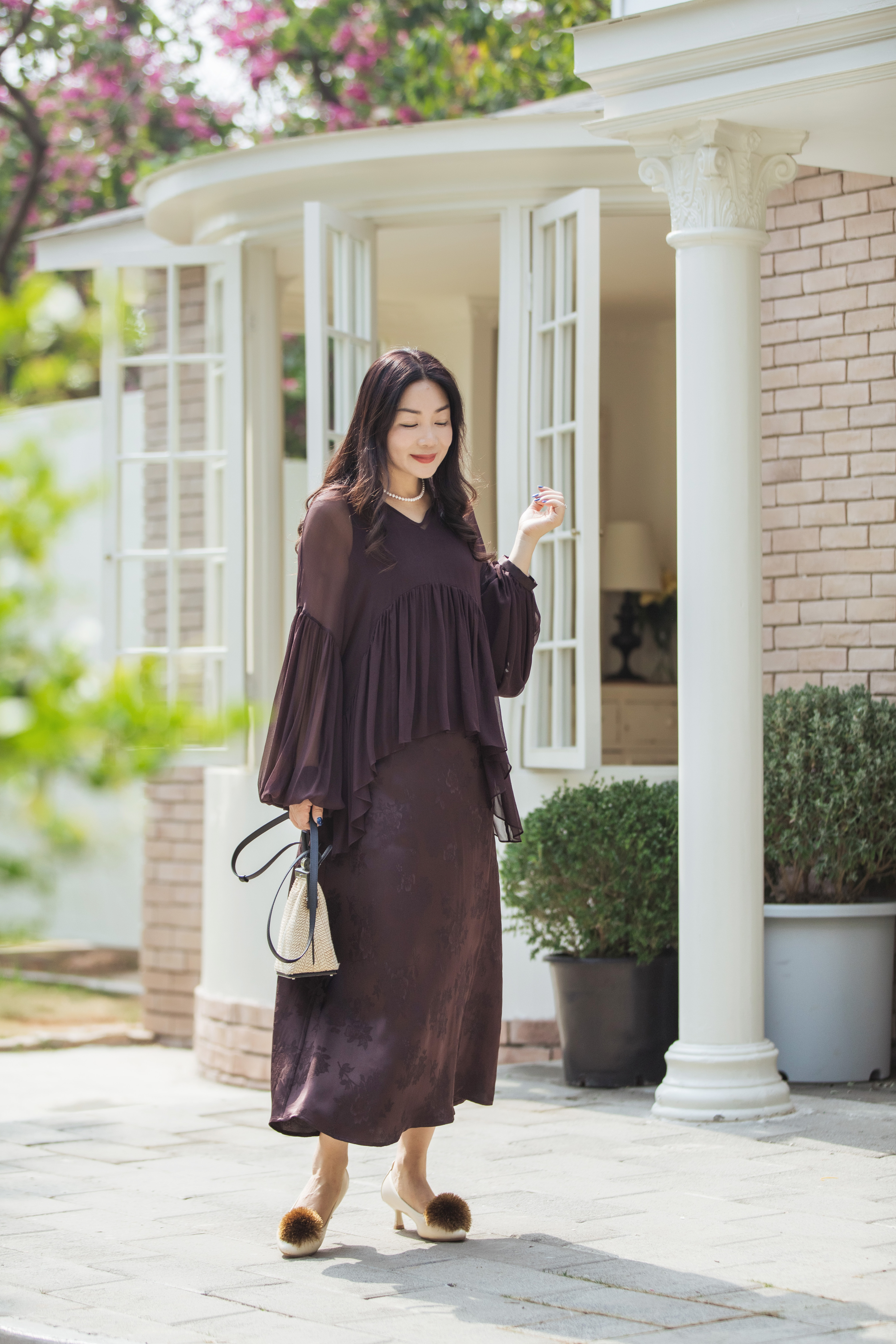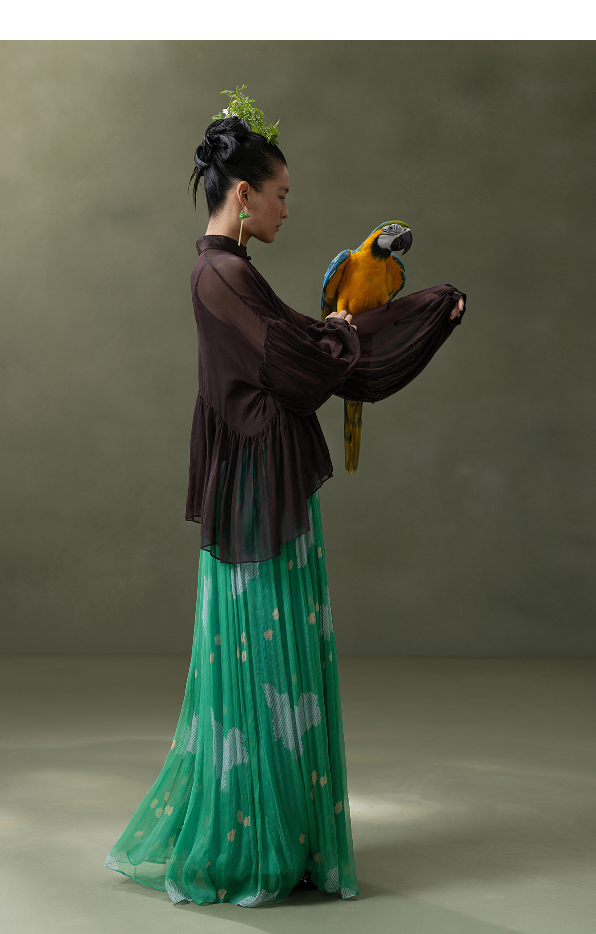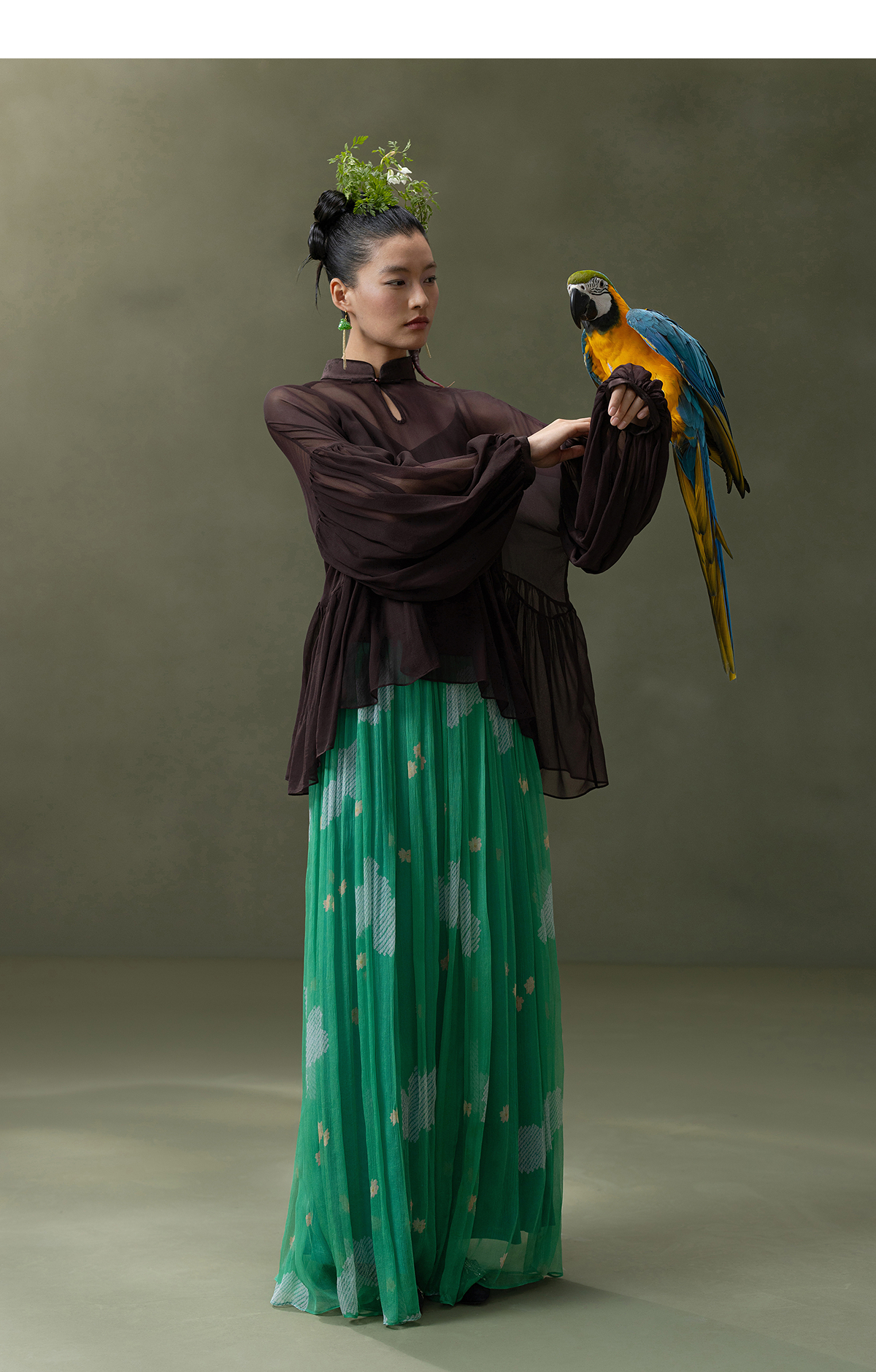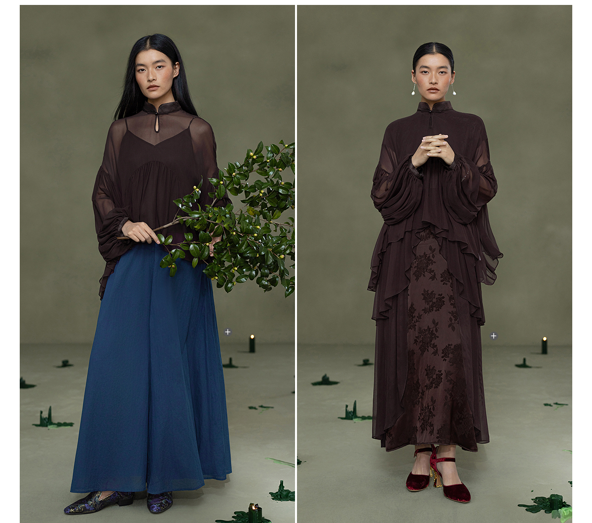 【林栖设计小店】鎏光溯影|提花密褶层次感2026春新款国风真丝罩衫两件套1961171