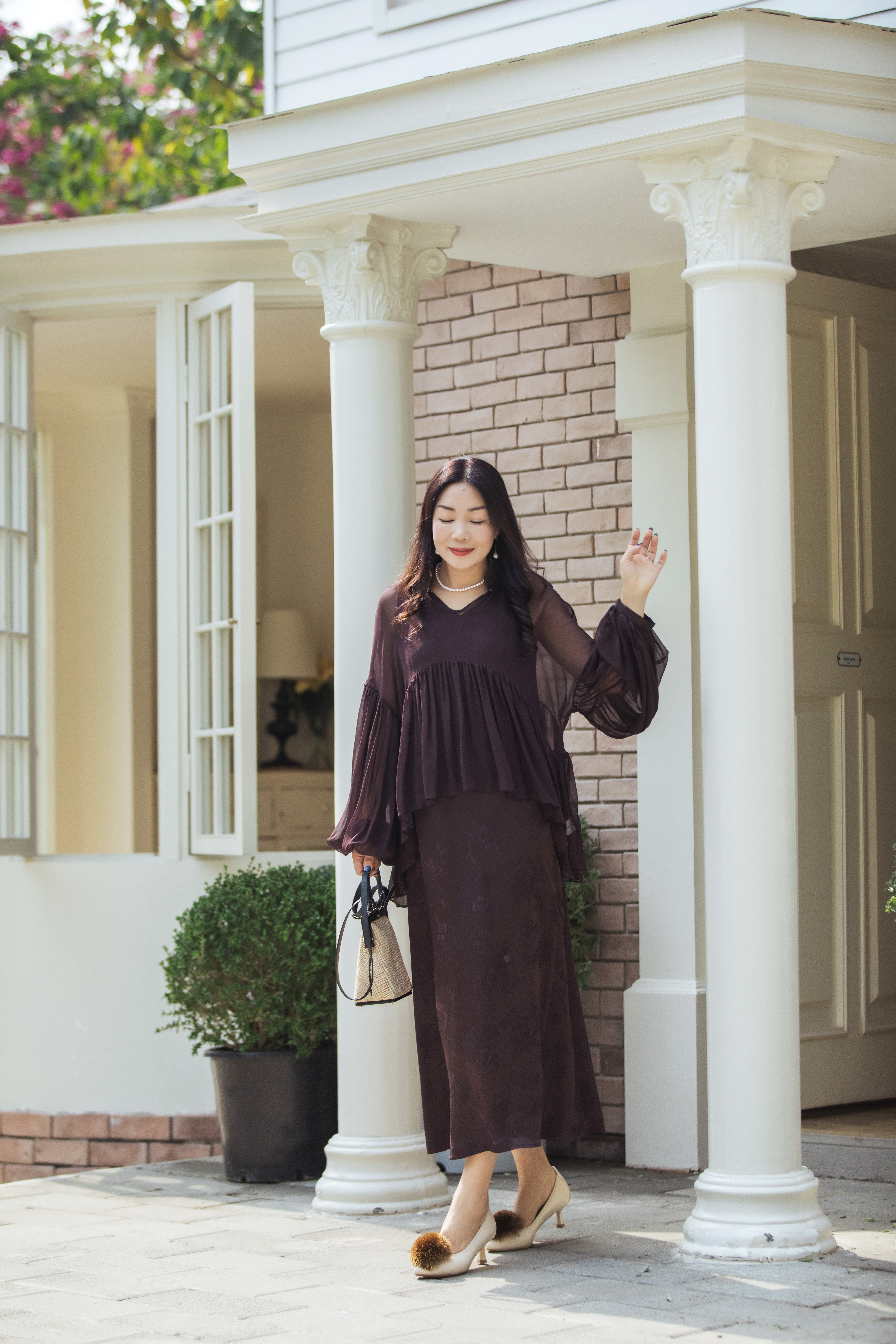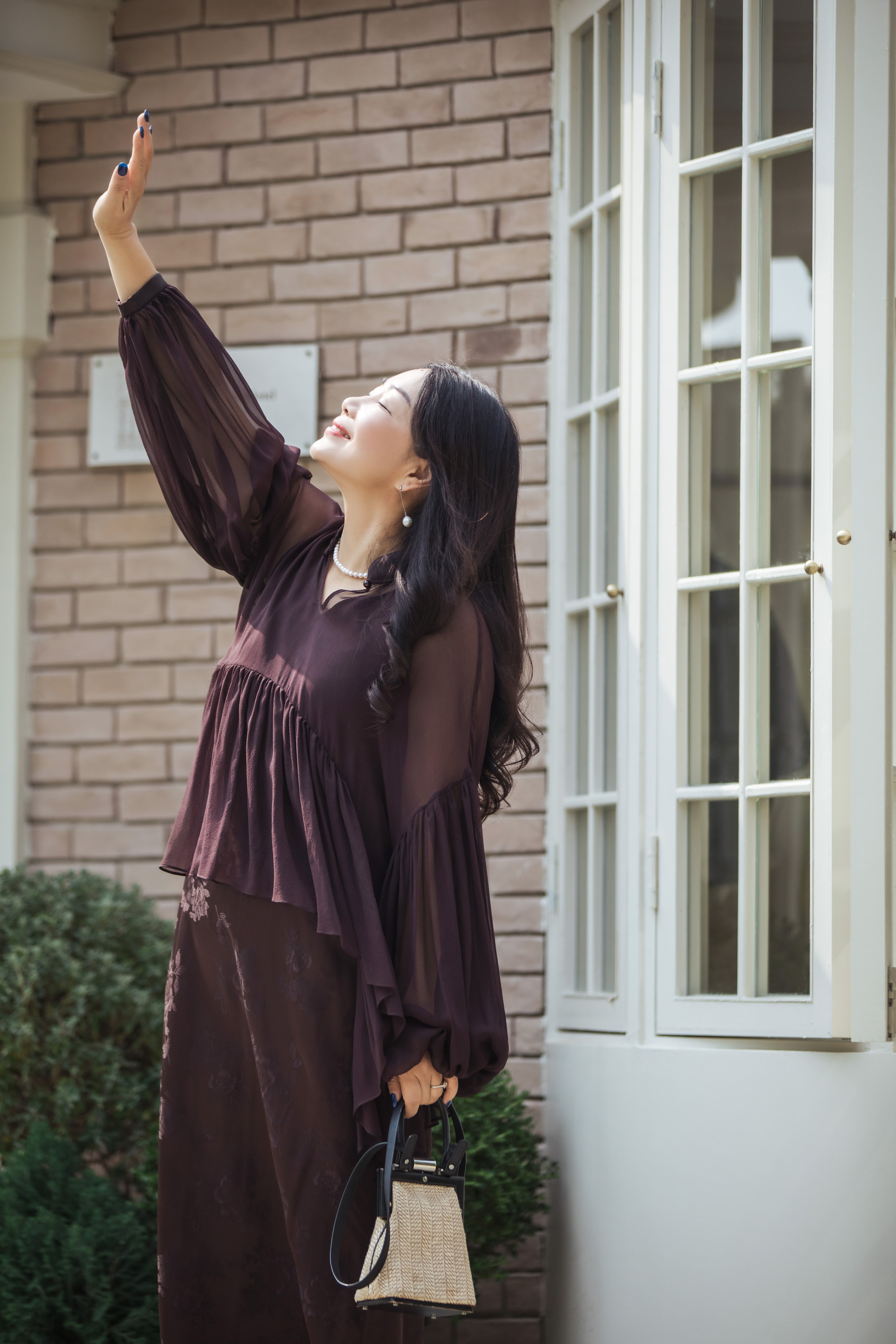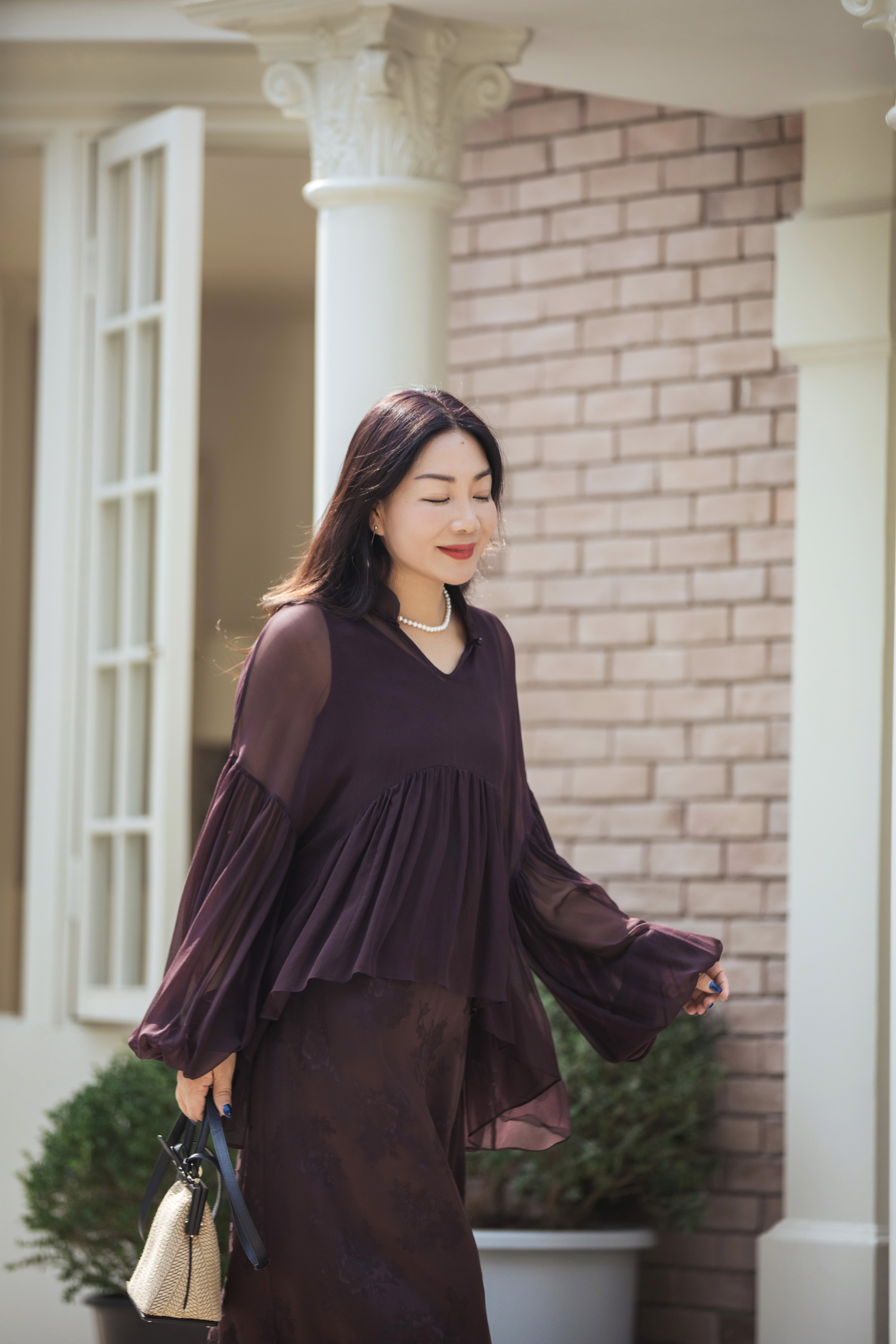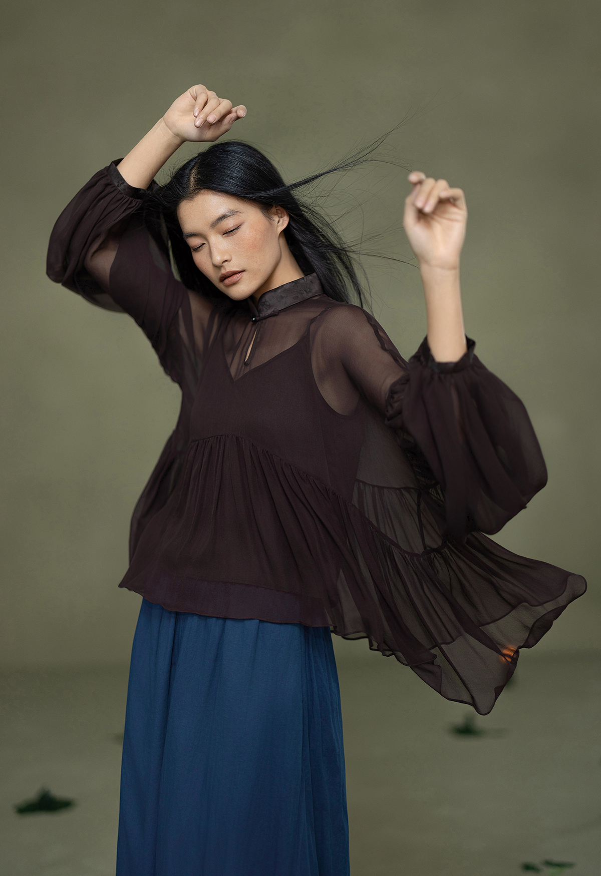 【林栖设计小店】鎏光溯影|提花密褶层次感2026春新款国风真丝罩衫两件套1961171