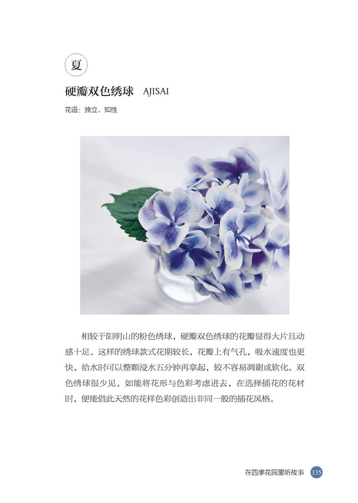 本书以实用花艺理念为出发点,结合插花作品,让人在轻松闲适的心境中学会插花,而且每种作品都有实用功能,花篮、发饰……书中精选了几十款花艺造型,每一款都有一个故事,每一种花都有它独特的语言。春、夏、秋、冬……每一个季节都有一些特别的花与你相伴。