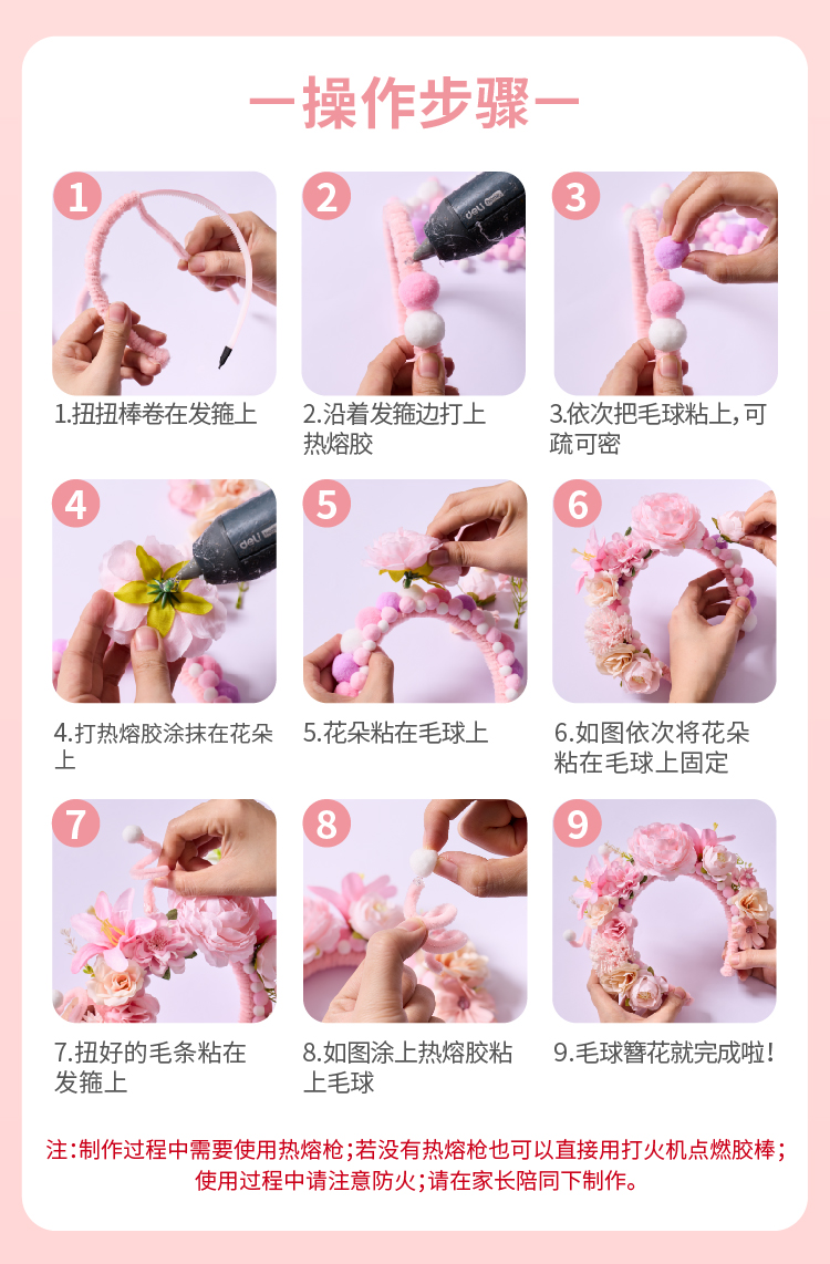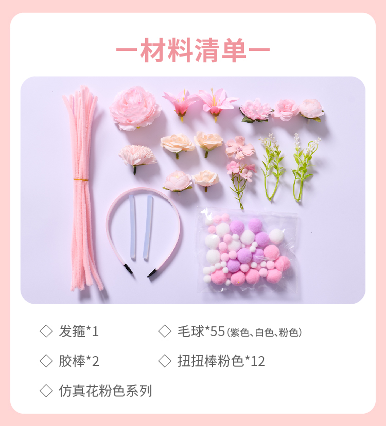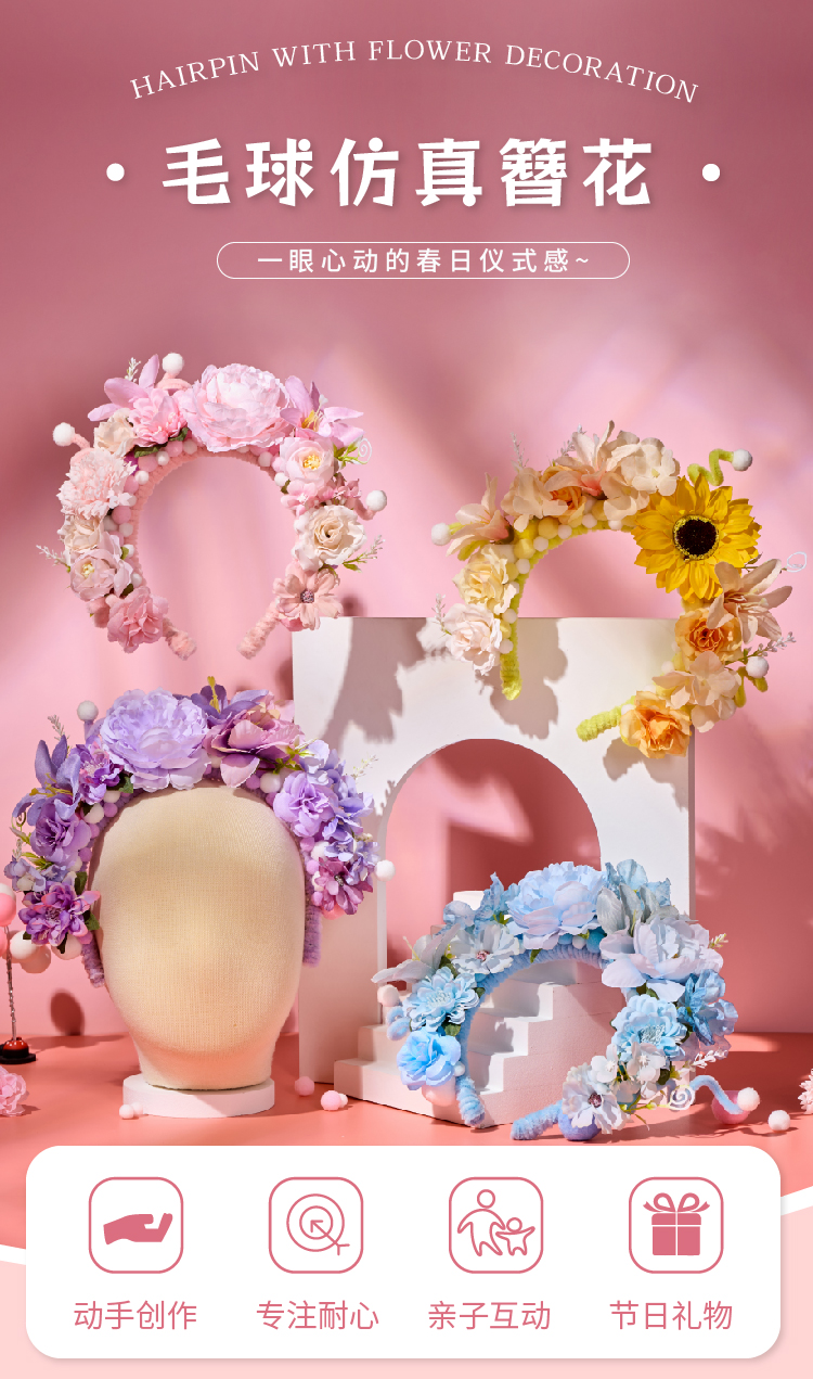 母亲节礼物毛球仿真簪花手工diy儿童制作材料包幼儿园2025送妈妈