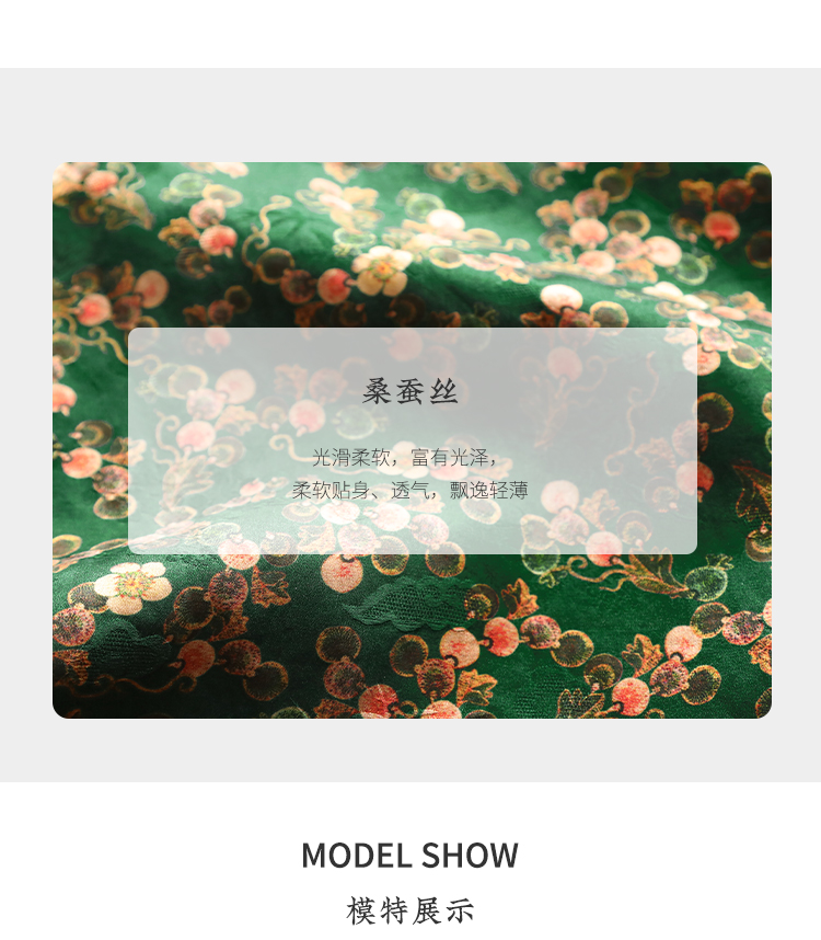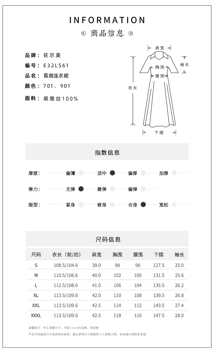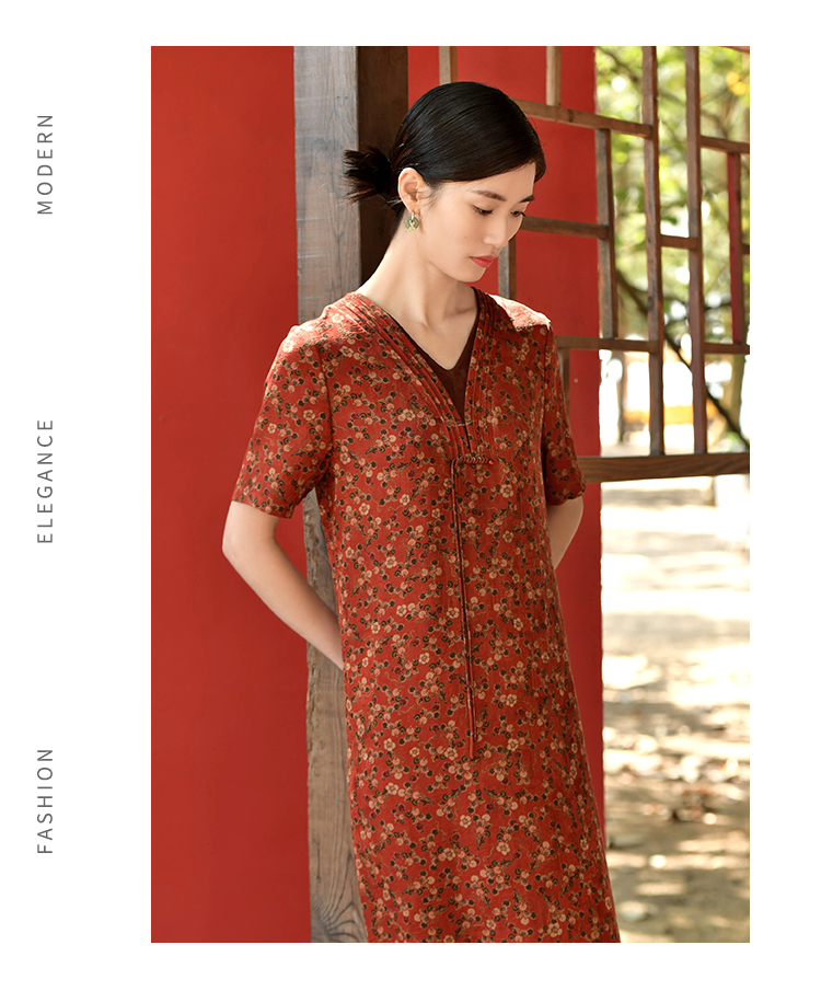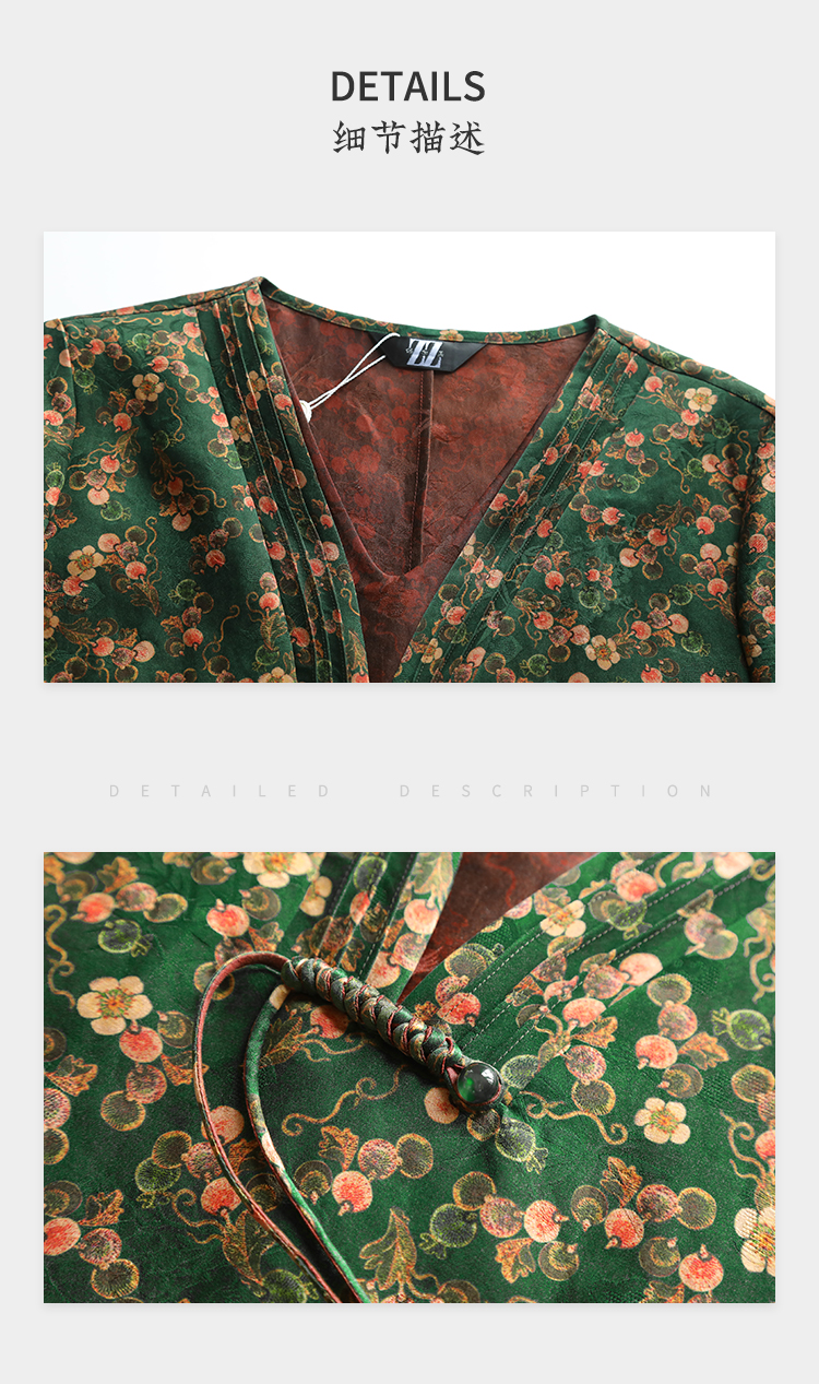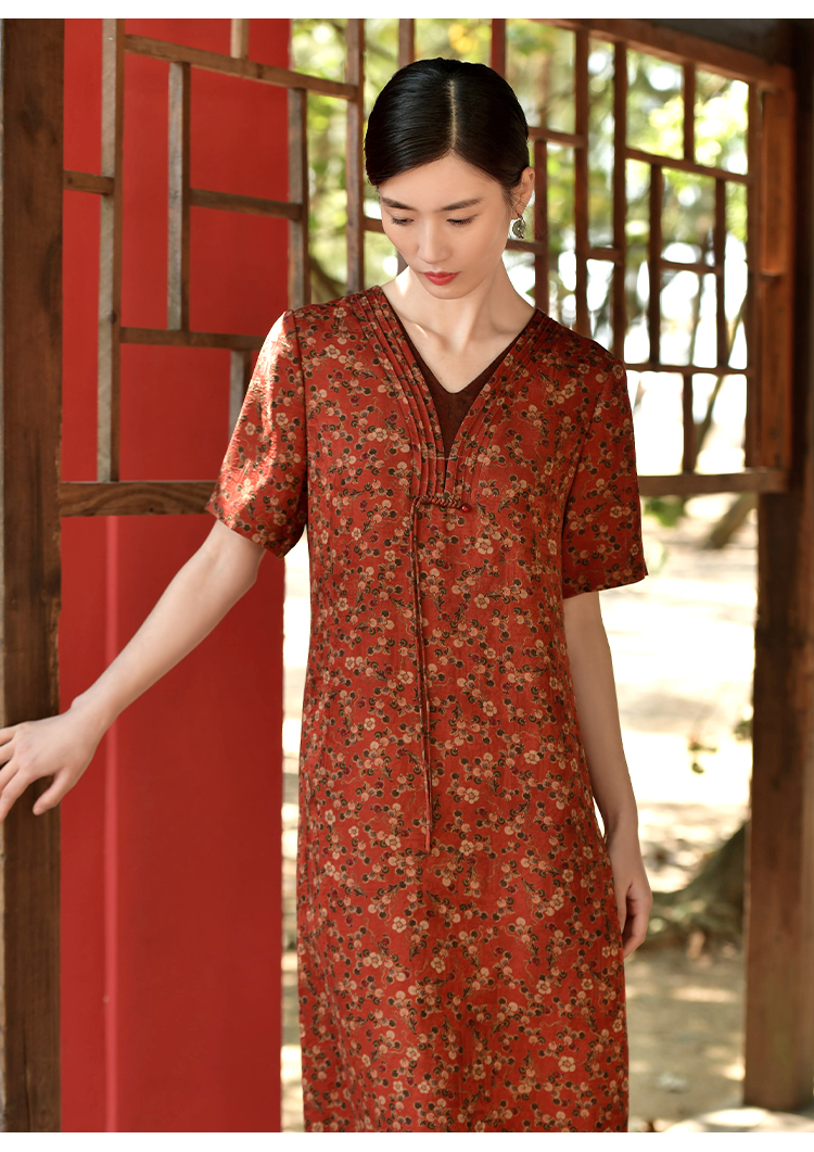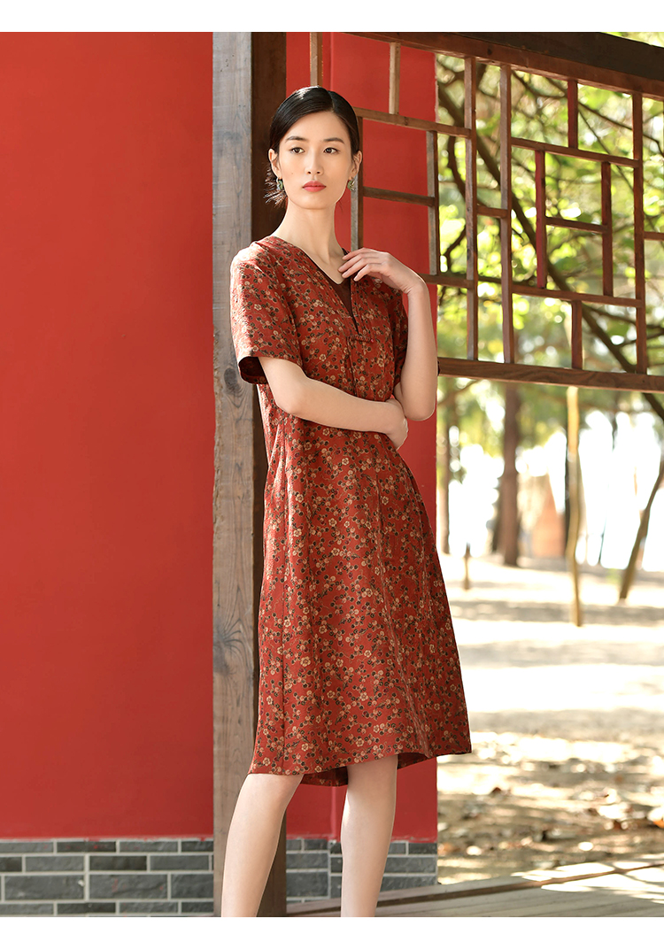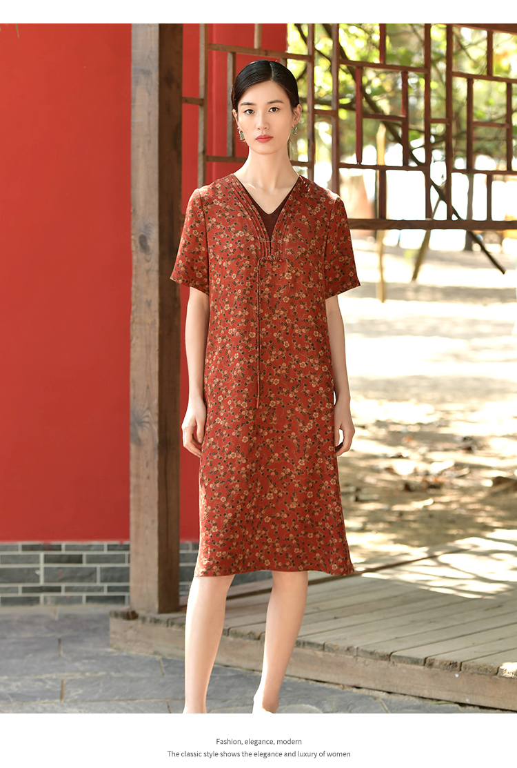佐尔美夏新款 国风V领100%桑蚕丝香云纱花罗连衣裙女E32LS61