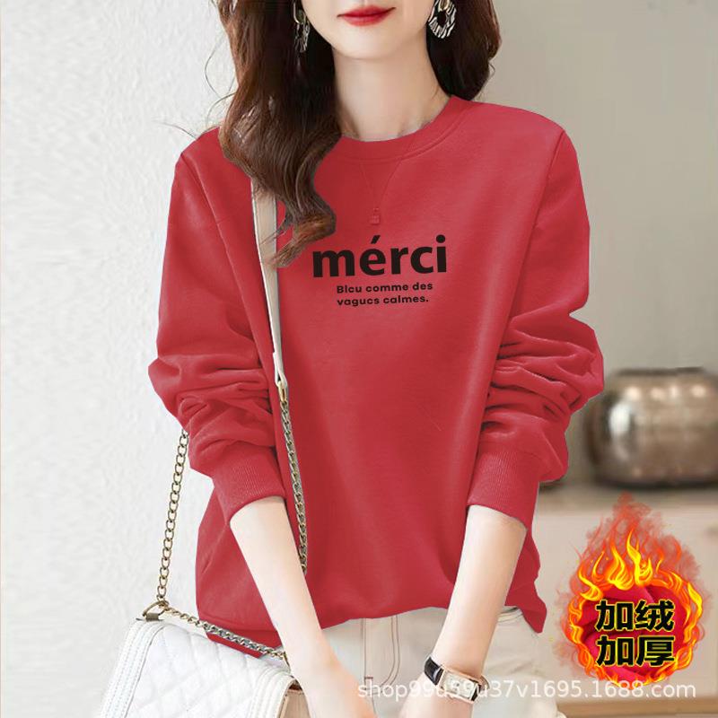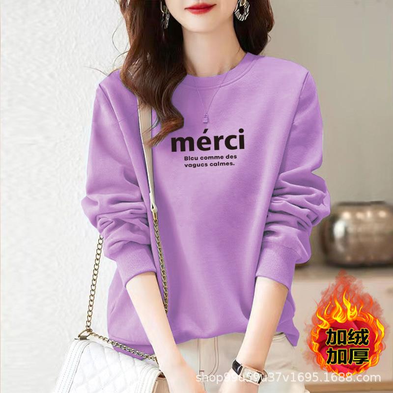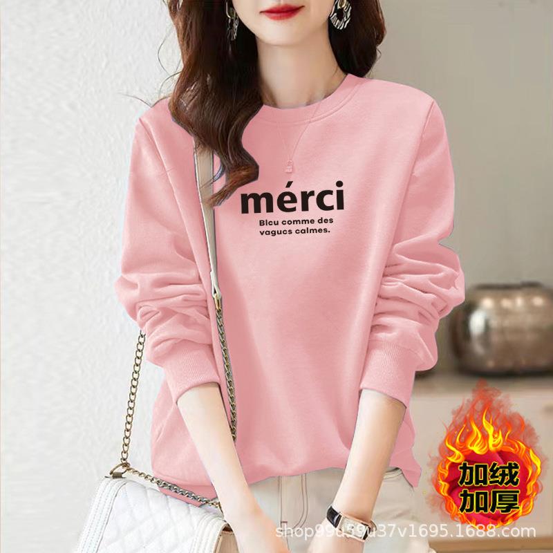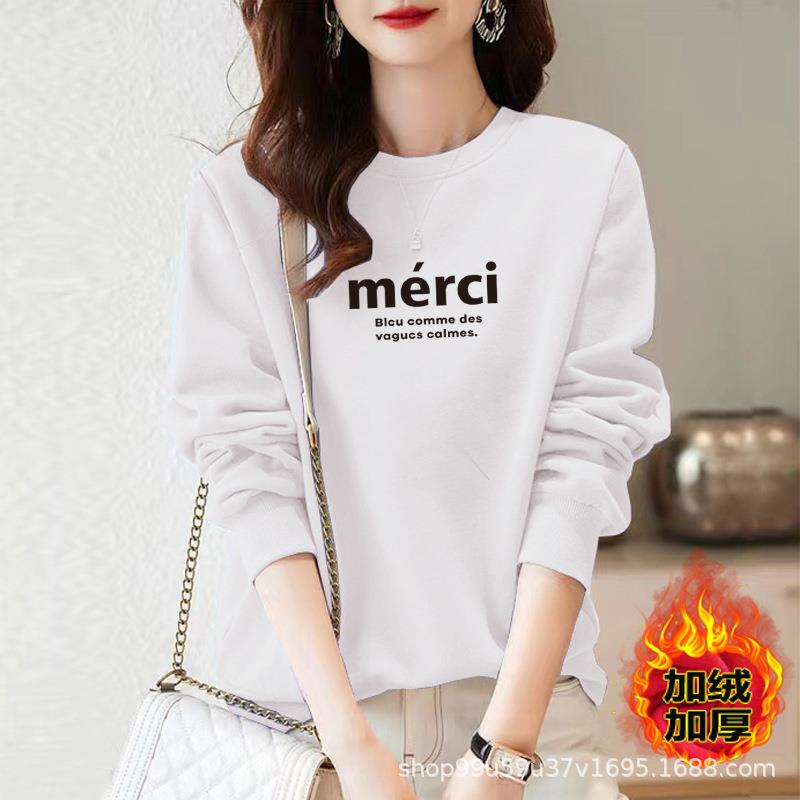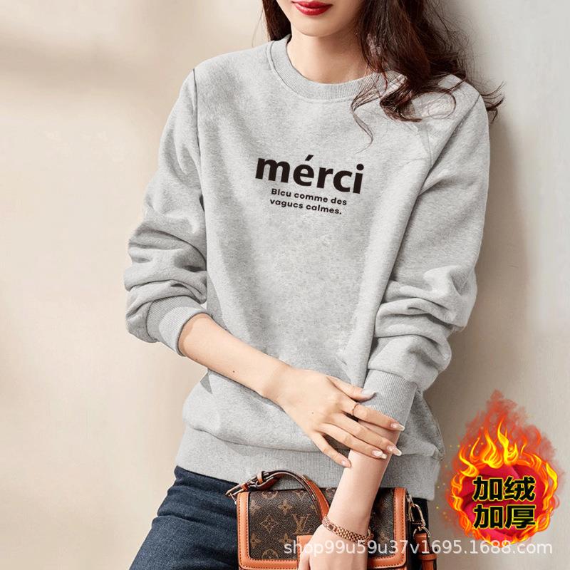 加绒女式棉质圆领宽松卫衣休闲运动衣显瘦时尚印花外套上衣字母
