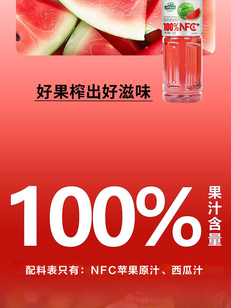 【2瓶更超值❗️NFC果汁饮料】甄选品质原料鲜果鲜榨,100%NFC冰双西瓜汁饮料整箱瓶装日期果汁清甜爽口1.25L