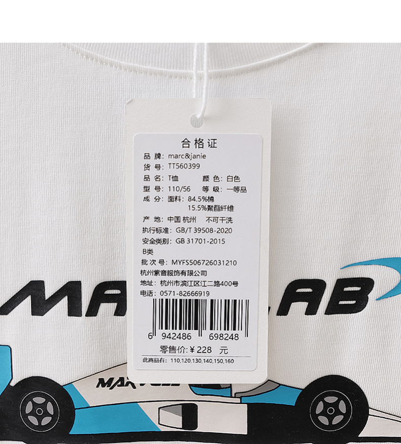 马克珍妮潮酷赛车男童凉感透气T2026年夏装新款560399