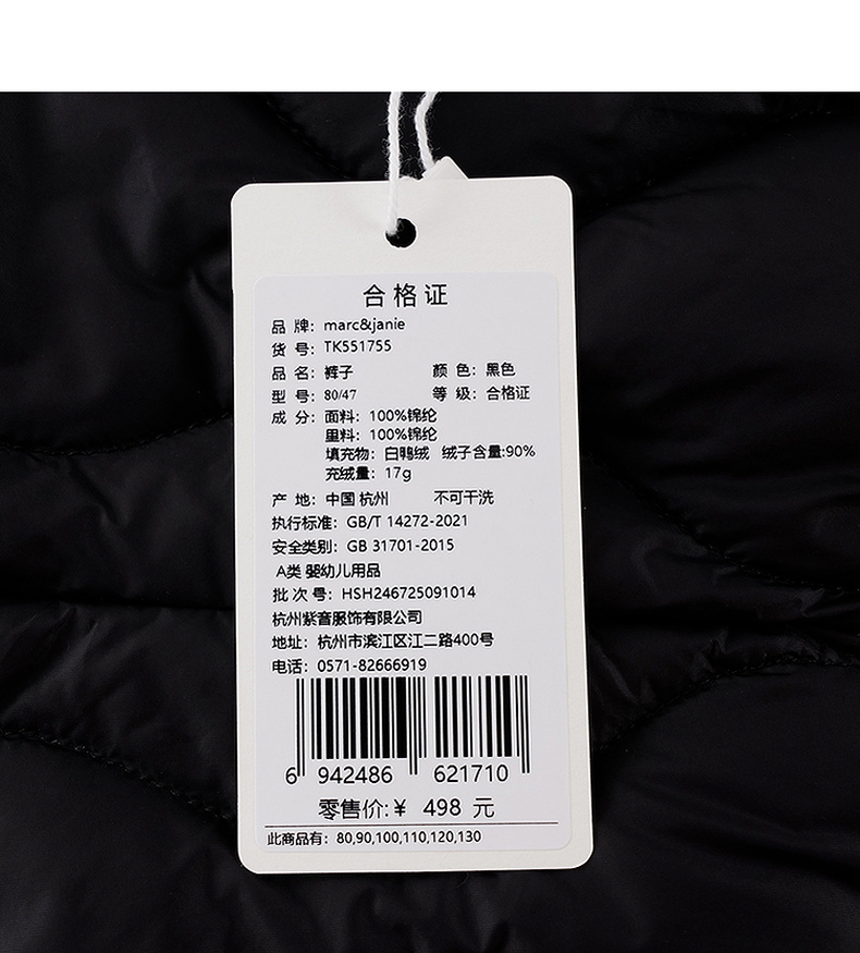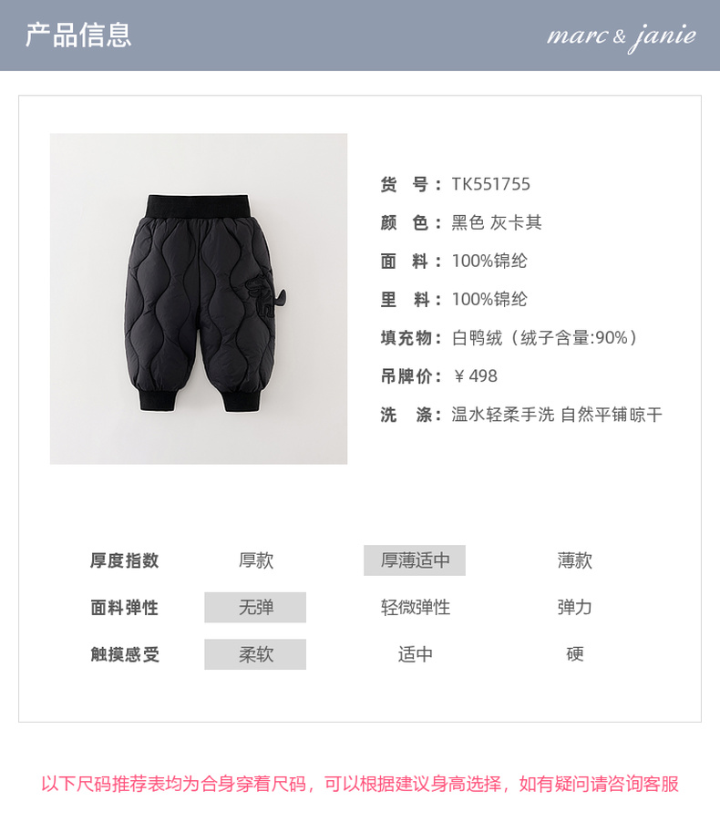【无氟防泼水】马克珍妮男童轻盈保暖云感羽绒裤2025年冬装新款551755