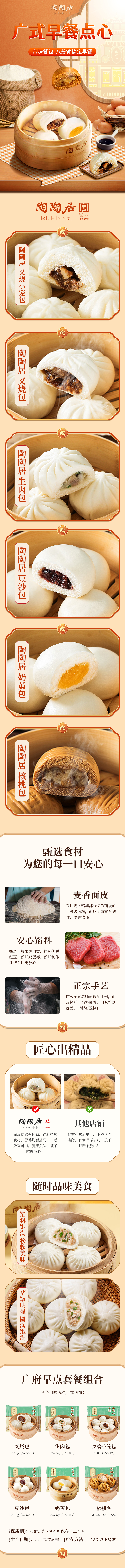 广府早点套餐1987.5g(生肉包、叉烧包、豆沙包、核桃包、奶黄包、叉烧小笼包)