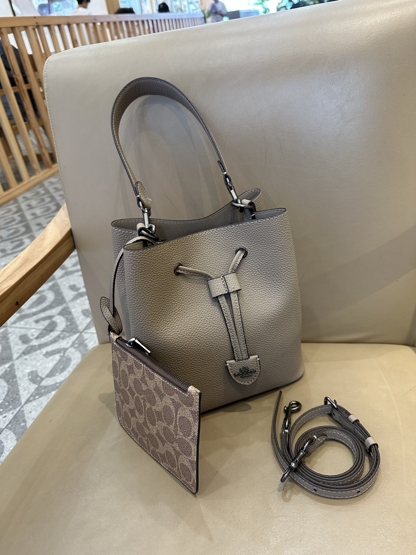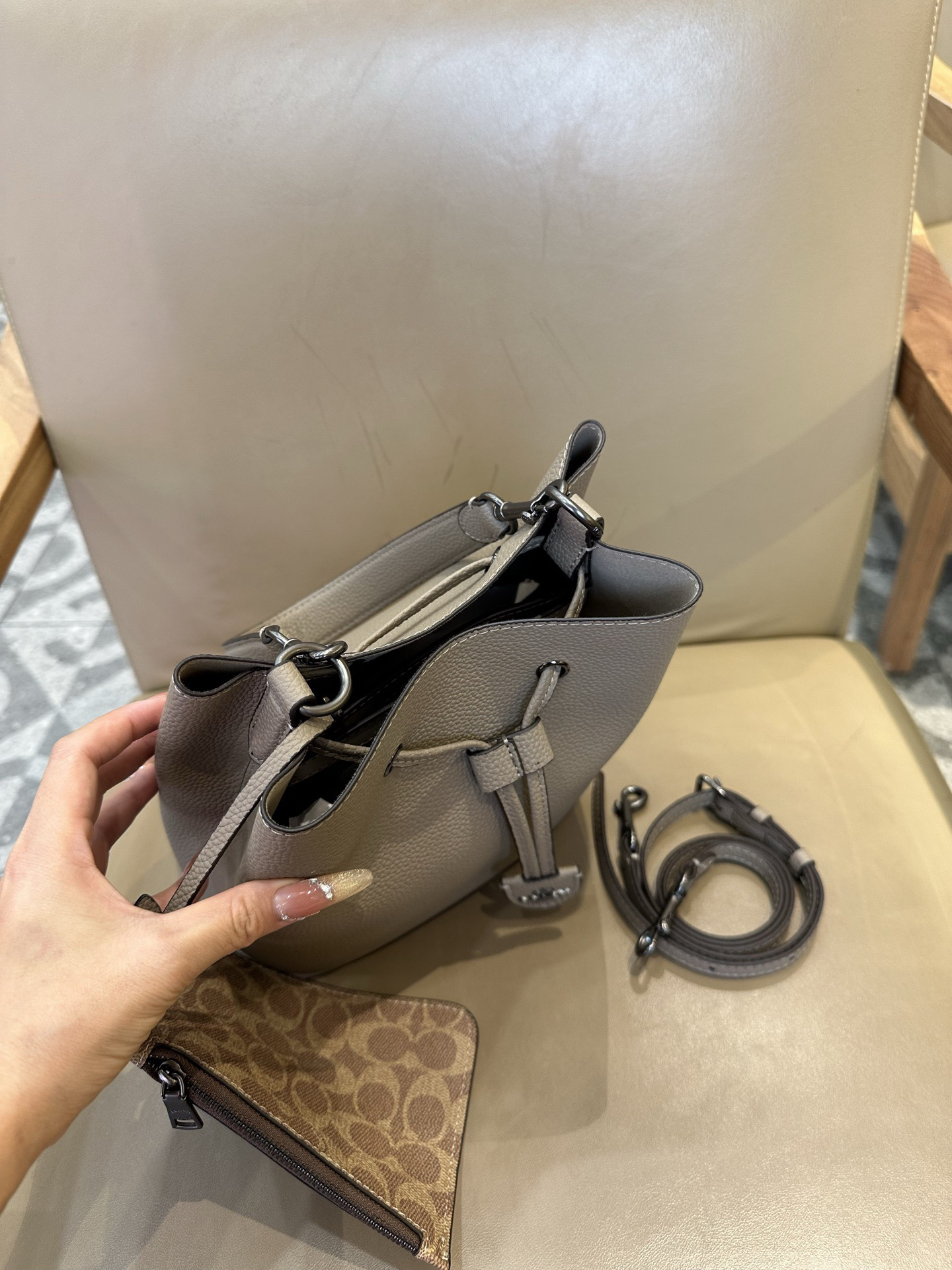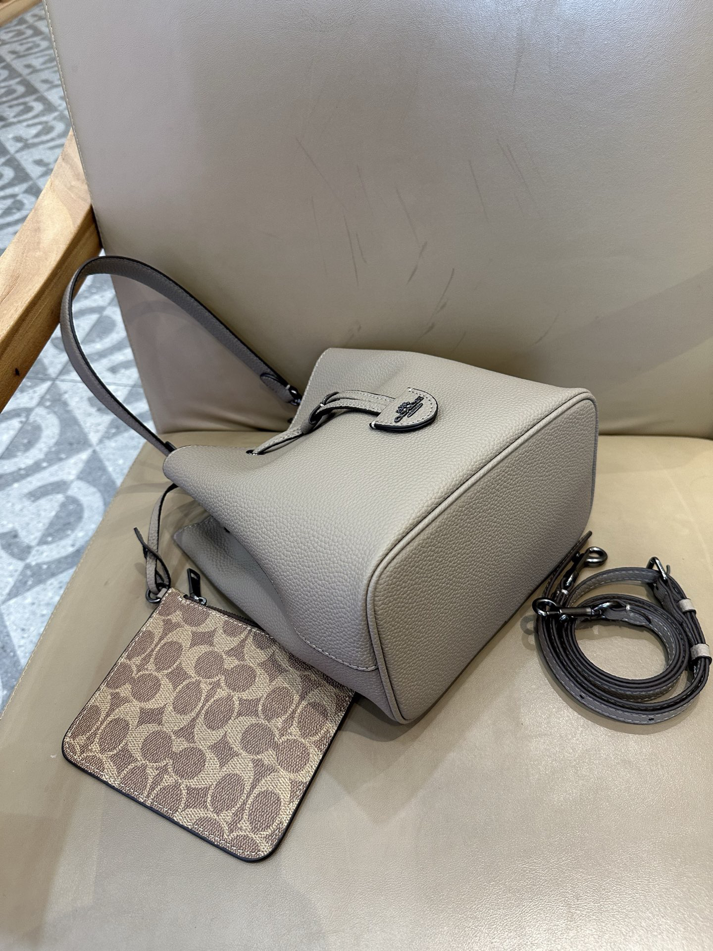 秋冬特惠💰540 蔻驰CBH07 CBH06 经典老花Rowan抽绳单肩斜挎水桶包 子母包,搭配可拆卸长短带,可手提腋下单肩斜挎多功能用法,可拆卸拉链手包、中央开放式隔层,抽绳设计开口 ,尺寸:长21cm x 高21cm x 宽14cm