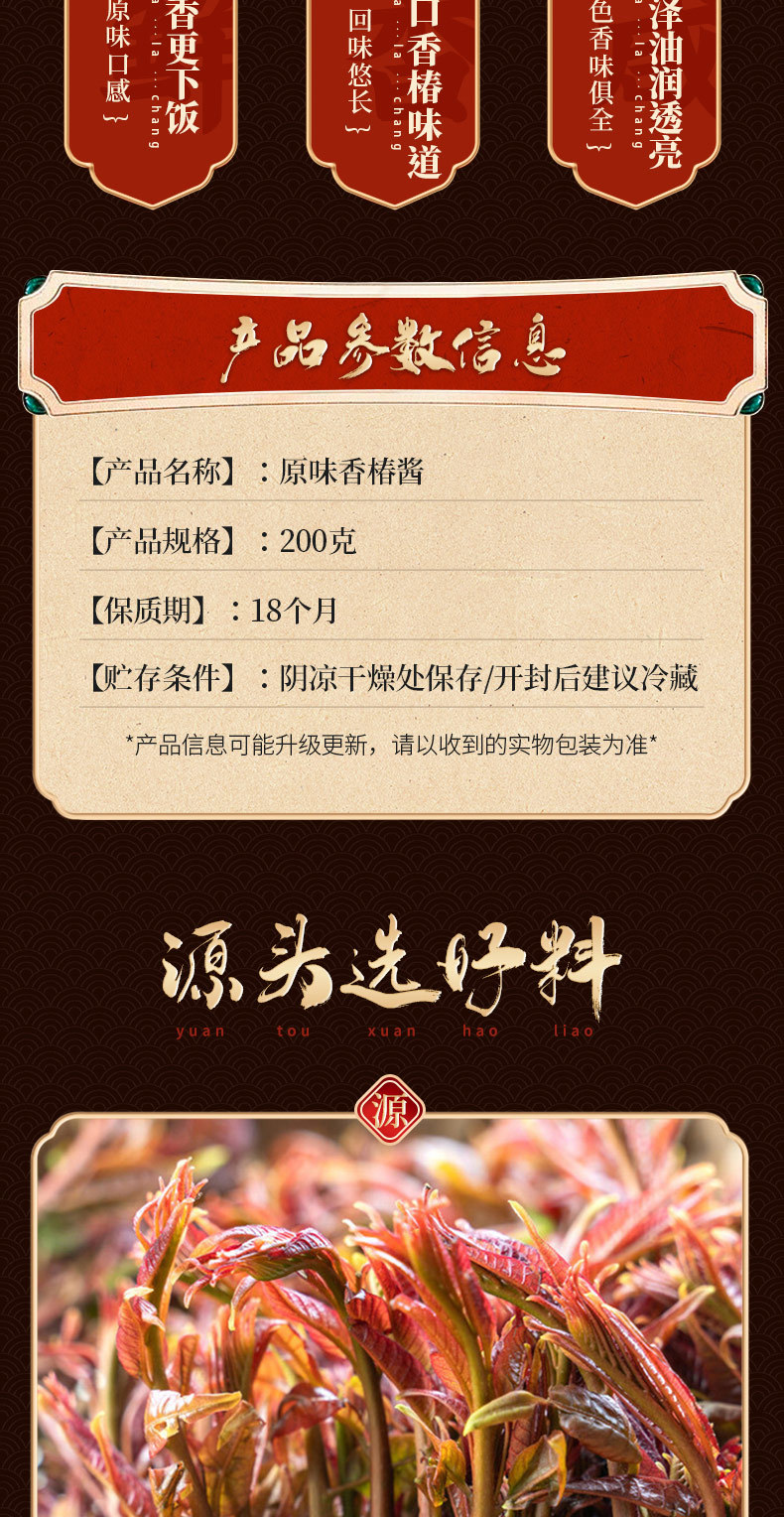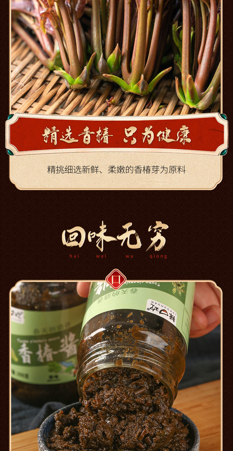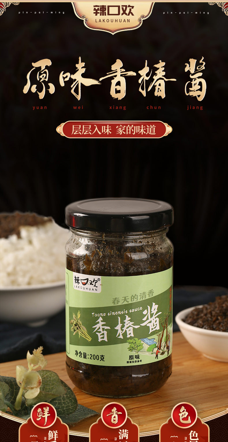 【29.9抢2罐❗原味香椿酱】家的味道,原味香椿酱油焖,色泽油润透亮,清爽入味量更足,椿芽酱瓶装下饭菜拌面酱香辣香椿芽拌饭酱QQ
