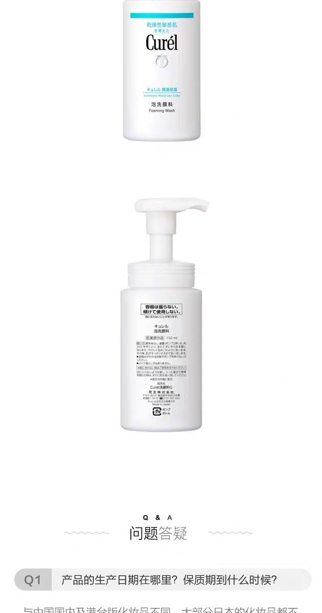 1、产品名称:珂润洗面奶
