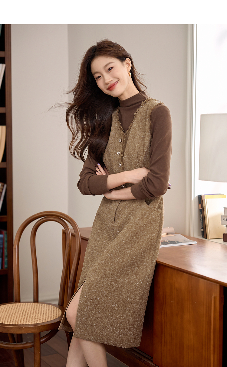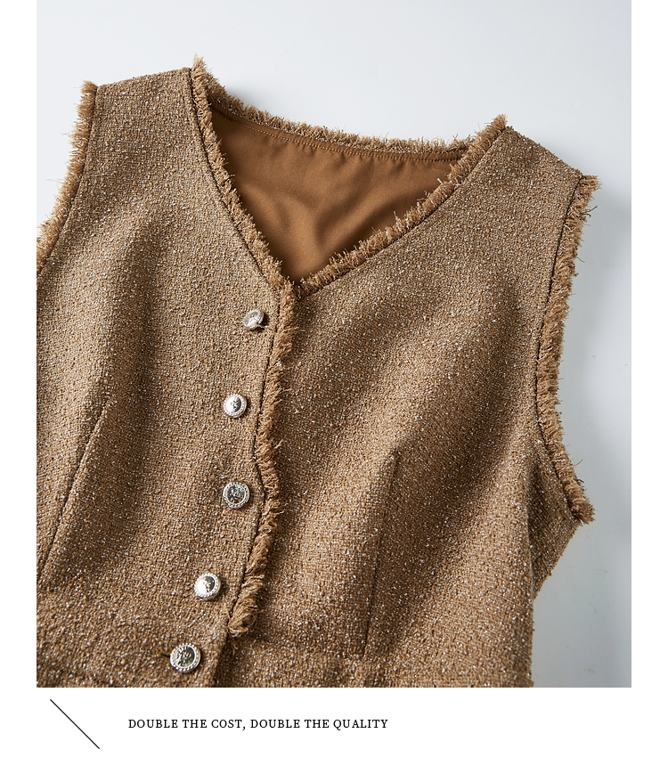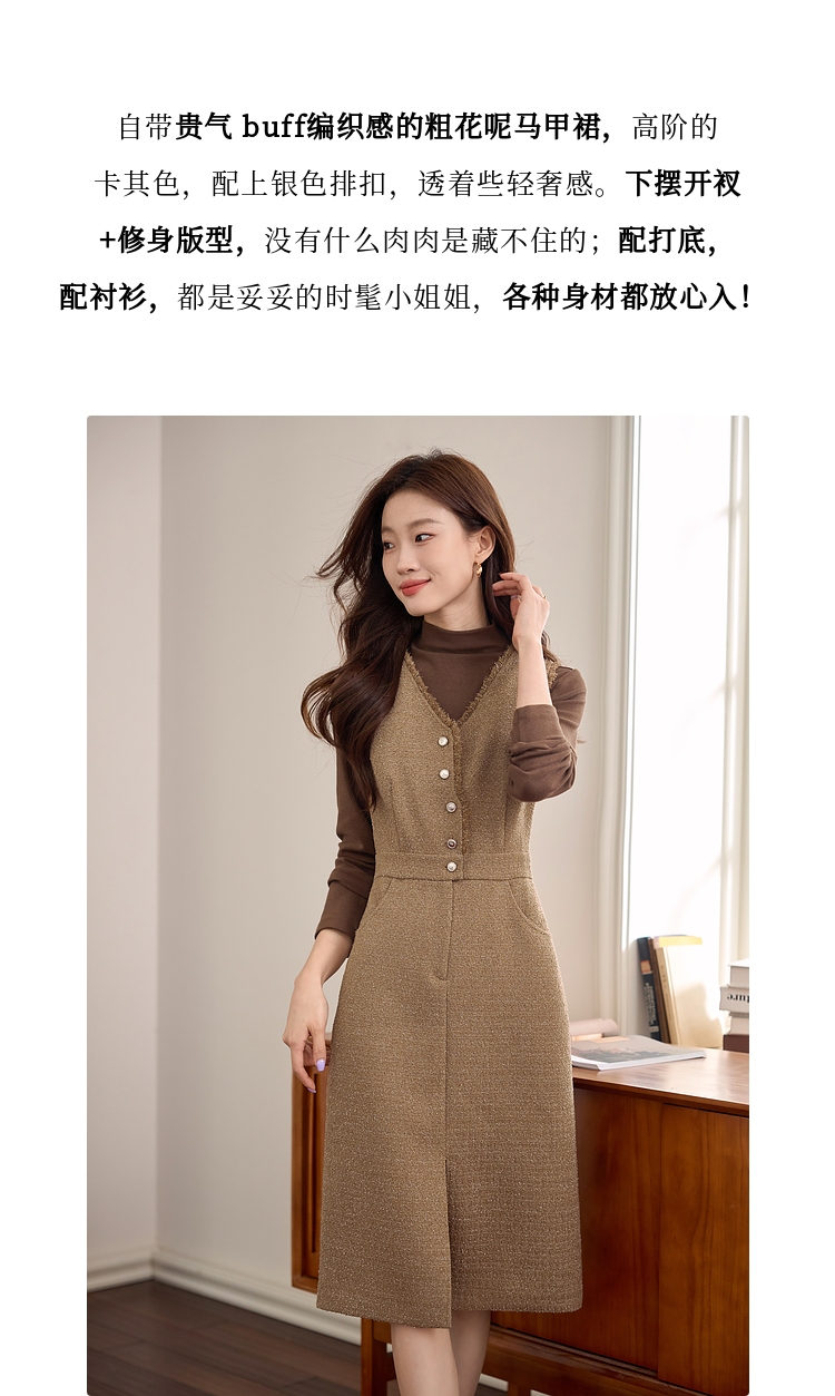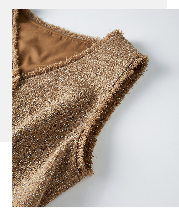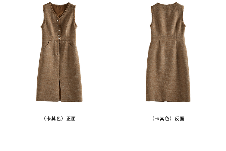 【年终特卖】熙世界小香风优雅气质无袖V领马甲裙女高级感秋冬粗花呢连衣裙背心裙