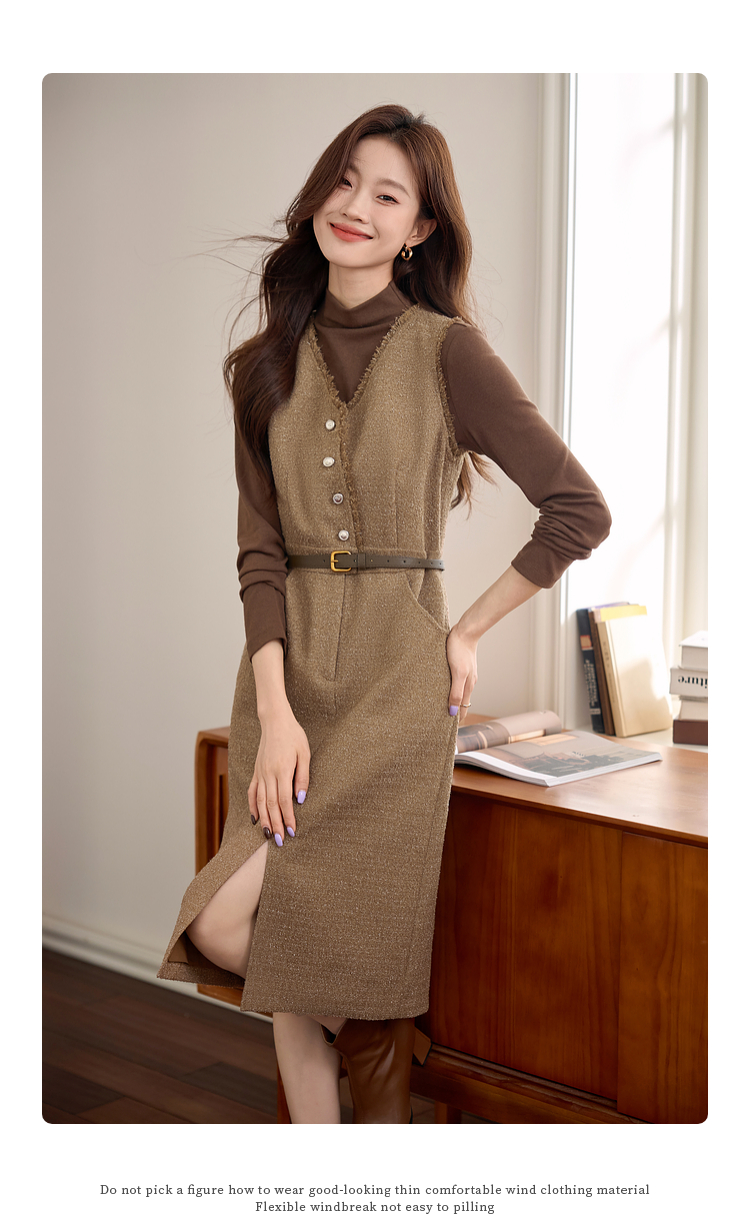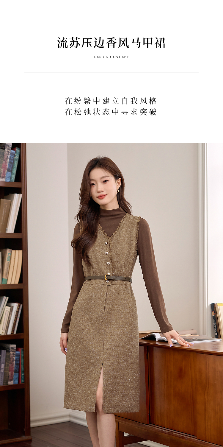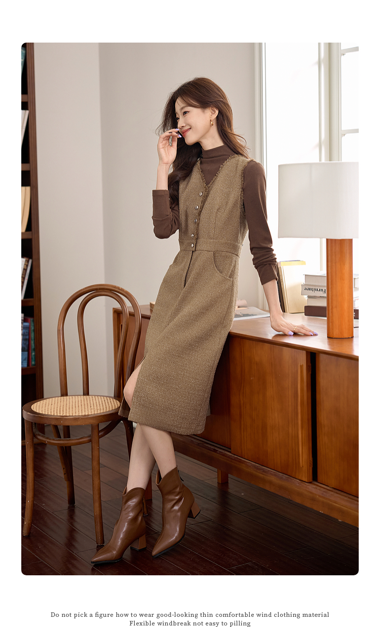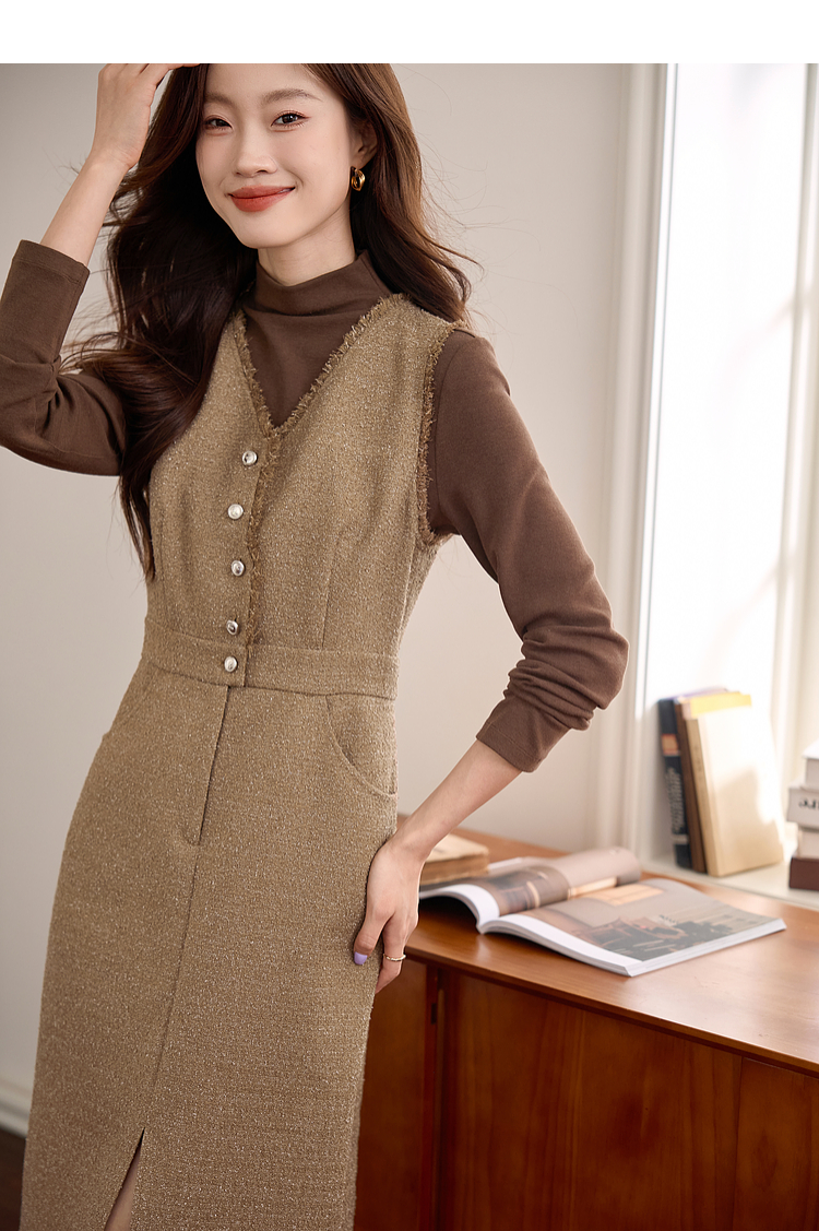 【年终特卖】熙世界小香风优雅气质无袖V领马甲裙女高级感秋冬粗花呢连衣裙背心裙