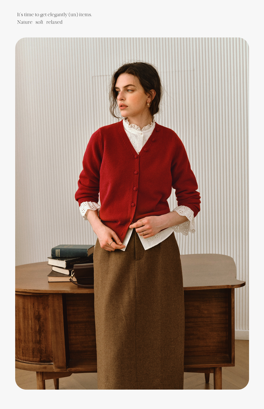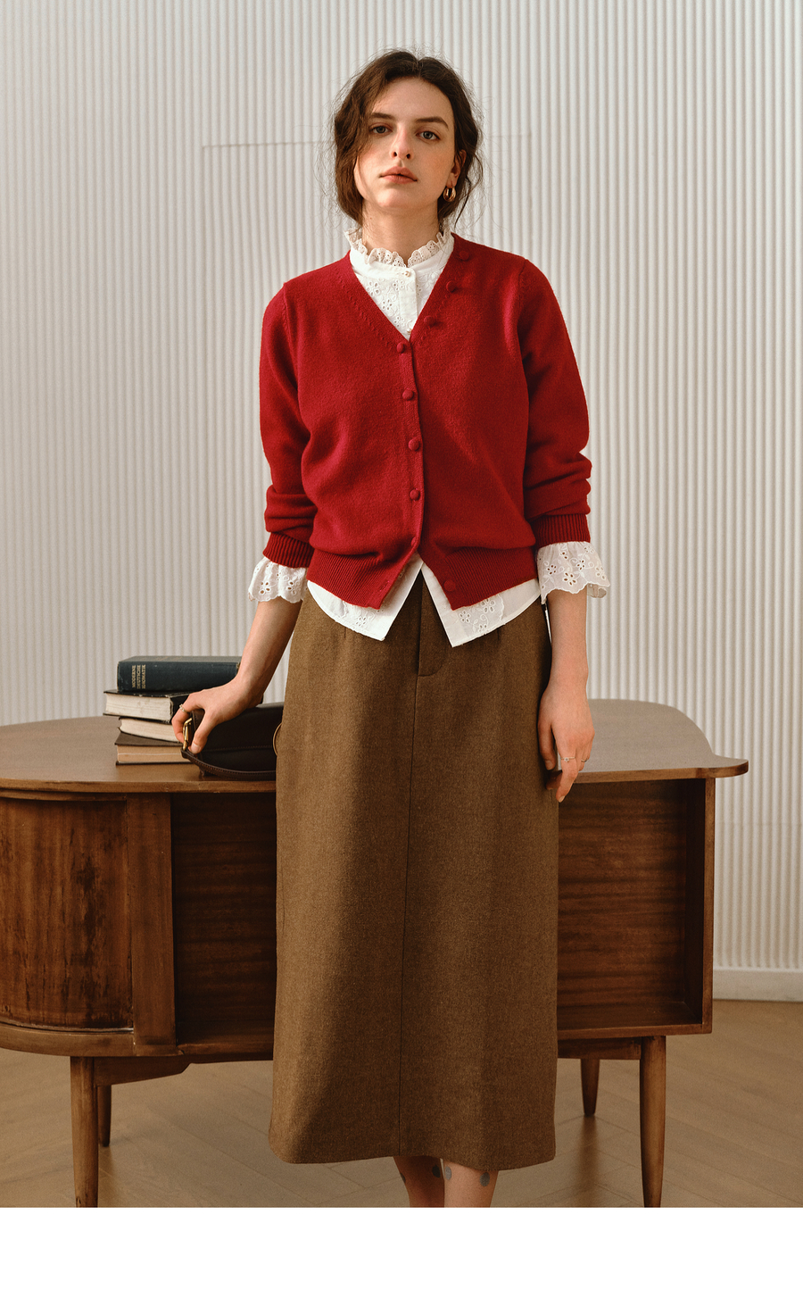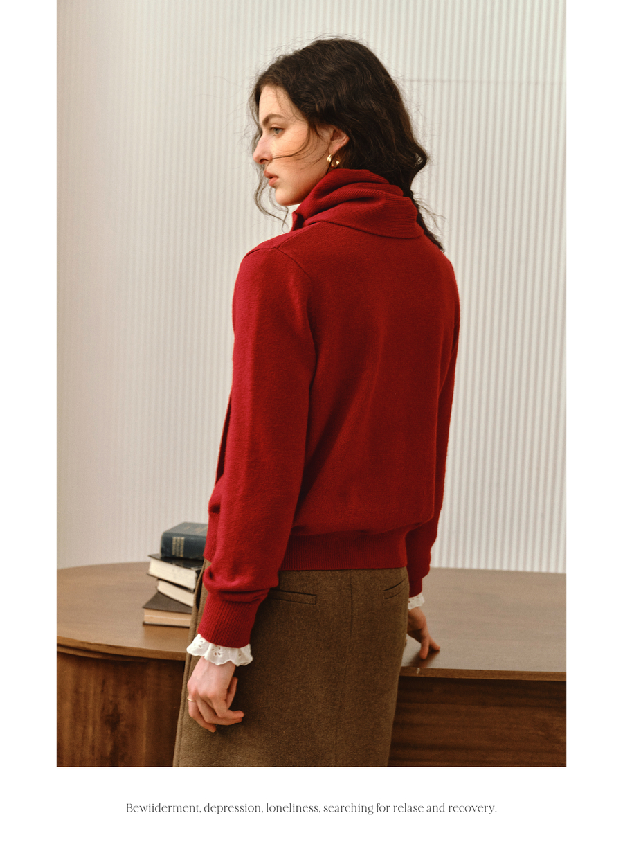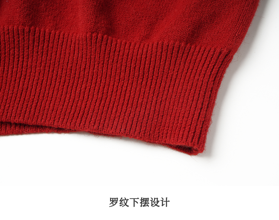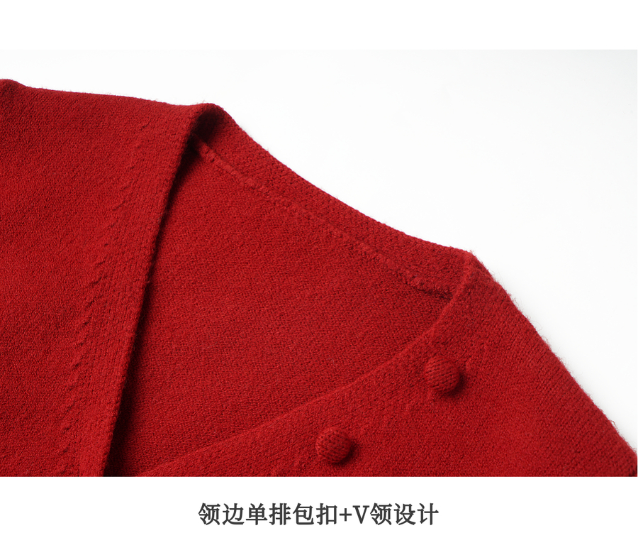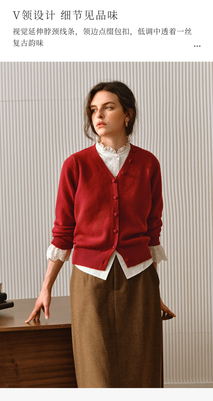 OLrain欧芮儿2025新款女秋季法式红色毛针织V领开衫围脖两件套