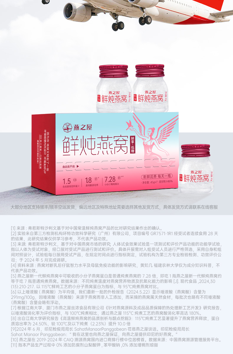 【月套餐】燕之屋鲜炖燕窝鲜享款45g*7瓶/盒 优质燕窝原料【顺丰急速发货|每周1盒|1盒7瓶】