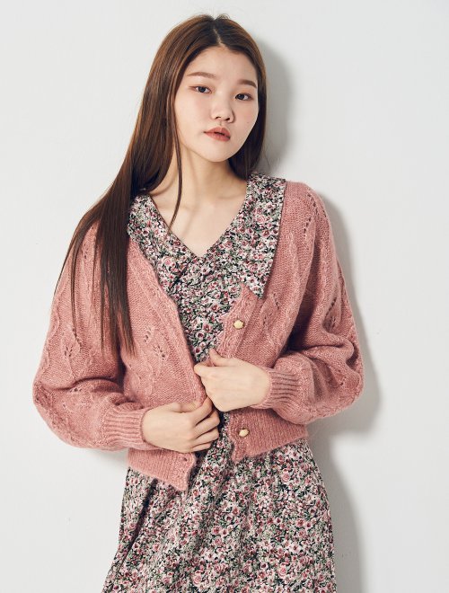 8 seconds cable cropped knit cardigan 女款浅粉色短款针织开衫JPY带授权招加盟代理