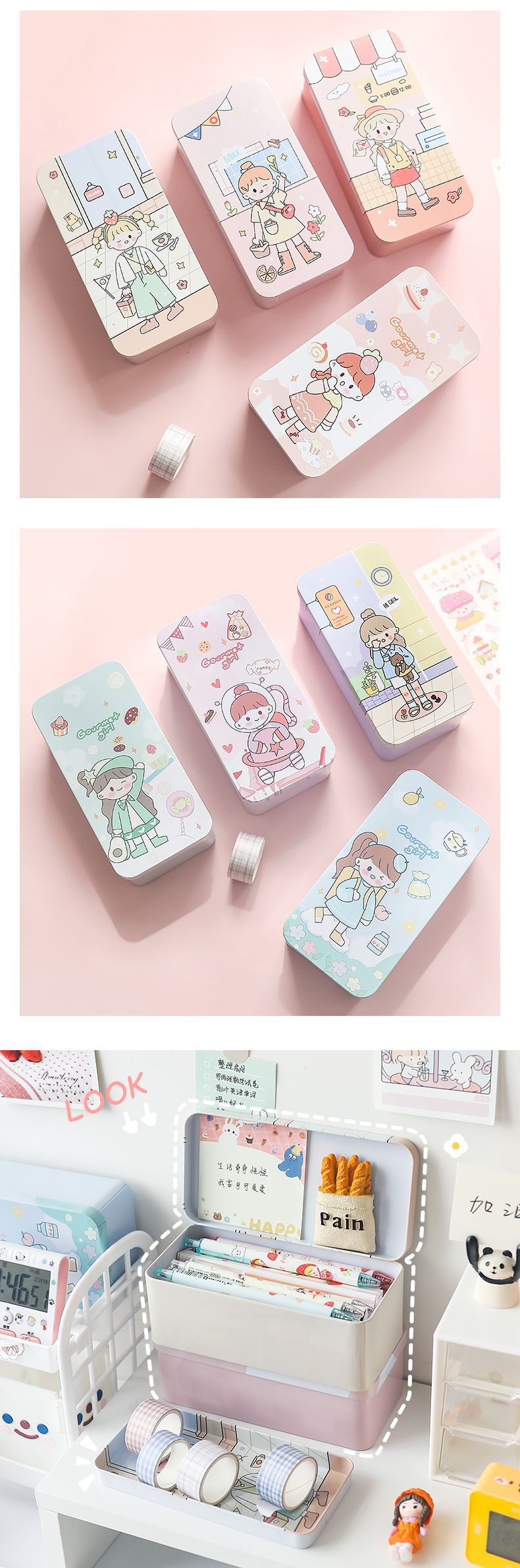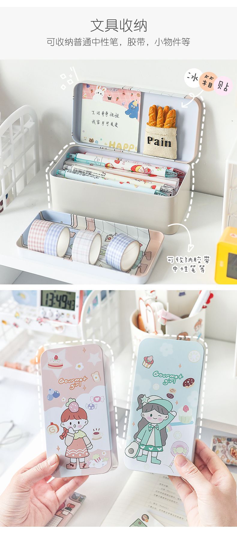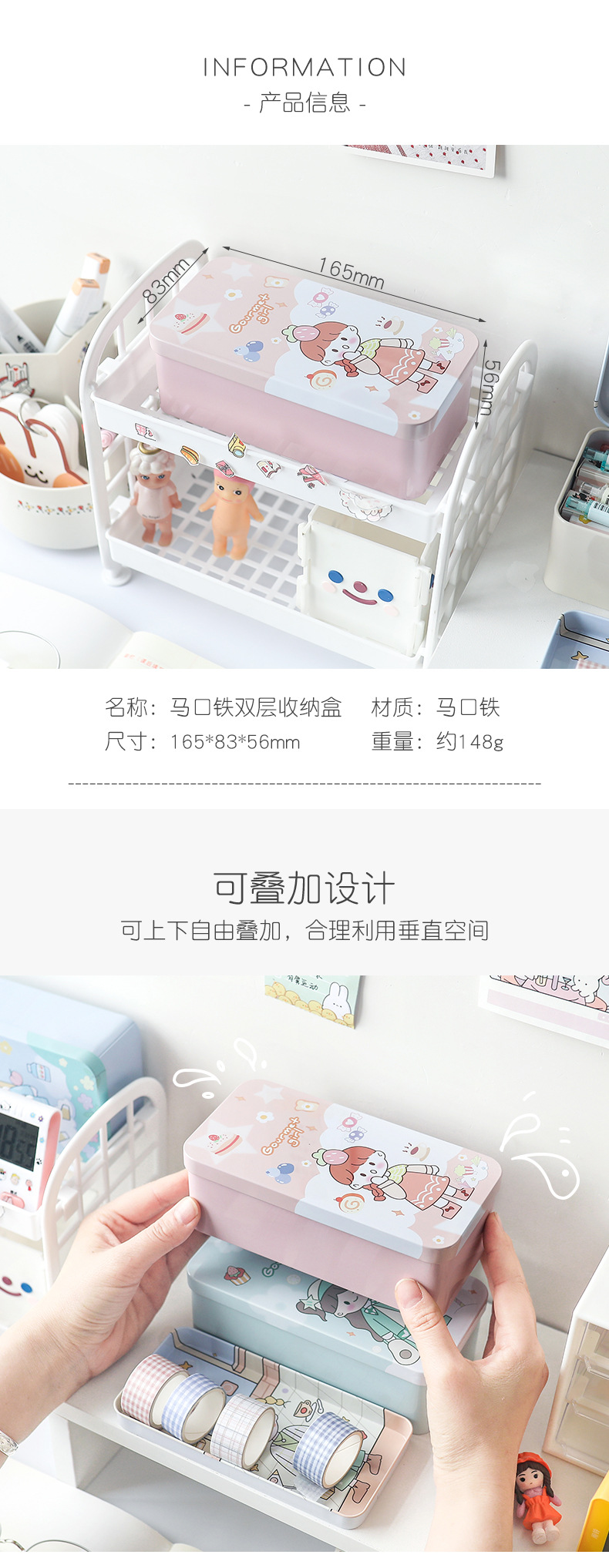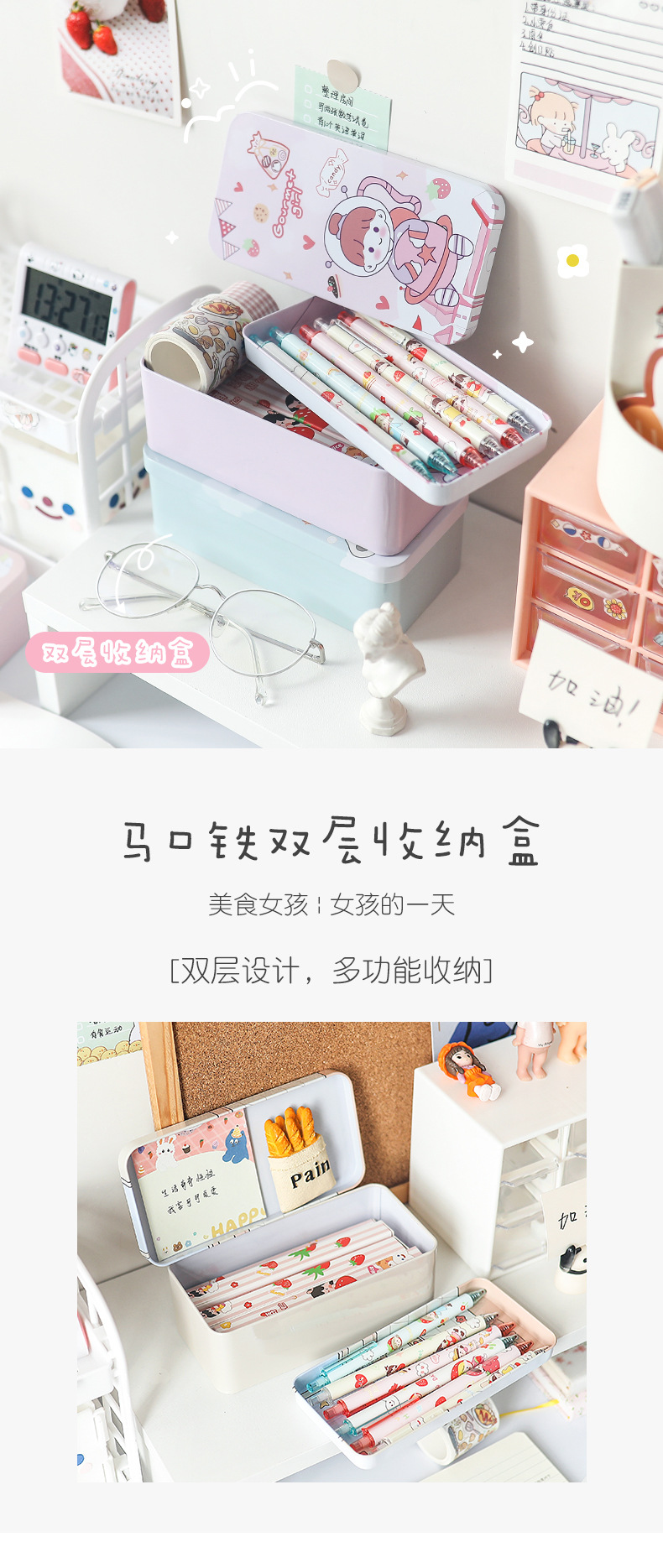 【桌面双层收纳盒 两个装】学生化妆品首饰大容量储物盒收纳整理文具盒
