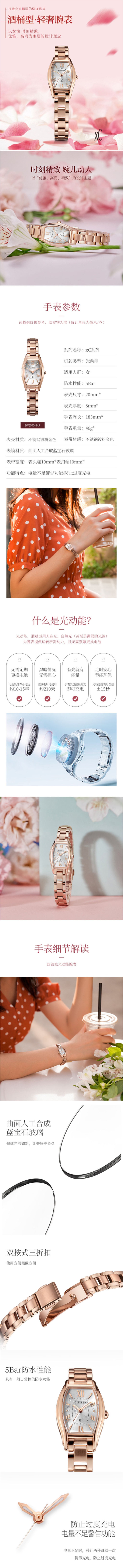西铁城旗舰店官网日本正品光动能不锈钢女士长方表粉金女表EW5543-54A