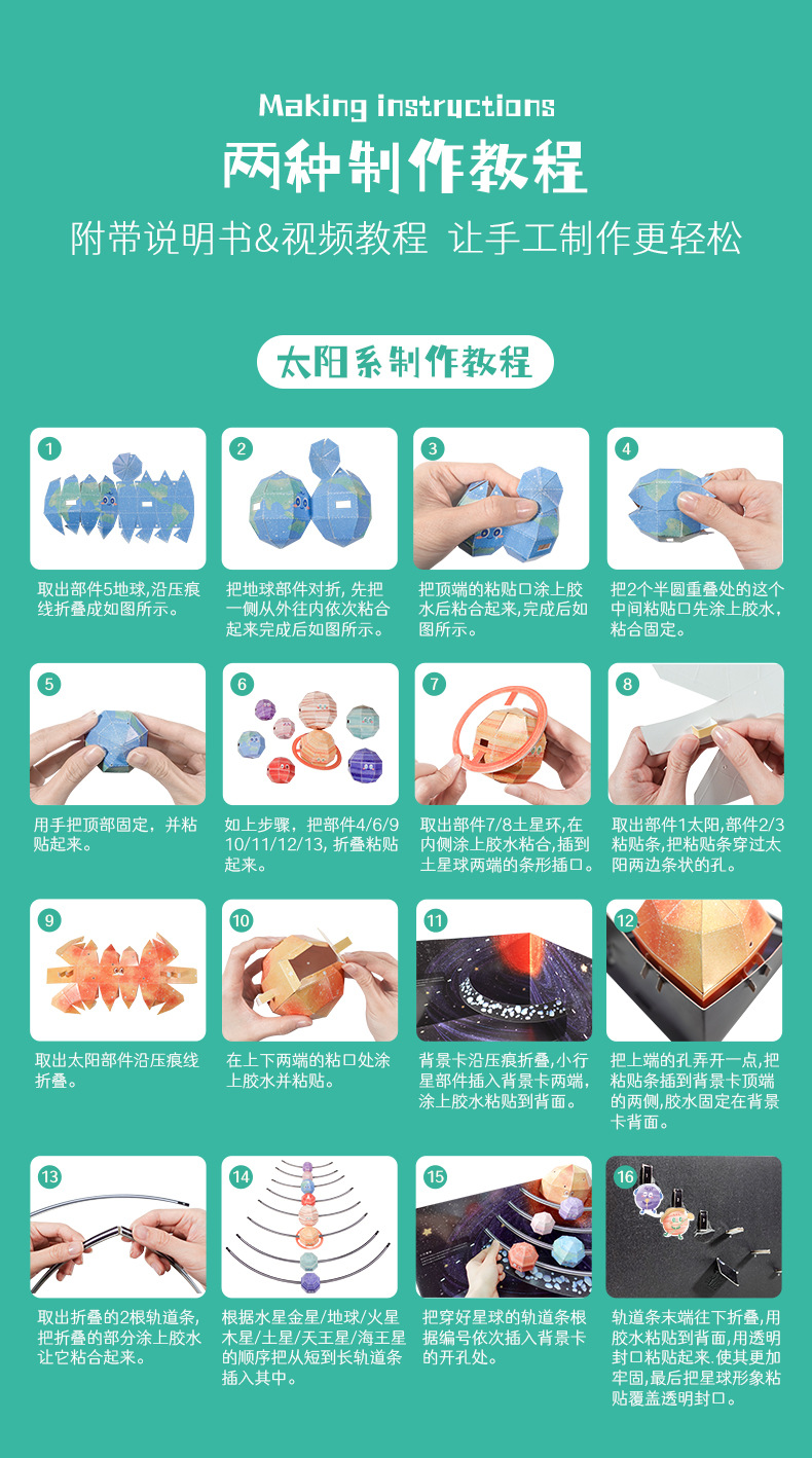 【用创意手工解放孩子大脑 了解浩瀚宇宙星球】Harppaper航天折纸手工&3D立体太阳系套装 太阳系认知科普手工 一起探索神秘宇宙 萌发我们的航天梦~