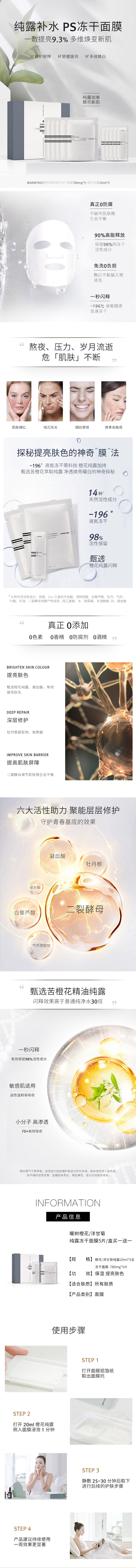 【460元会员福利】暖树·橙花/洋甘菊纯露冻干面膜5片*2盒