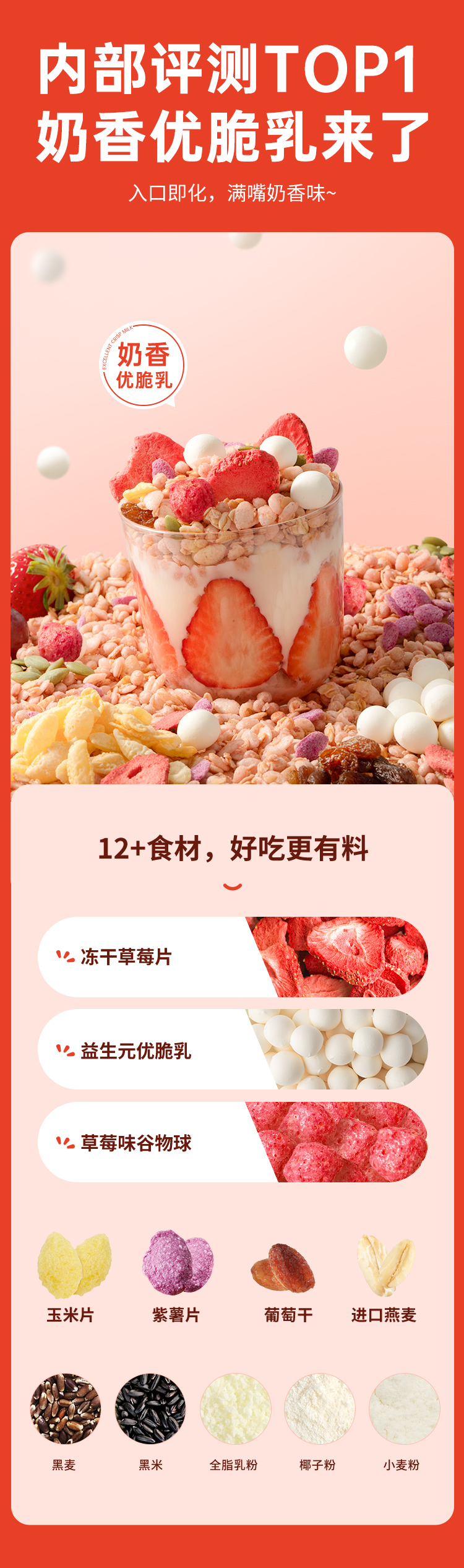 好麦多 草莓优脆乳益生元水果麦片216g/国燕一号有机燕麦片420g 营养美味 48小时发货