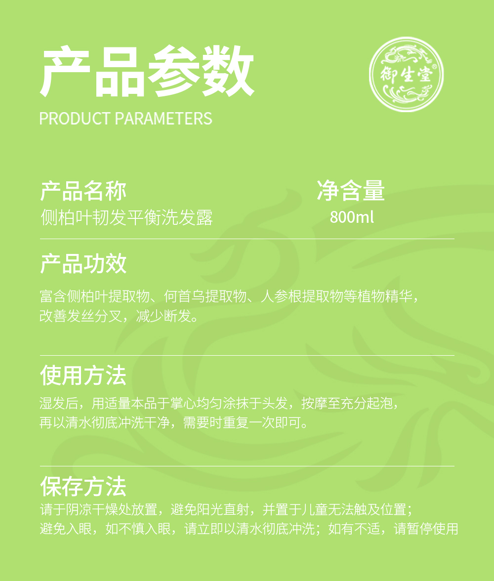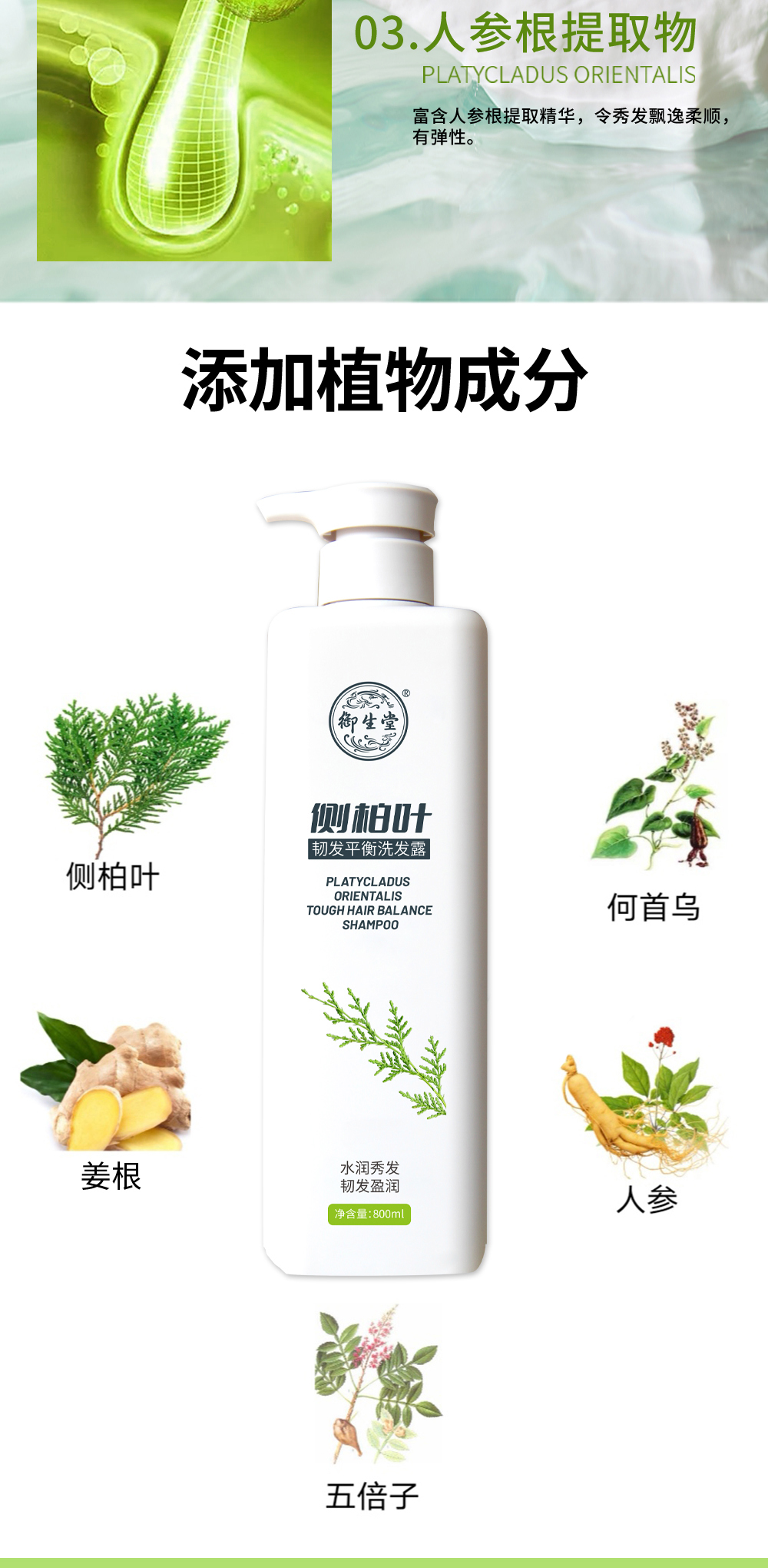 【416年传承!百年品牌】北京御生堂侧柏叶韧发平衡洗发水洗发露 水润秀发韧发盈润提取植物精华 侧柏叶 姜根何首 乌人参 五倍子800g/瓶